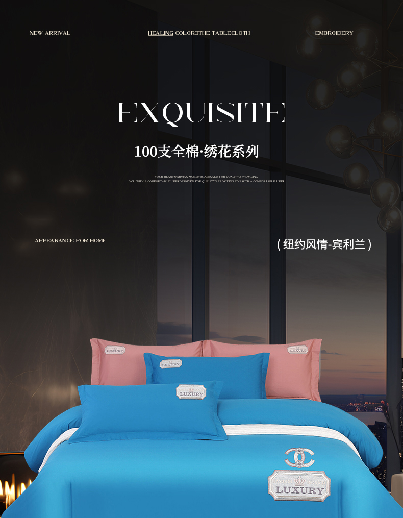 (总)浩情国际婚庆供货中心 2026新品春夏四季款全棉纯棉高端绣花四件套-纽约风情,纽约风情-宾利兰,纽约风情-粉玉,纽约风情-红豆沙,纽约风情-湖蓝,纽约风情-金属灰,纽约风情-蓝灰,纽约风情-梦幻紫,纽约风情-藕粉,纽约风情-浅咖,纽约风情-松石绿