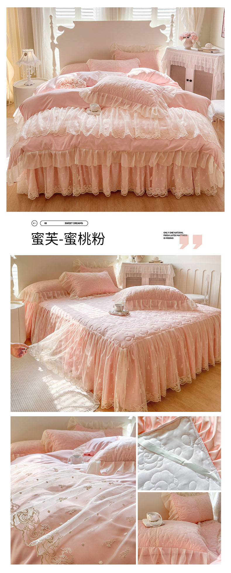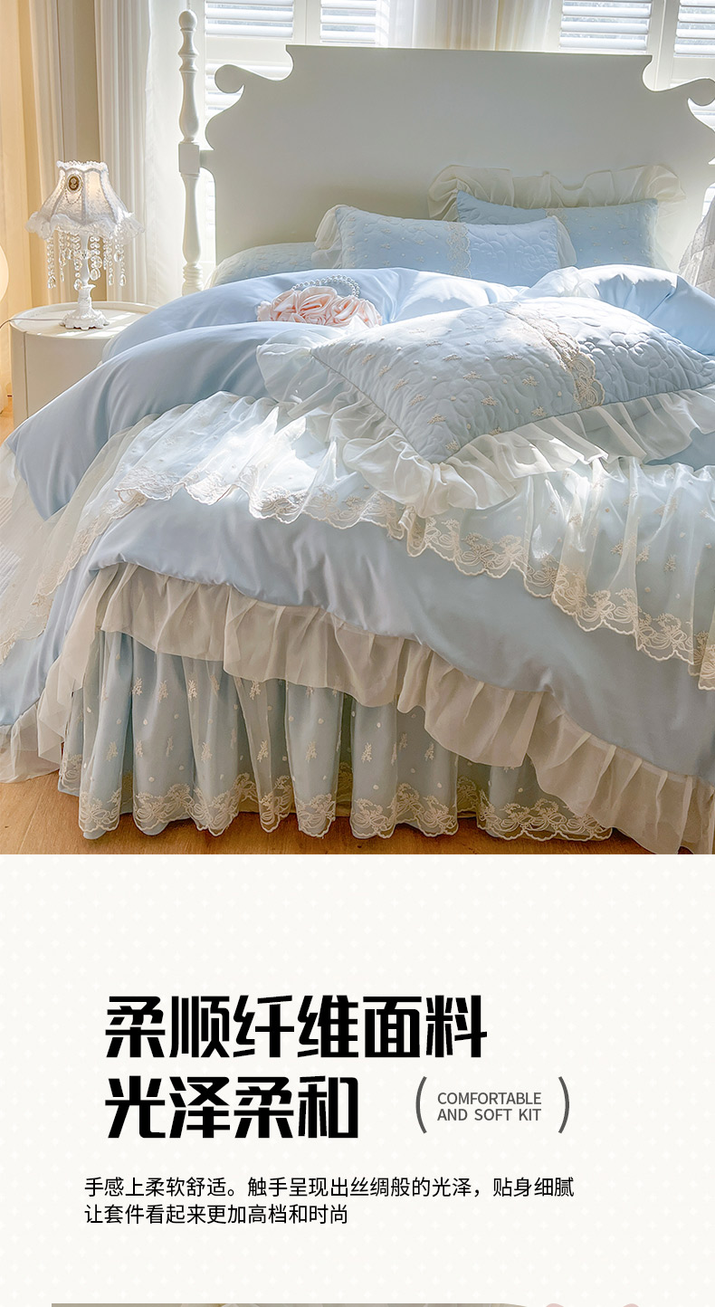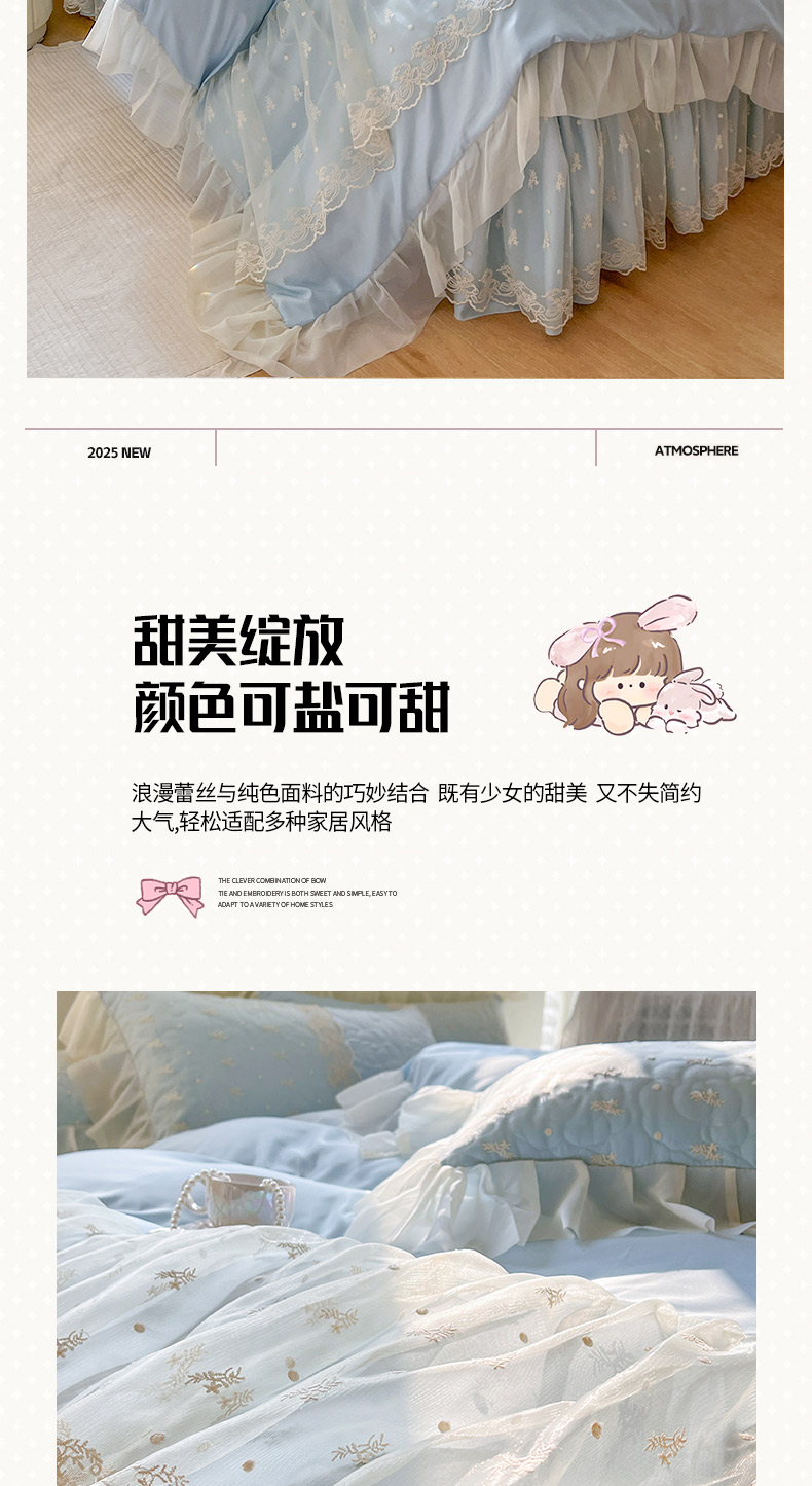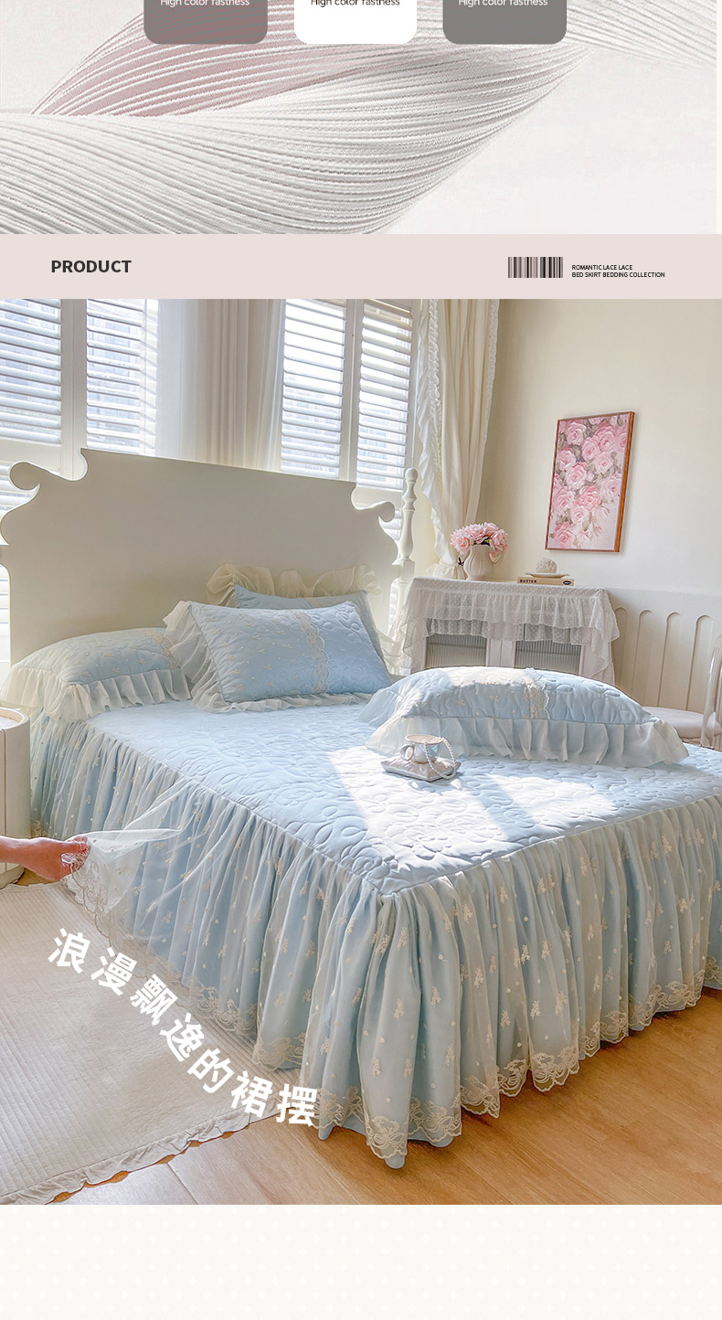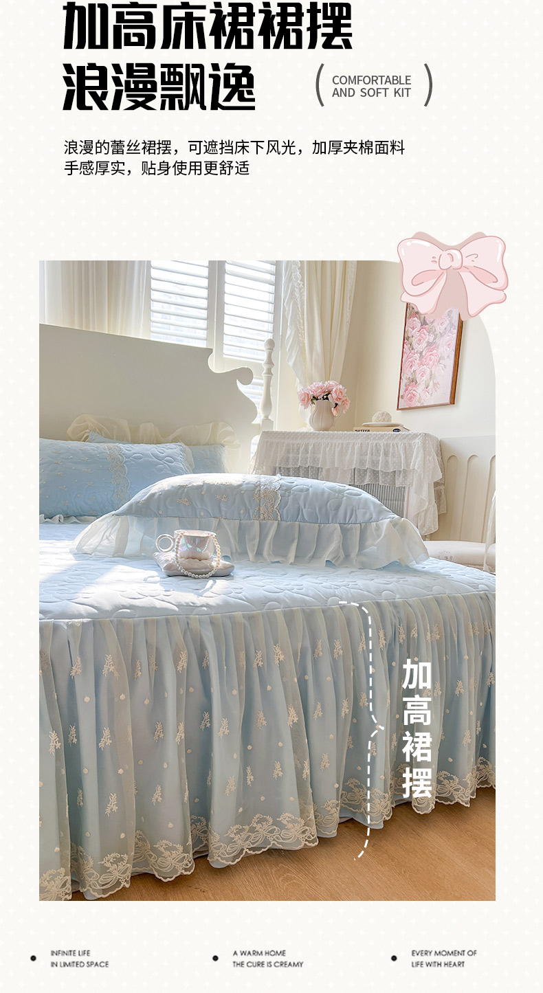 (总)恋尚 2025新款韩式蕾丝丝光棉夹棉床裙四件套,蜜芙-浅蓝,蜜芙-米黄,蜜芙-蜜桃粉,蜜芙-浅白,蜜芙-水绿,蜜芙-香芋紫
