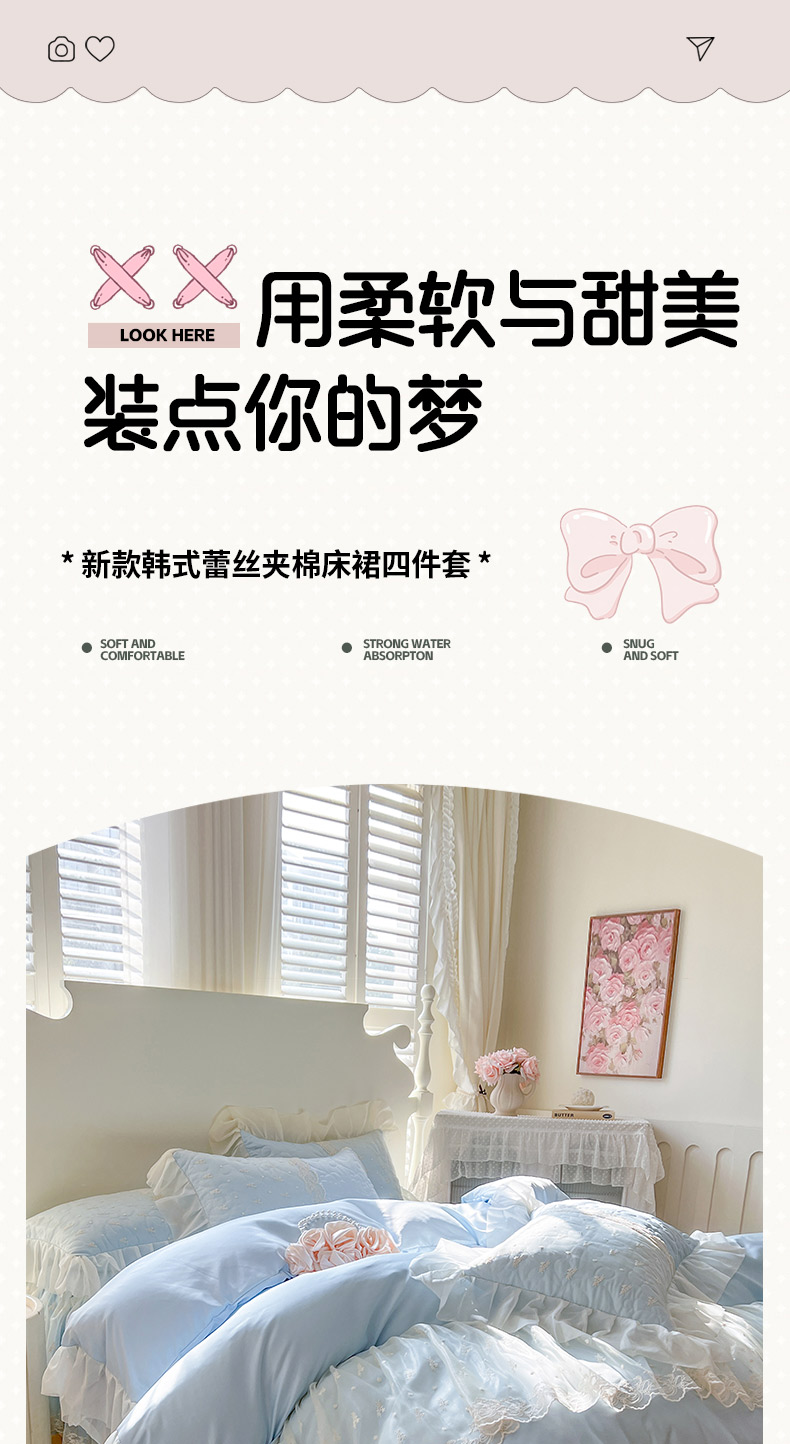 商品名称:(总)恋尚 2025新款韩式蕾丝丝光棉夹棉床裙四件套