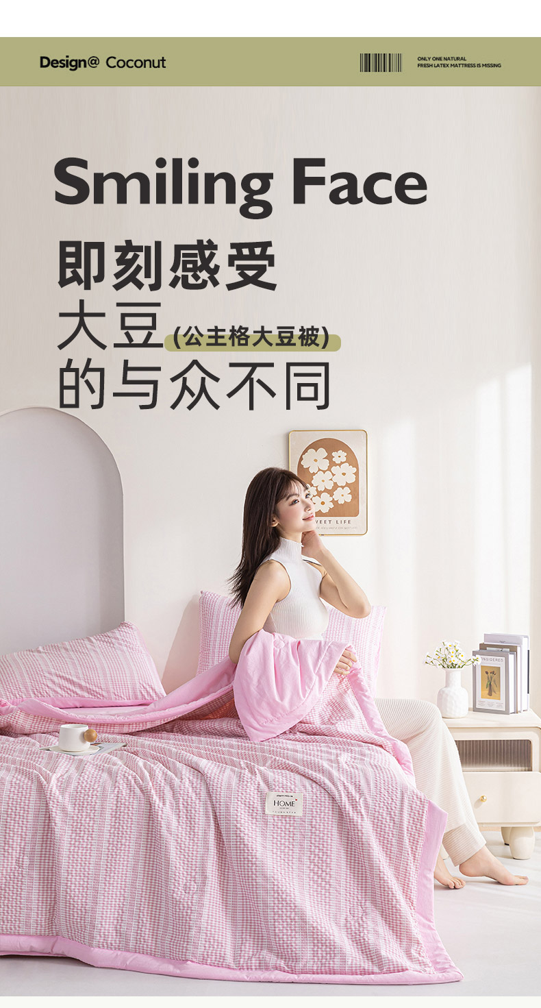 商品名称:吾诺 2025 韩式立体提花公主格大豆夏被子被芯夏凉被夏被四件套 公主格-兰