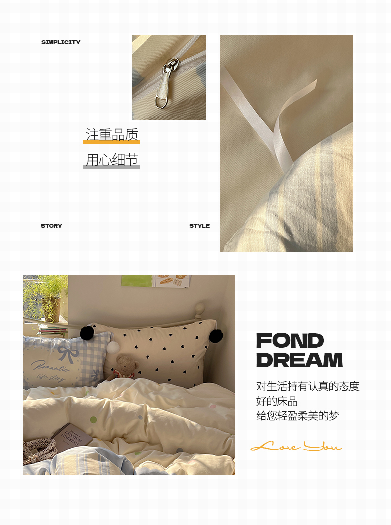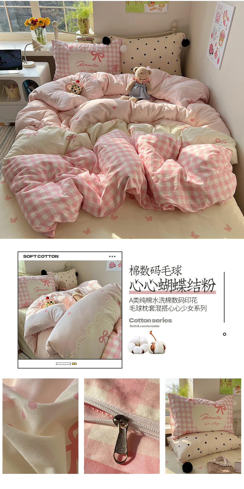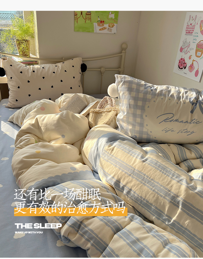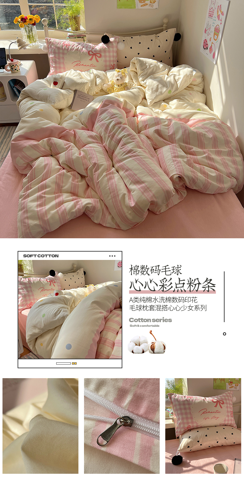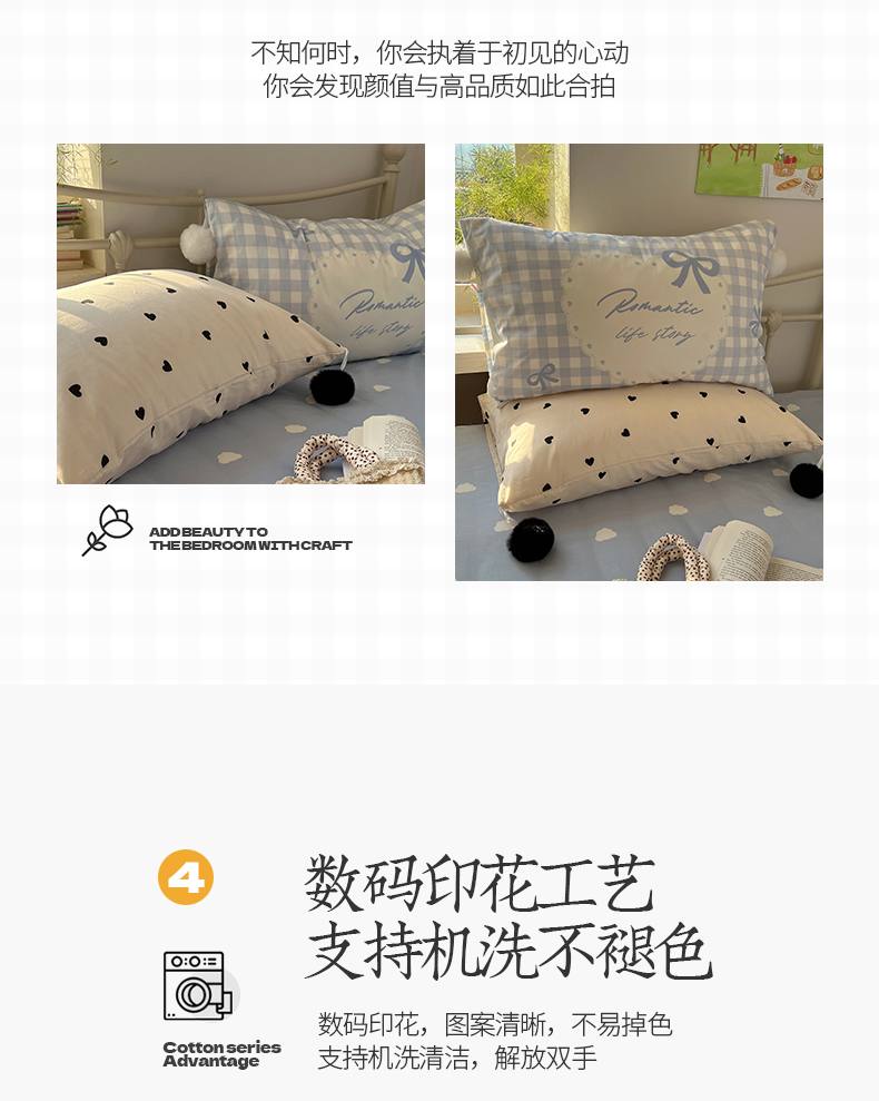 当前位置: 91家纺网 > 商品网购 > 床品套件 > 四件套 > 全棉普通四件套 > 2025新款A类水洗棉数码印花毛球枕套混搭心心少女纯棉水洗棉系列四件套 棉数码毛球-心心蓝条彩点