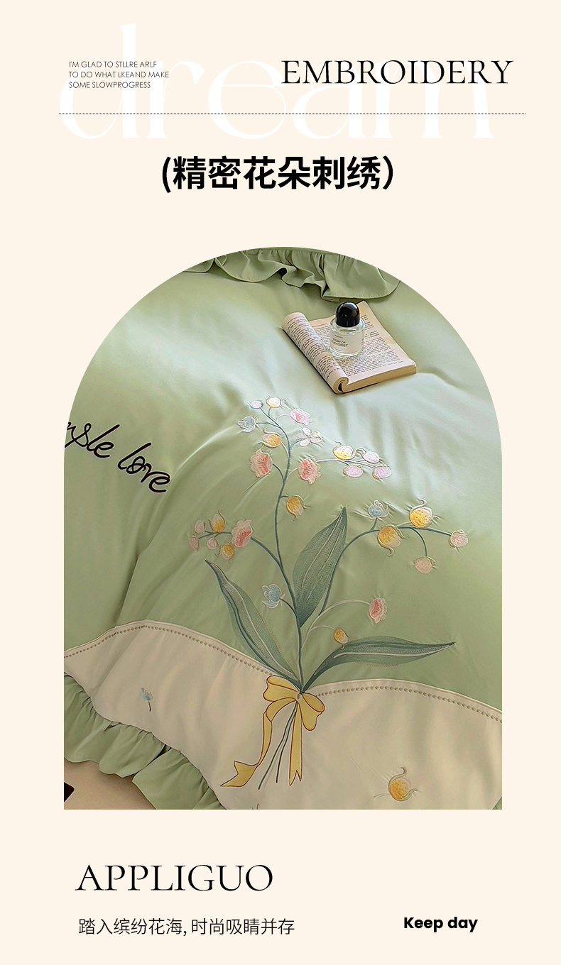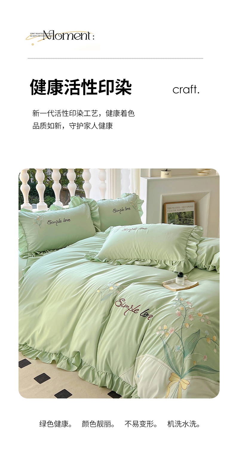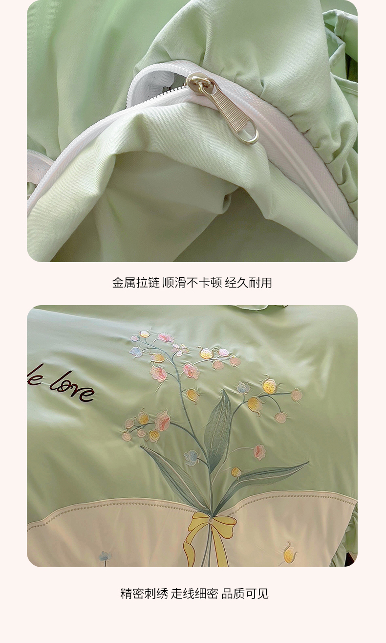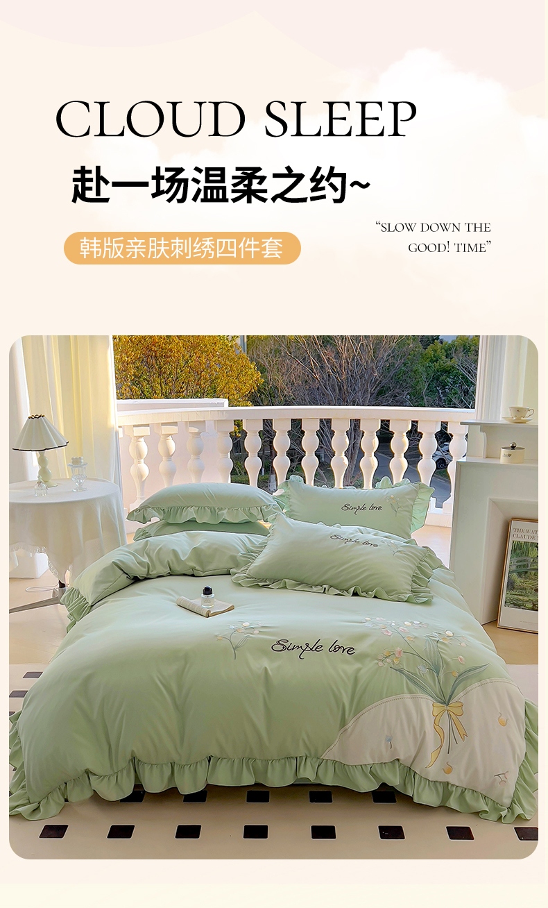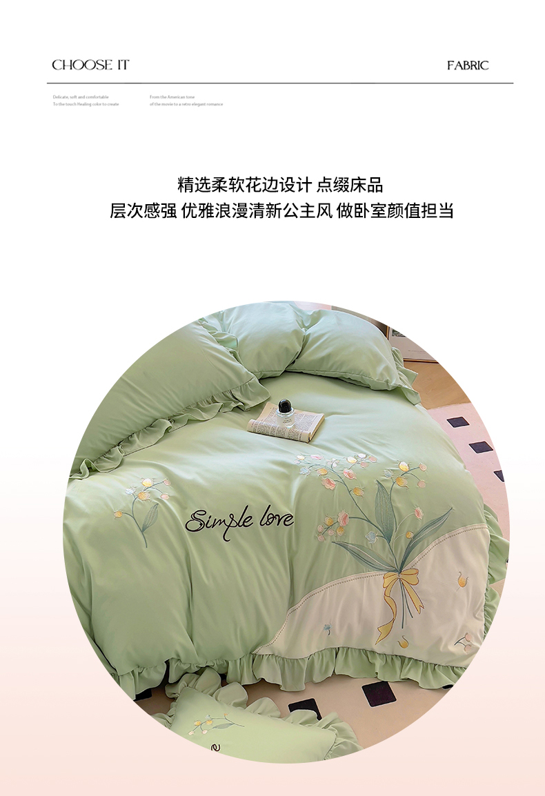 当前位置: 91家纺网 > 商品网购 > 床品套件 > 四件套 > 磨毛活性四件套 > 凯美家居 2025新款超柔亲肤磨毛刺绣花仙子系列四件套 花仙子 绿