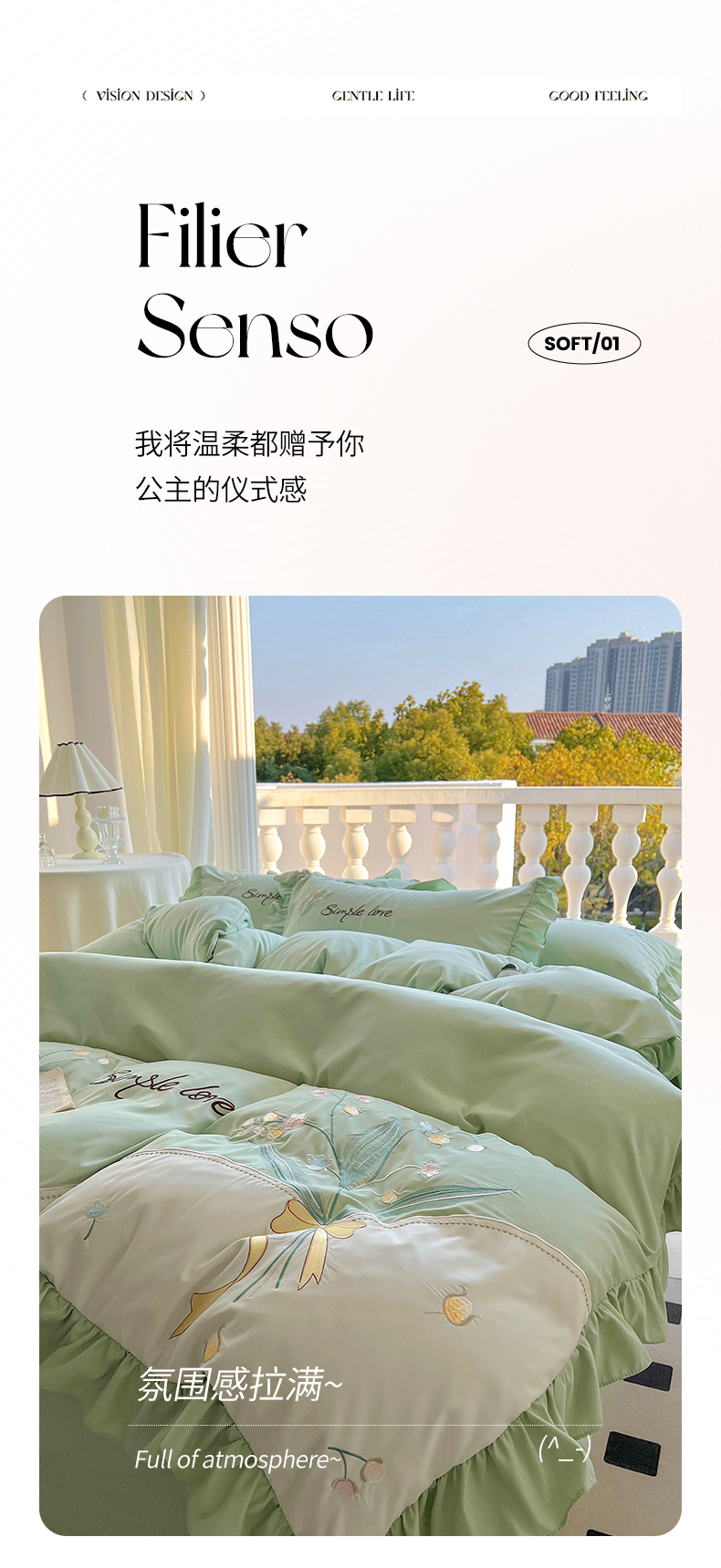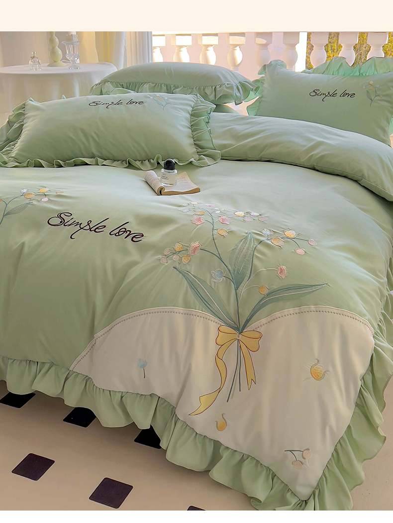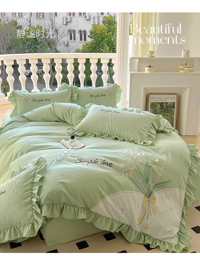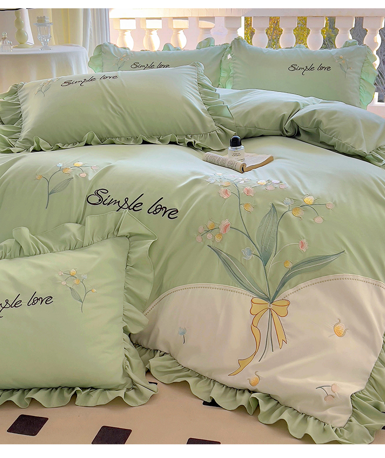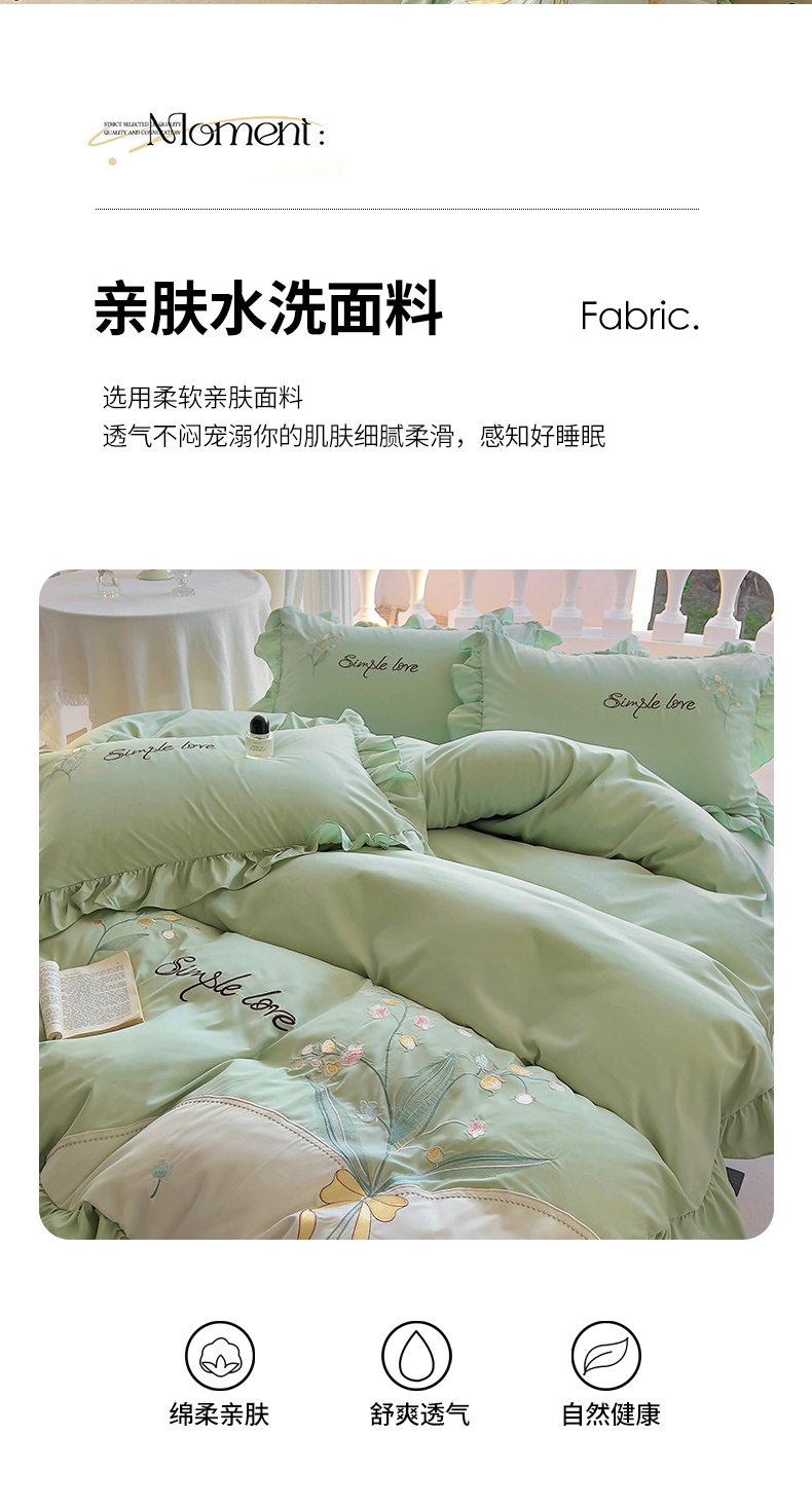 当前位置: 91家纺网 > 商品网购 > 床品套件 > 四件套 > 磨毛活性四件套 > 凯美家居 2025新款超柔亲肤磨毛刺绣花仙子系列四件套 花仙子 绿