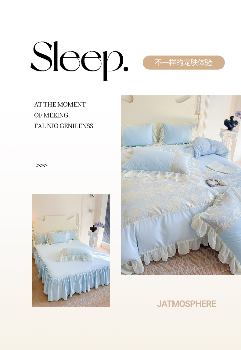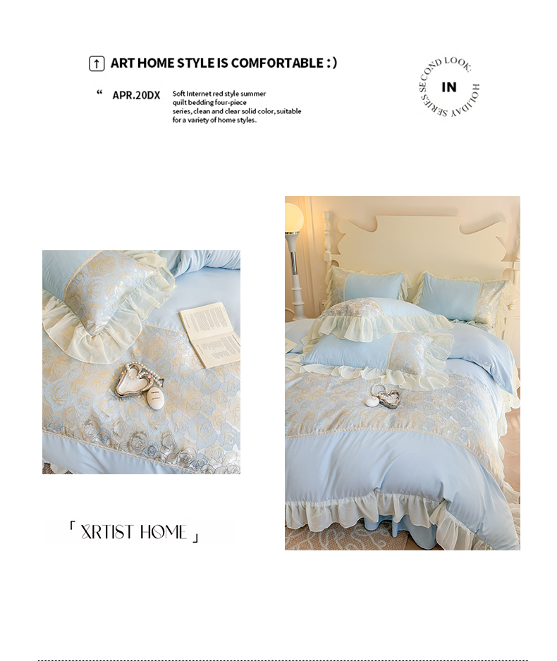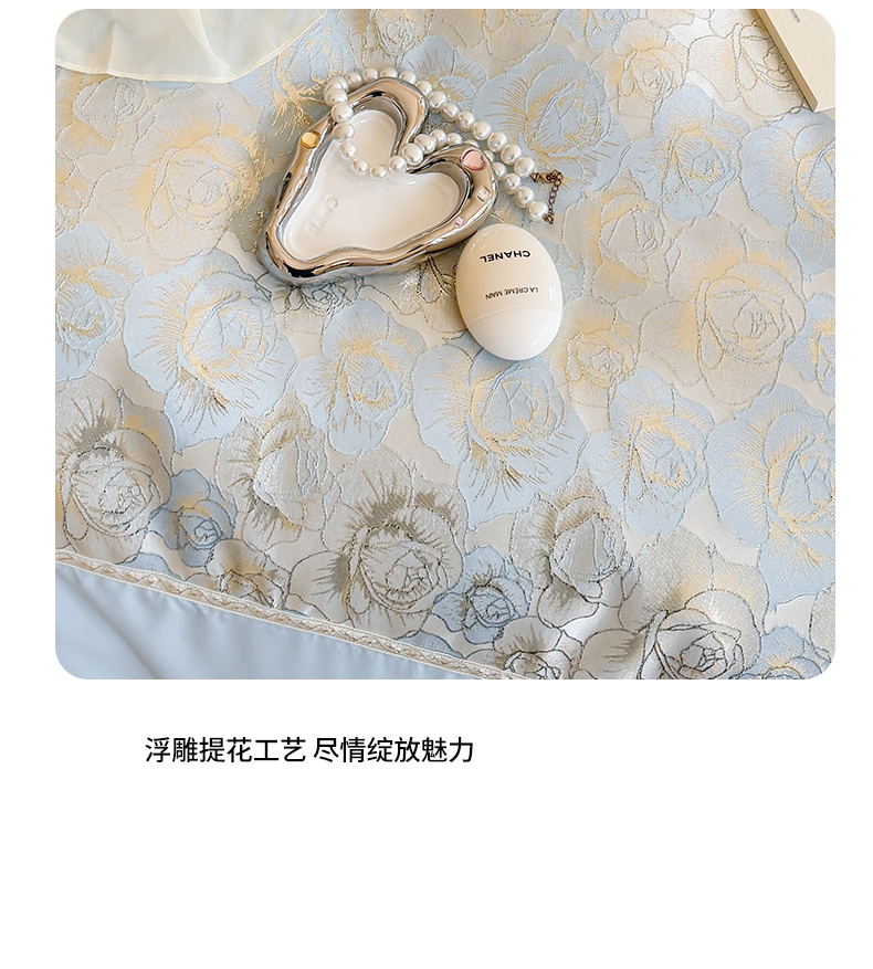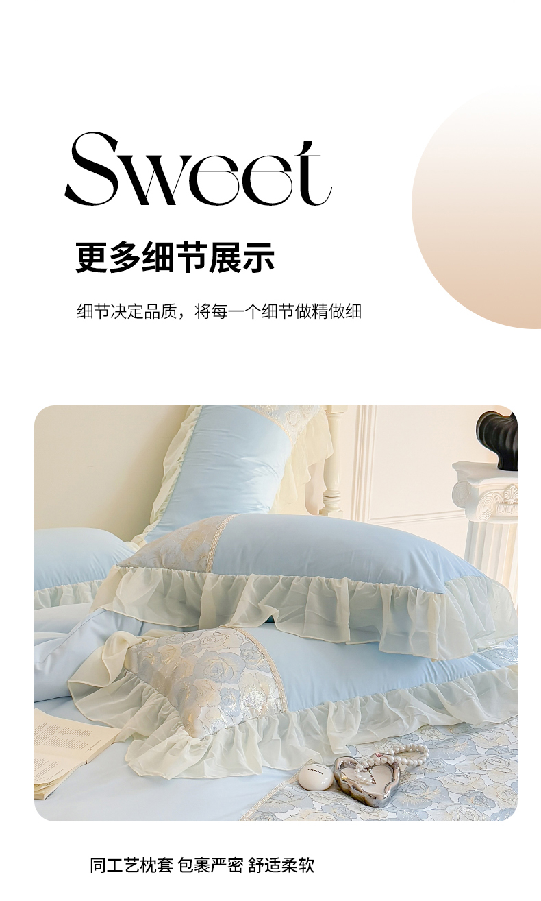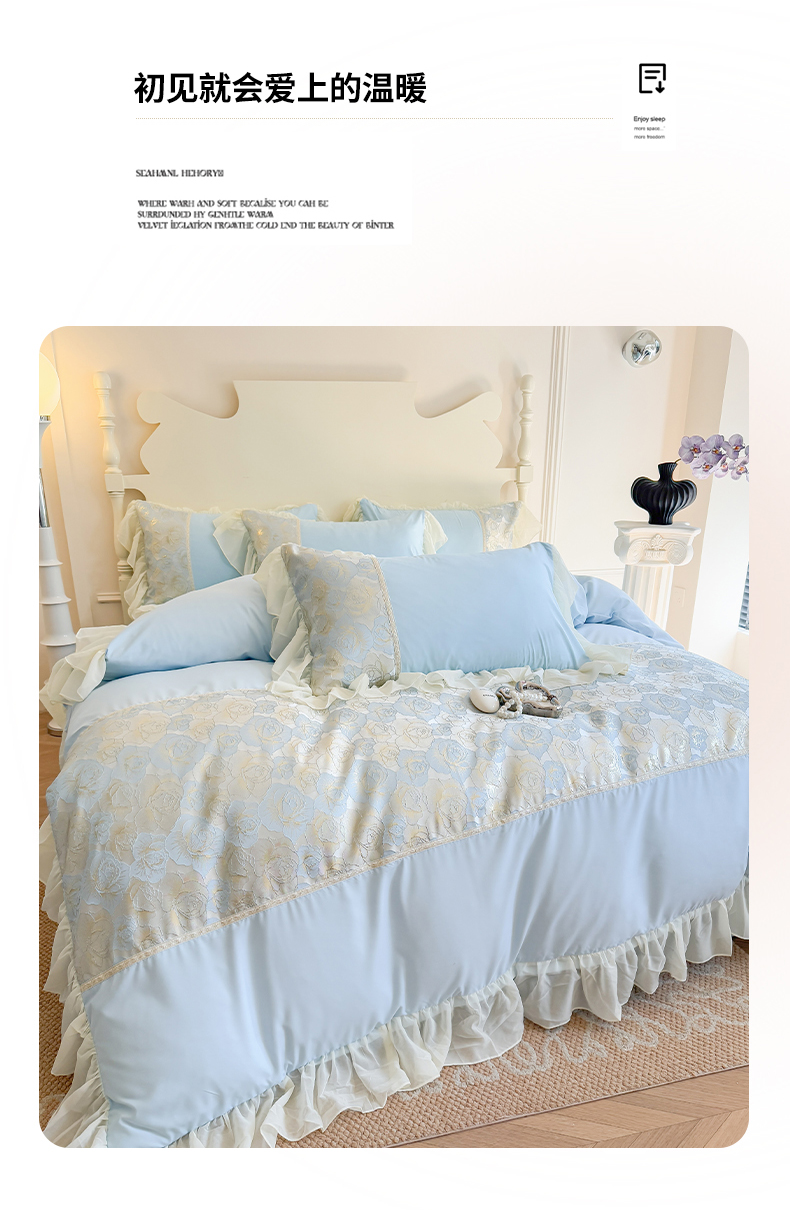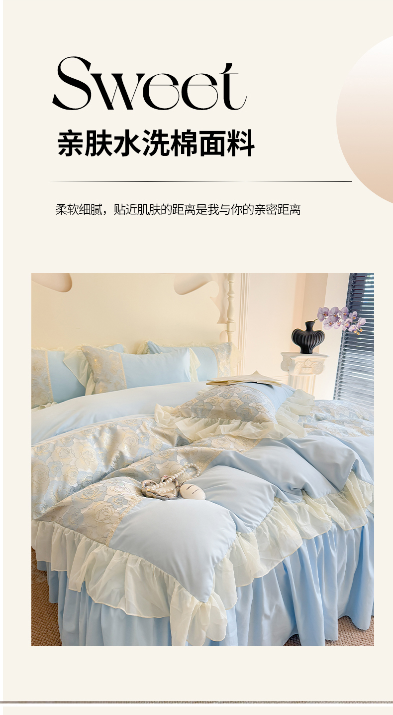 当前位置: 91家纺网 > 商品网购 > 床品套件 > 四件套 > 全棉普通四件套 > 富盛 2025新款水洗亲肤棉浮雕提花公主风四件套 月光恋人-蓝