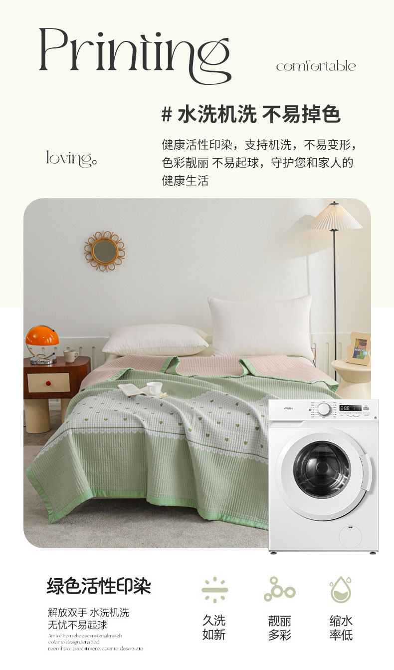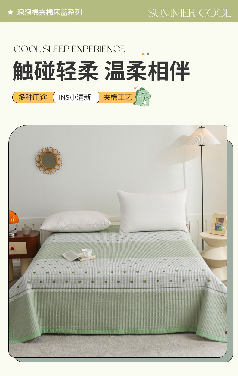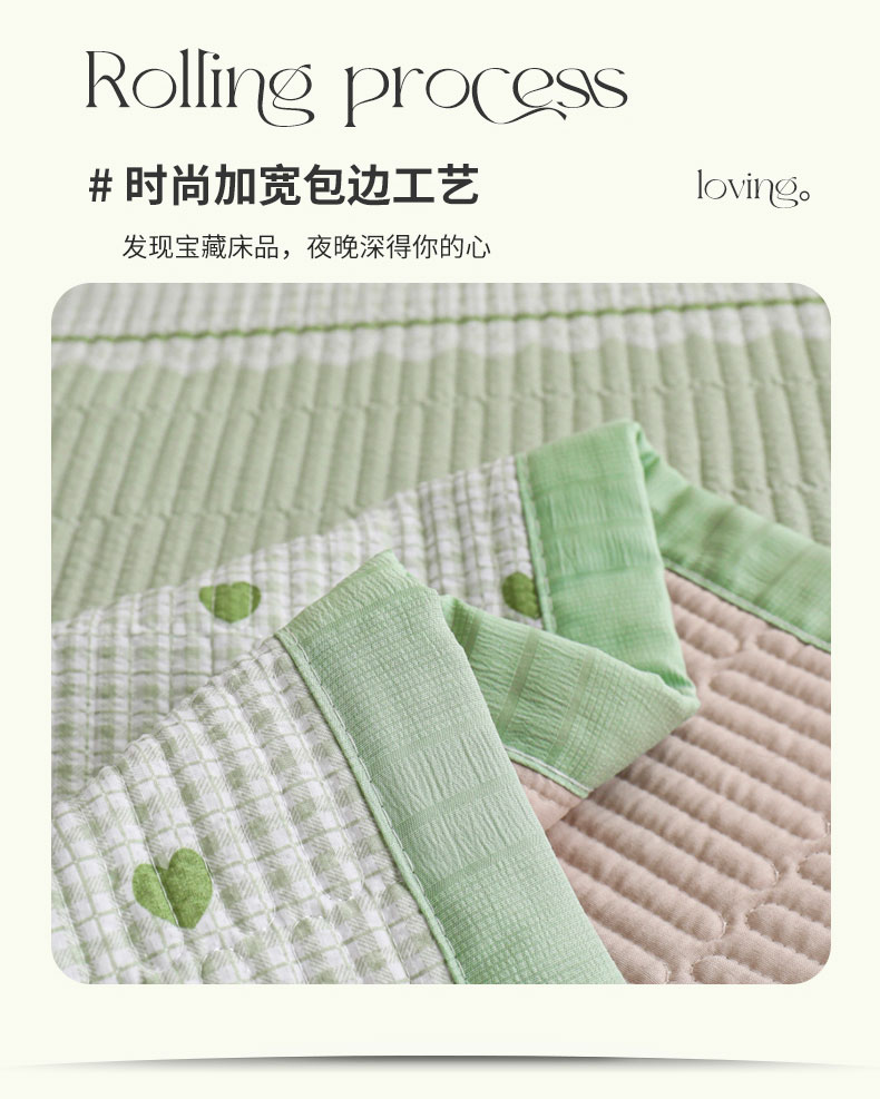 源舜 2025新款皱皱纱拼接款单床盖床单 爱心-绿
