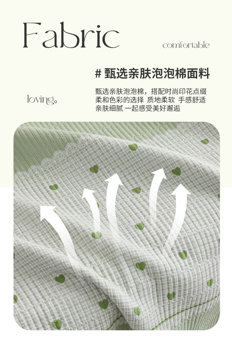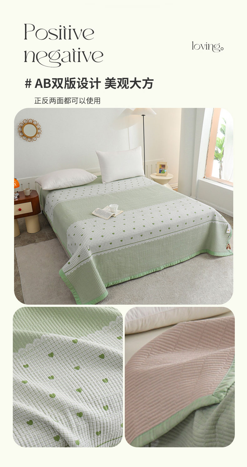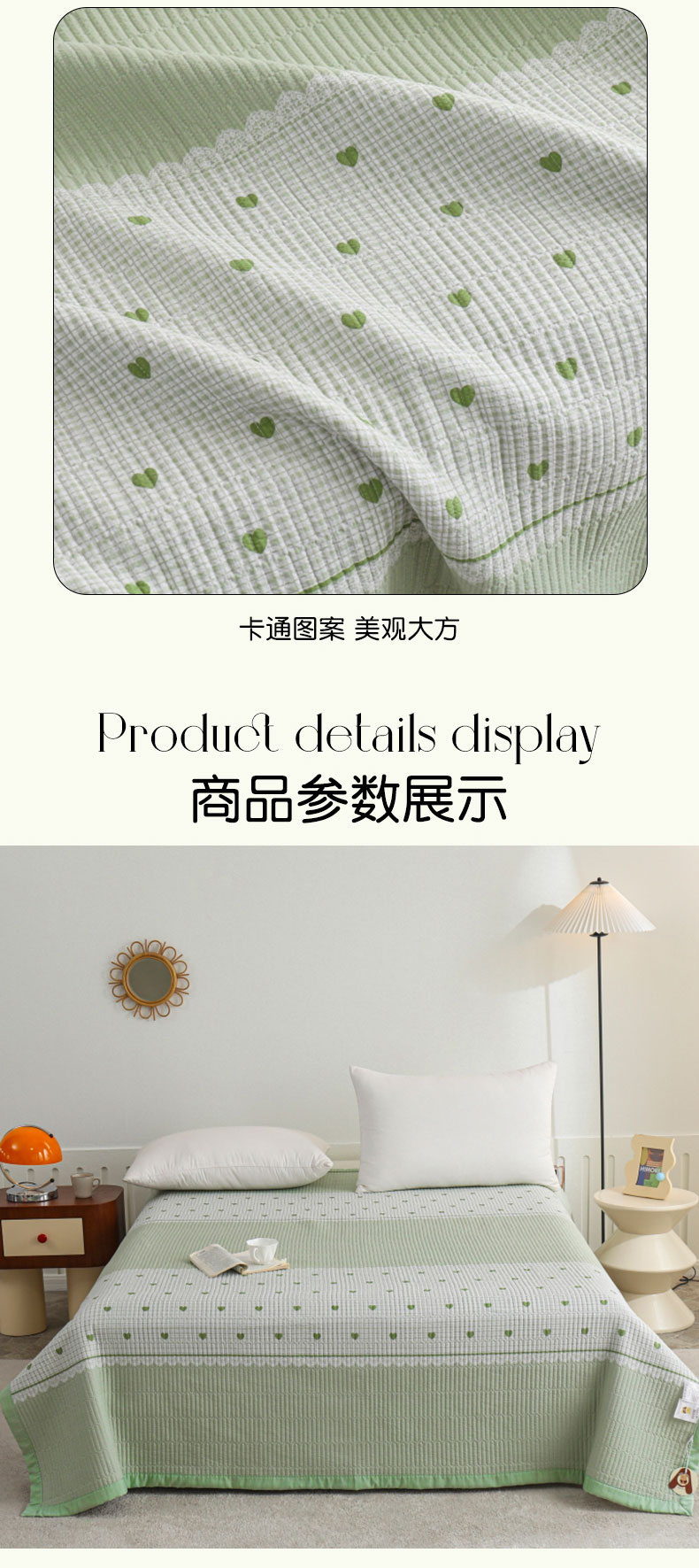 商品名称:源舜 2025新款皱皱纱拼接款单床盖床单 爱心-绿