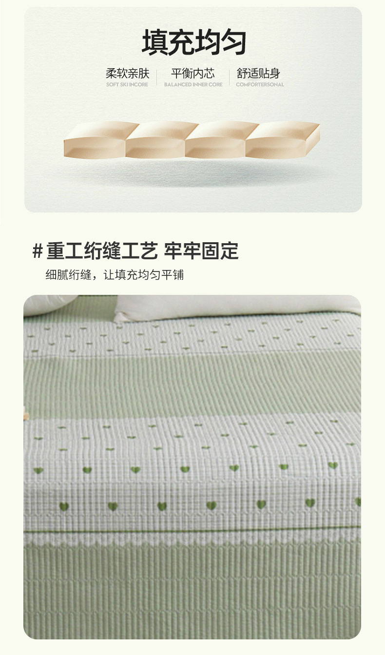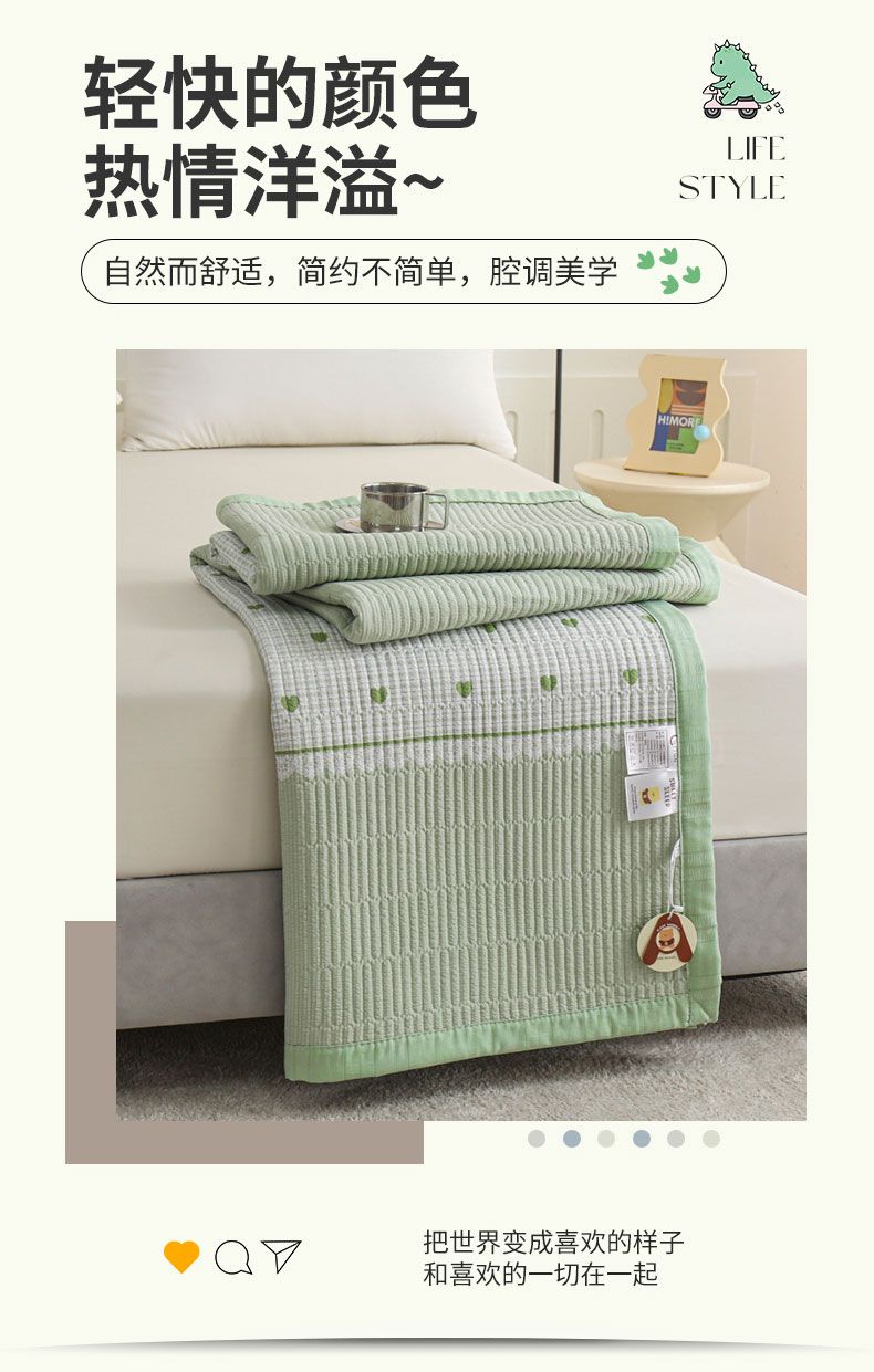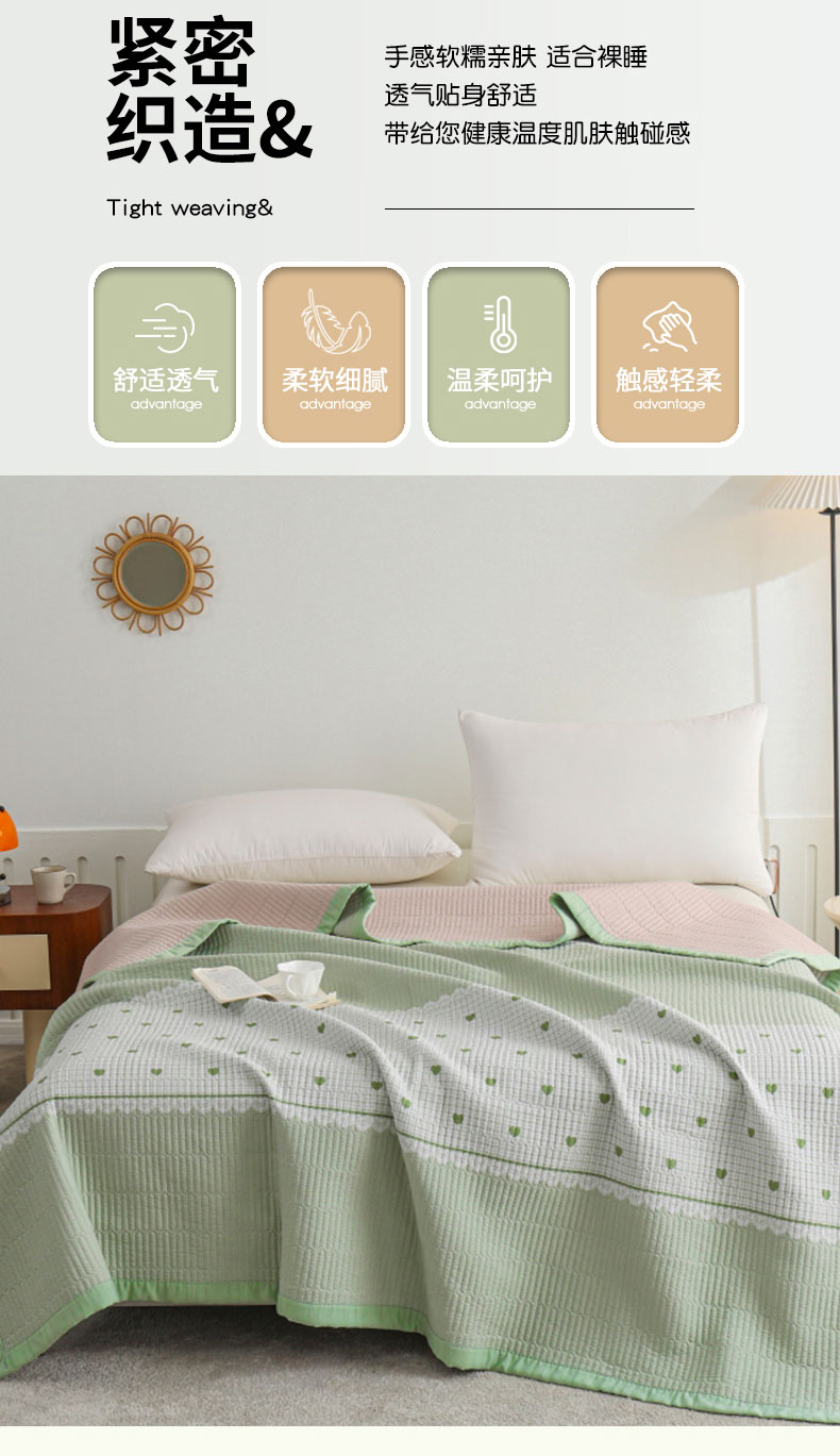 商品名称:源舜 2025新款皱皱纱拼接款单床盖床单 爱心-绿