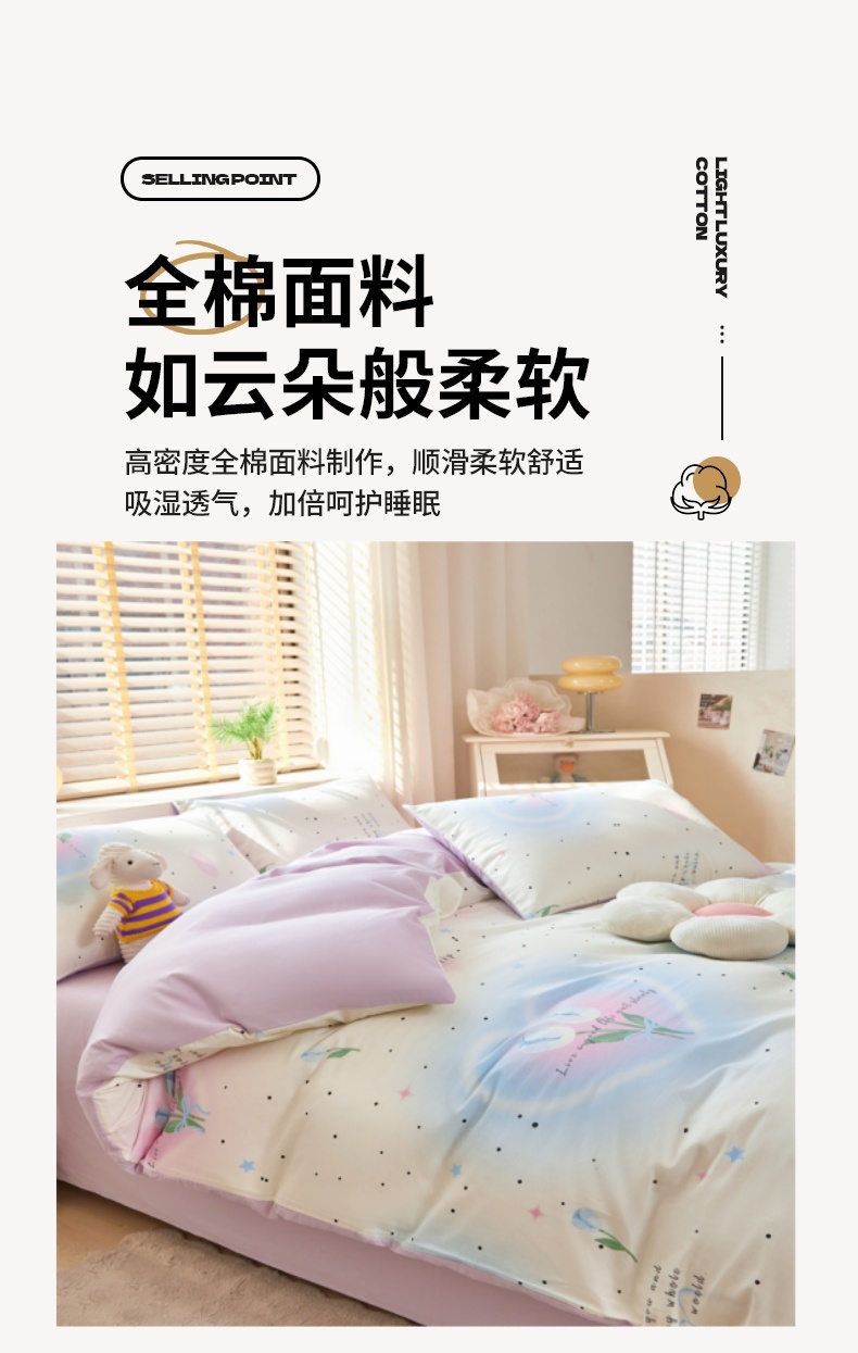 商品名称:梦舒羽2025新款全棉小清新印花加厚宿舍床单床裙款四件套 迷梦花语-全棉