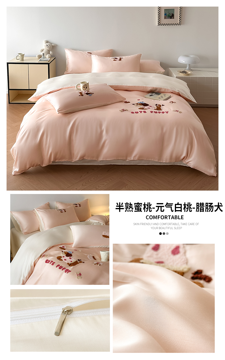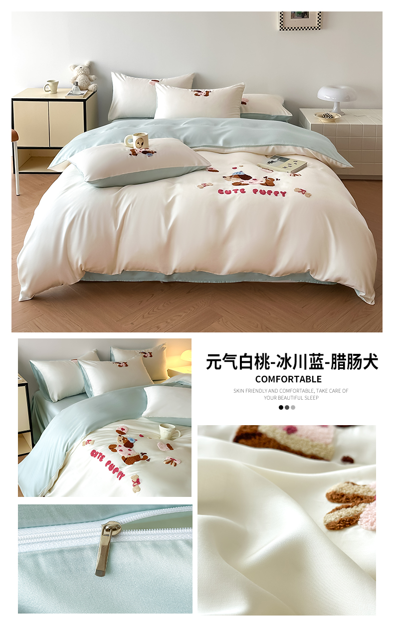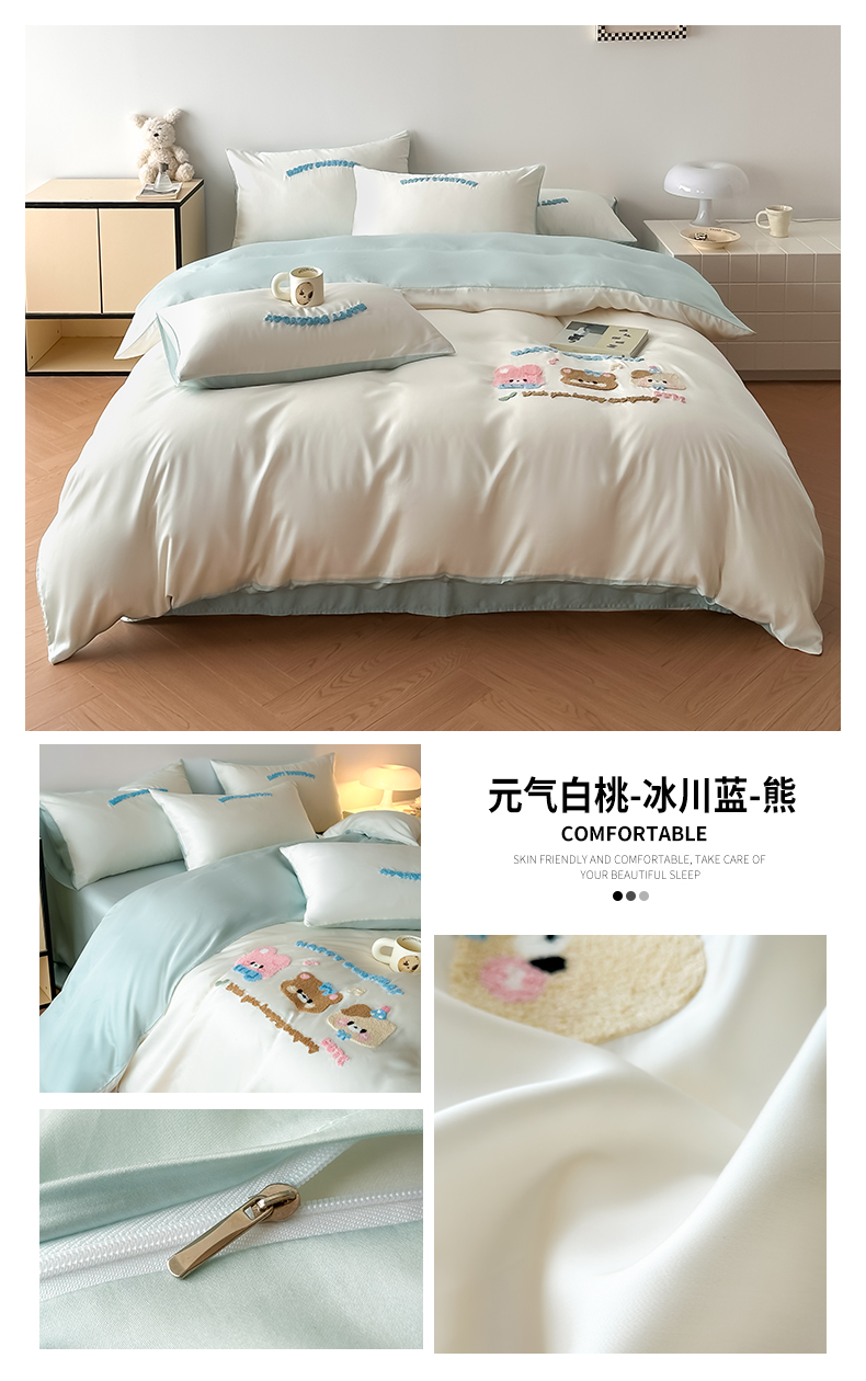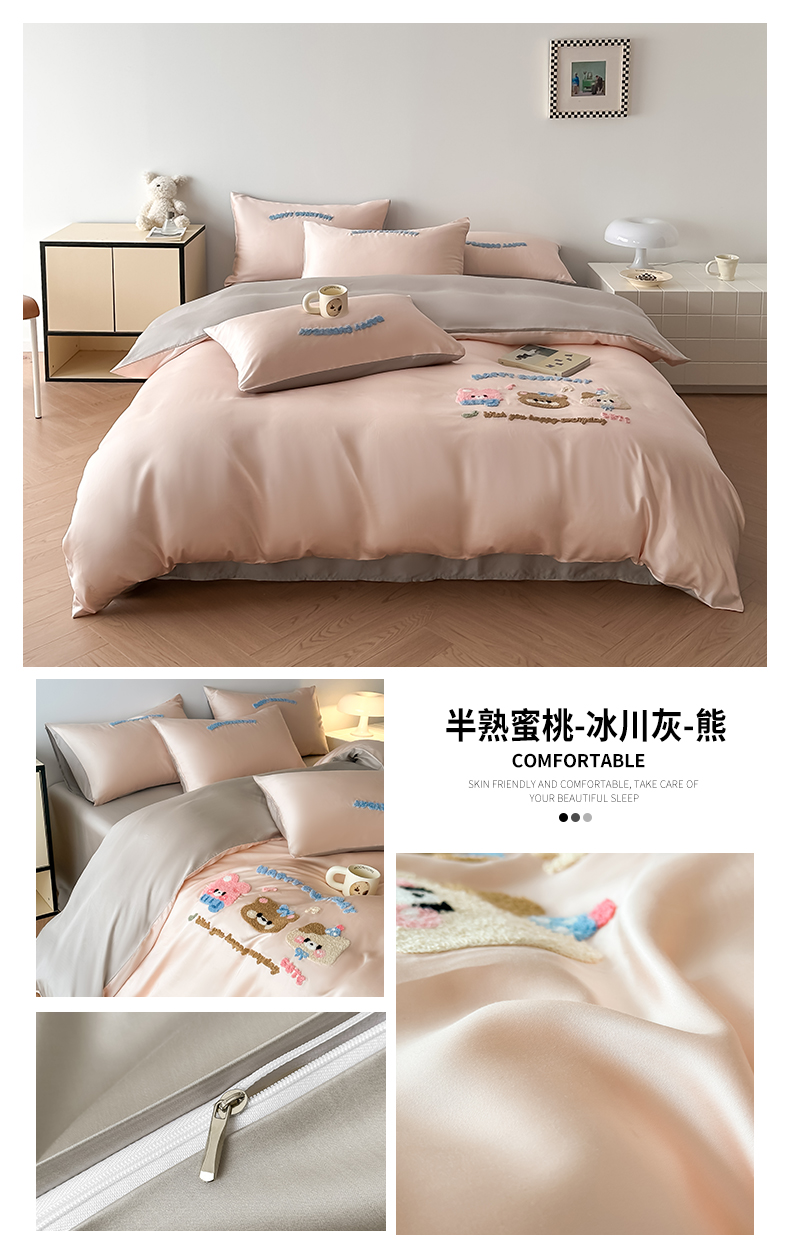 (总)DC 2024新款60S天丝印花刺绣四件套-雪莉系列,半熟蜜桃,冰川蓝,香谷槟,星辰绿,椰子灰,元气白桃