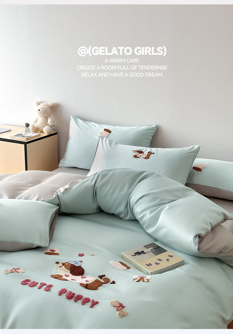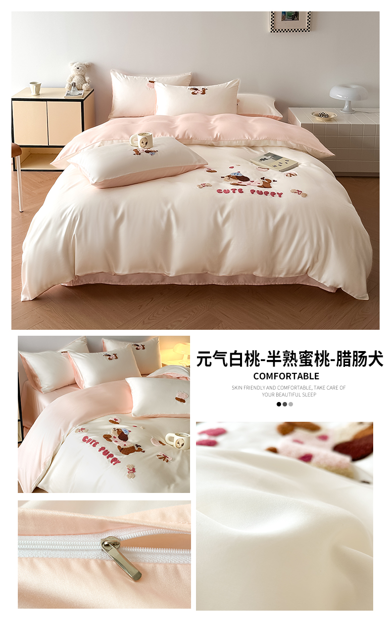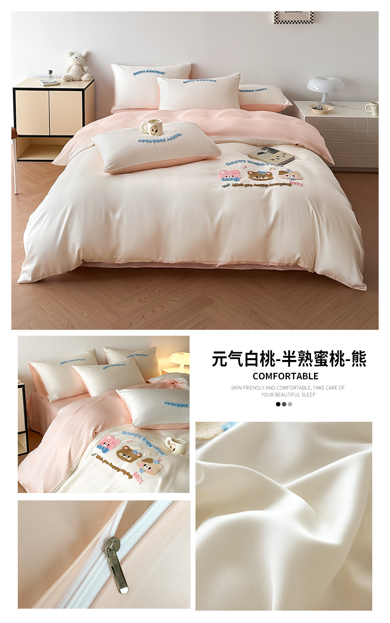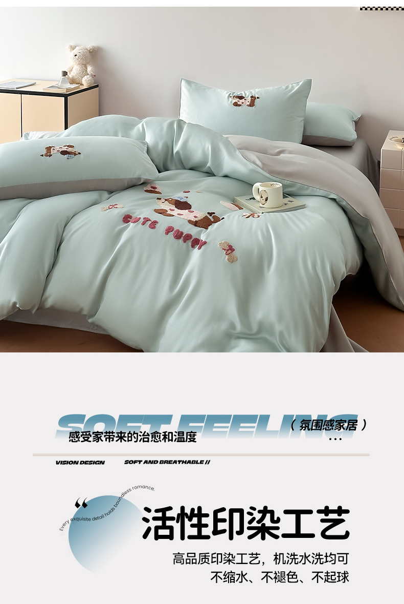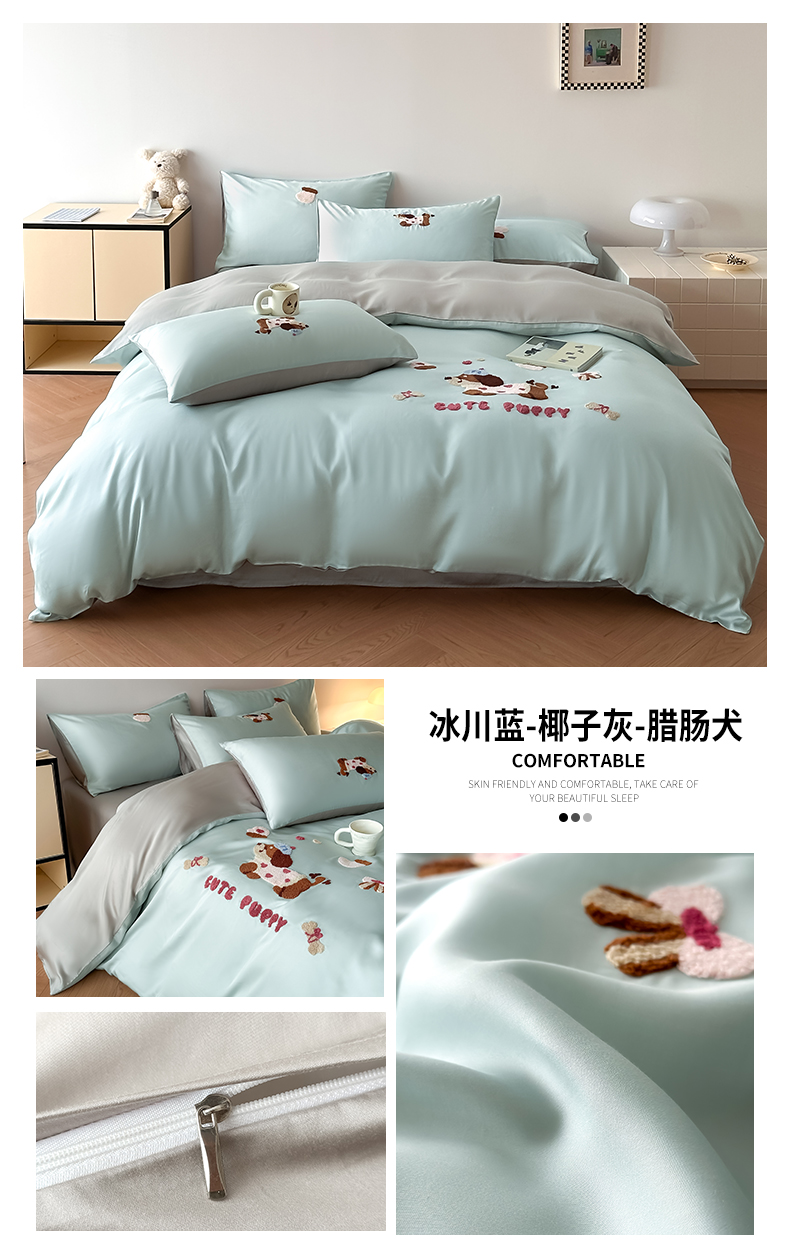 (总)DC 2024新款60S天丝印花刺绣四件套-雪莉系列,半熟蜜桃,冰川蓝,香谷槟,星辰绿,椰子灰,元气白桃