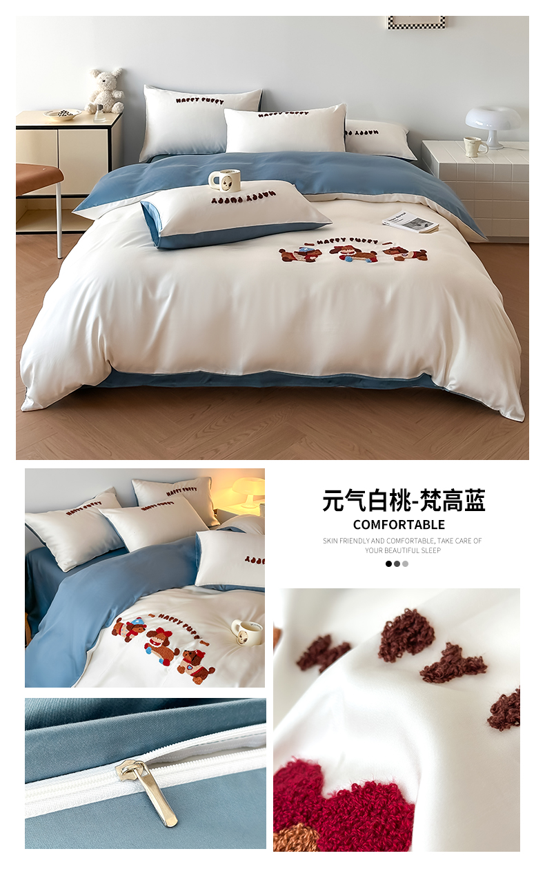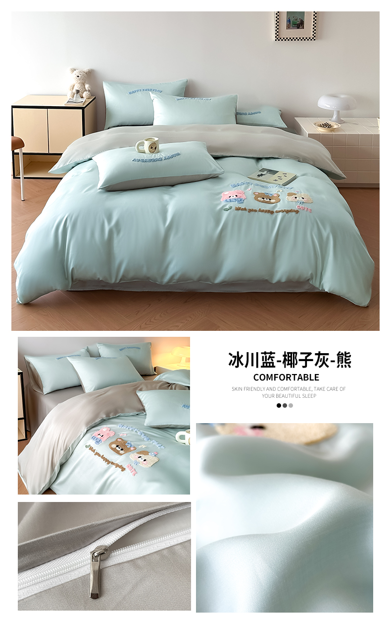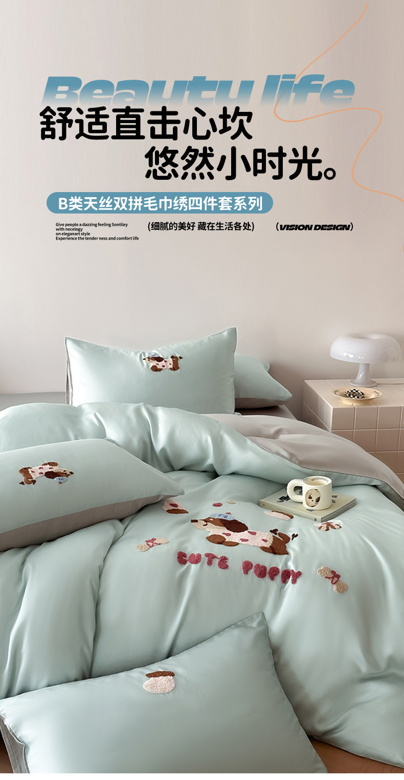 (总)DC 2025新款B类天丝双拼毛巾绣四件套--动物王国系列