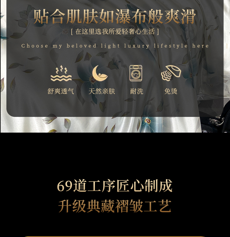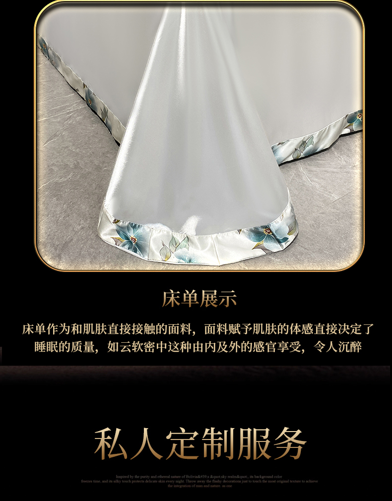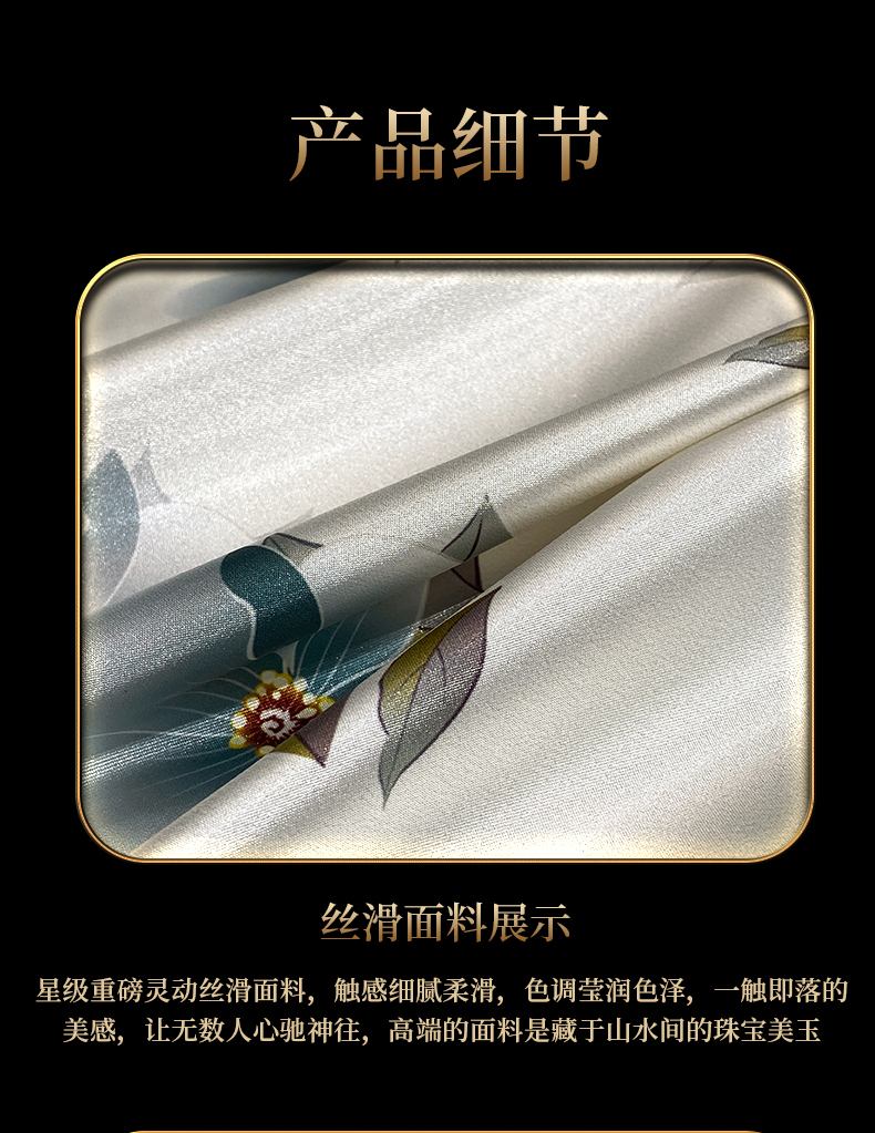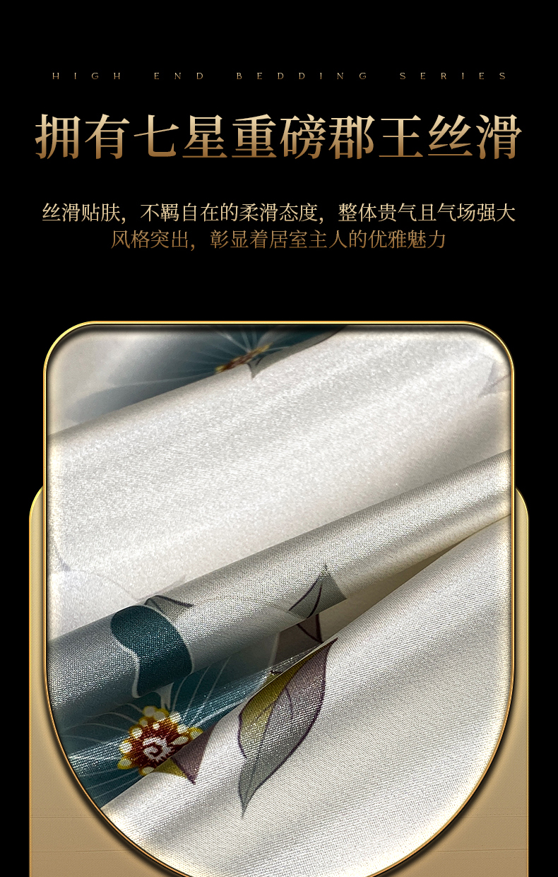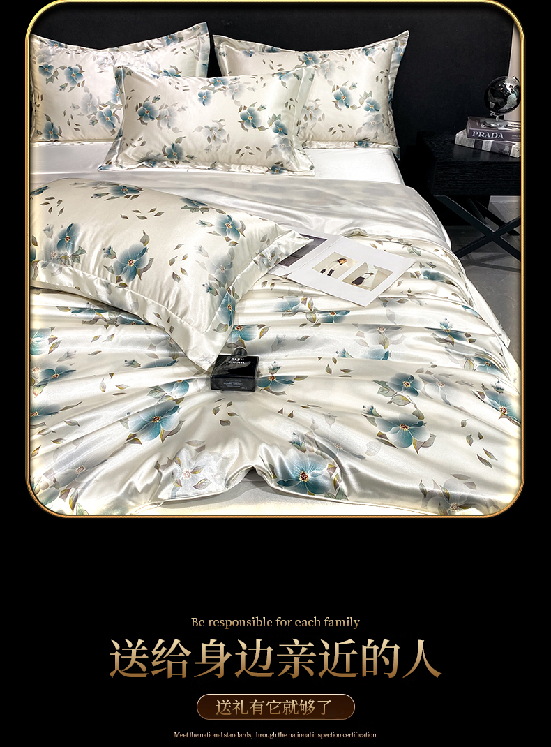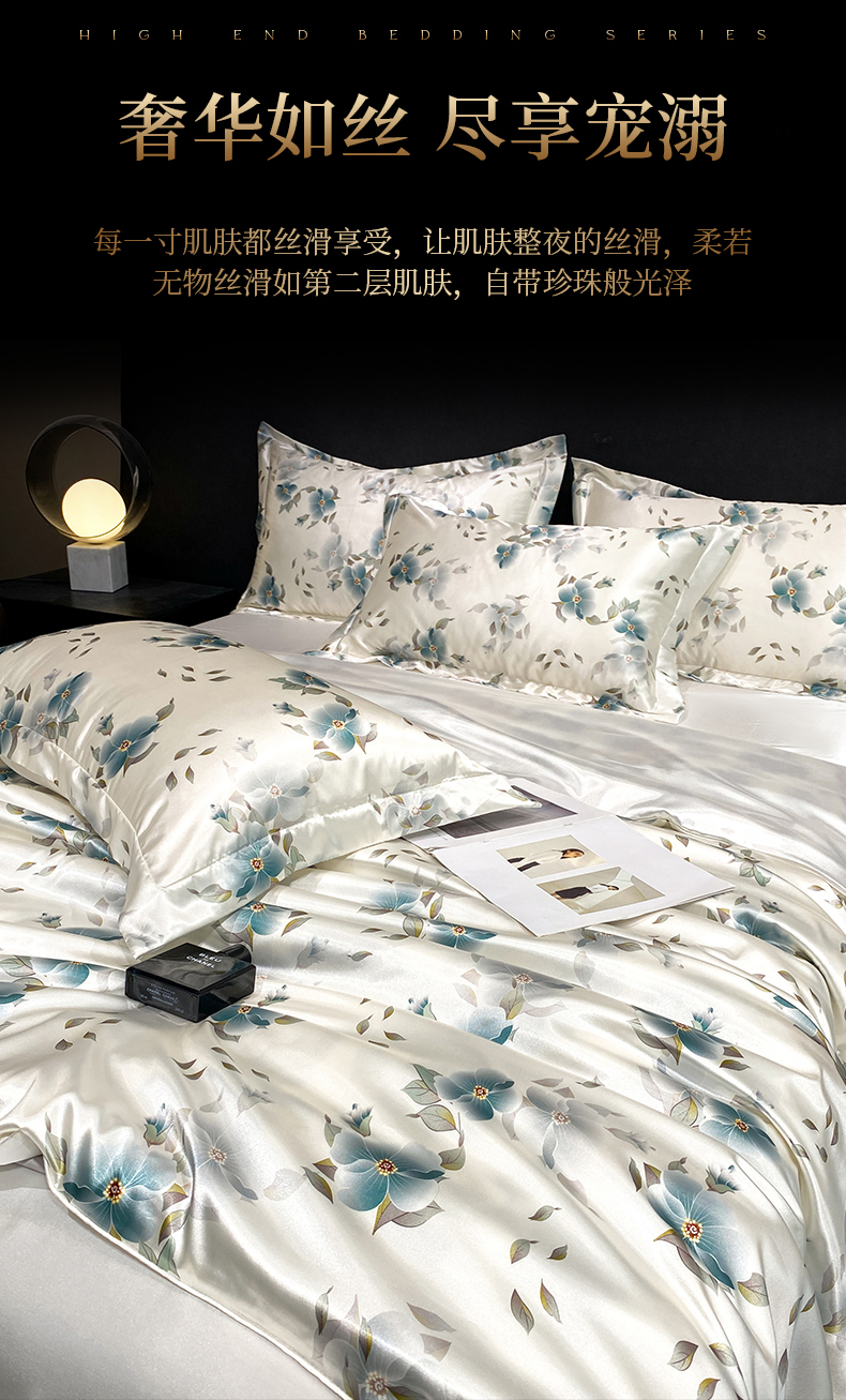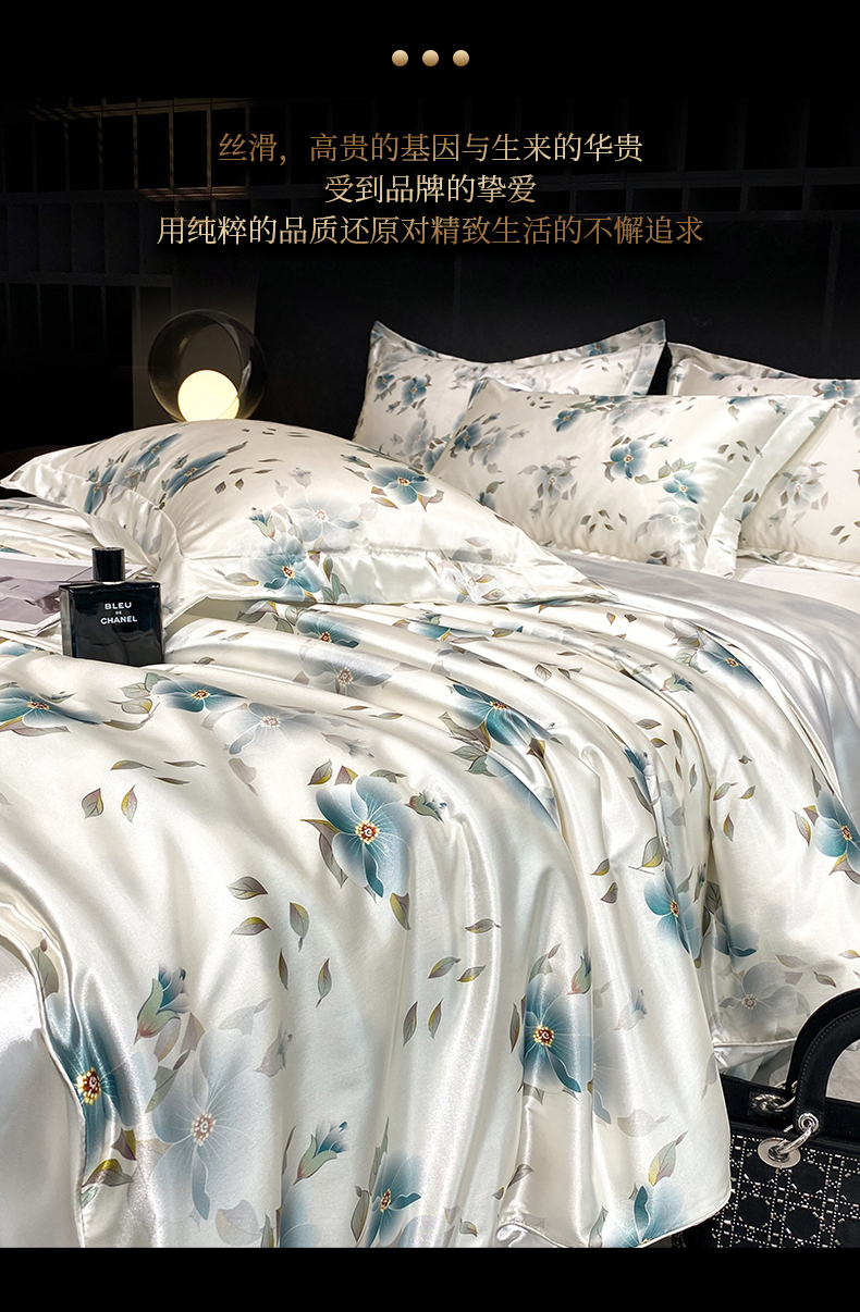商品名称:黄鹂鸟 2025新款高端轻奢丝滑裸睡丝绸数码印花水洗真丝天丝四件套系列 -风格四 锦绣花缘