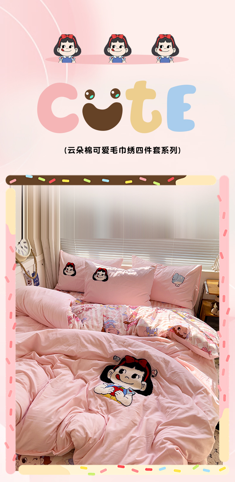 当前位置: 91家纺网 > 商品网购 > 床品套件 > 四件套 > 其它四件套 > 罗亿家纺 2025新款云朵棉可爱毛巾绣系列四件套 不二家公主
