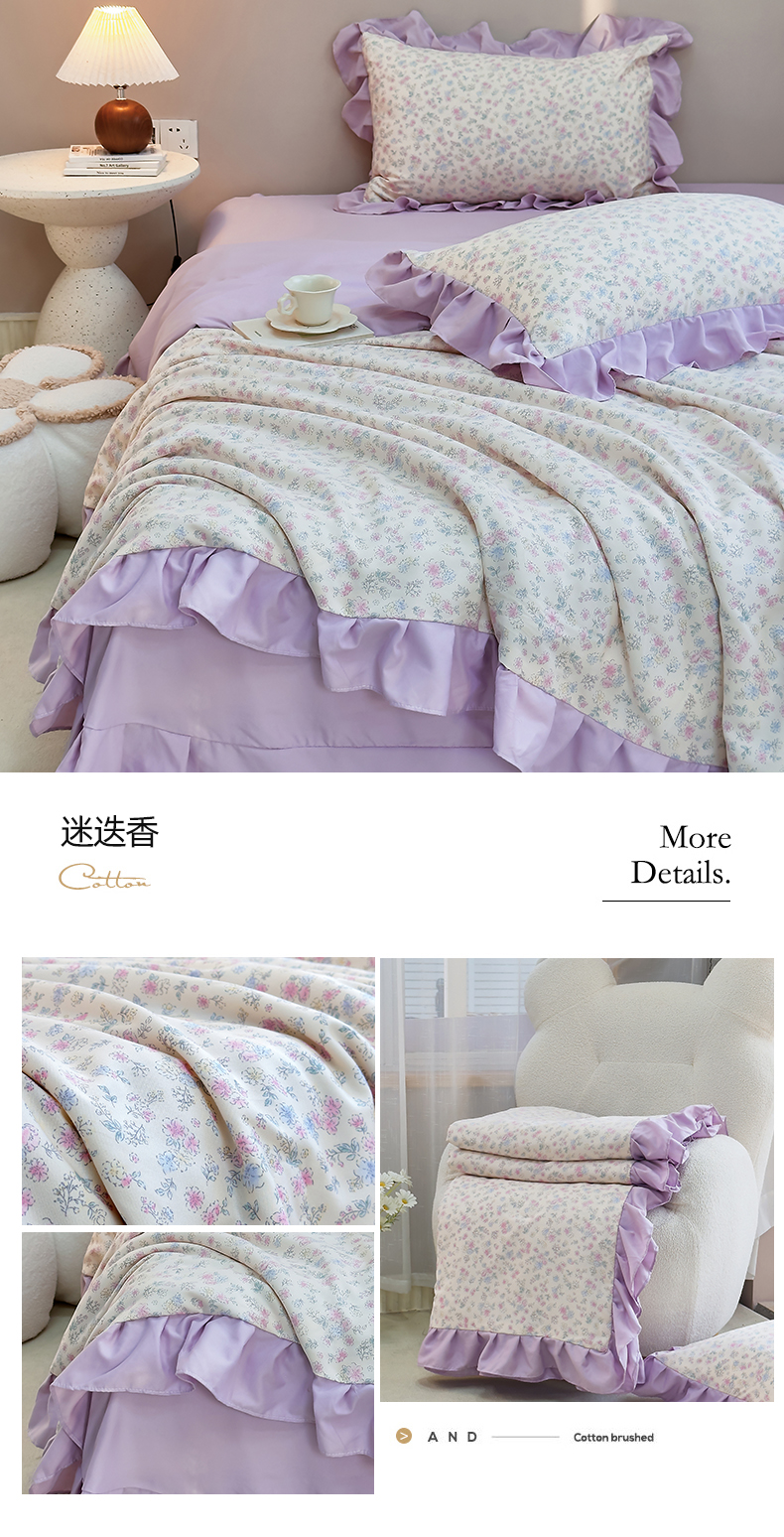 (总)梦莱斯 2025新款田园碎花纯棉花边四件套-床盖款,采薇,花精灵,花开半夏,莱茵,恋爱季,绿叶仙踪,糜花似锦,糜花熙悦,秘境花园