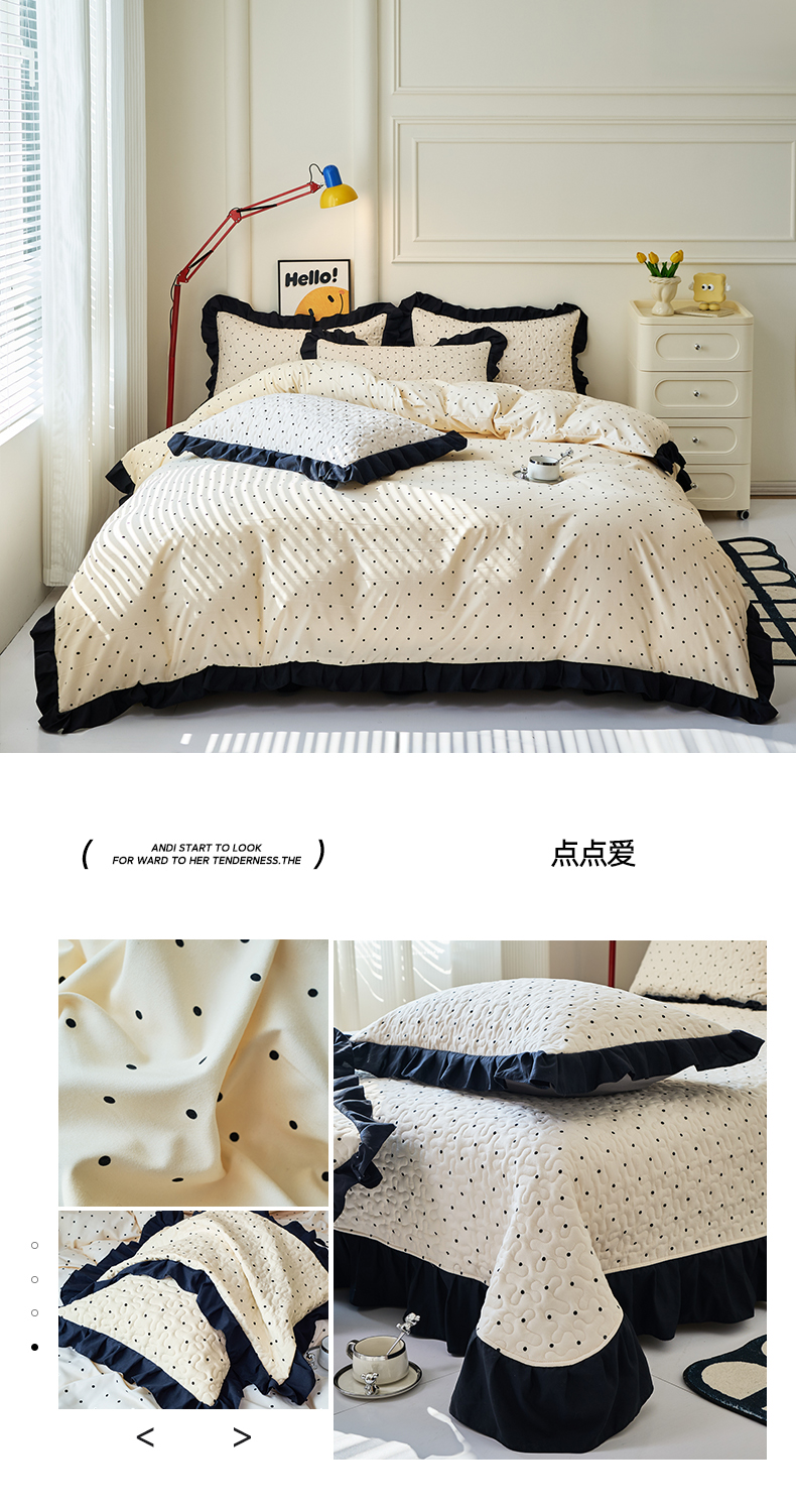 商品名称:(总)蝶帕家纺 2025新款法式赫本风韩版花边水洗棉床盖四件套
