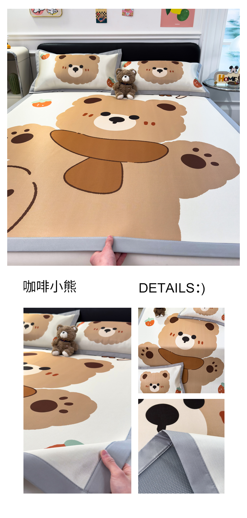 商品名称:丝羽坊 2025新款大版印花冰丝凉席冰丝席碳光冰丝凉席-平铺款 咖啡小熊
