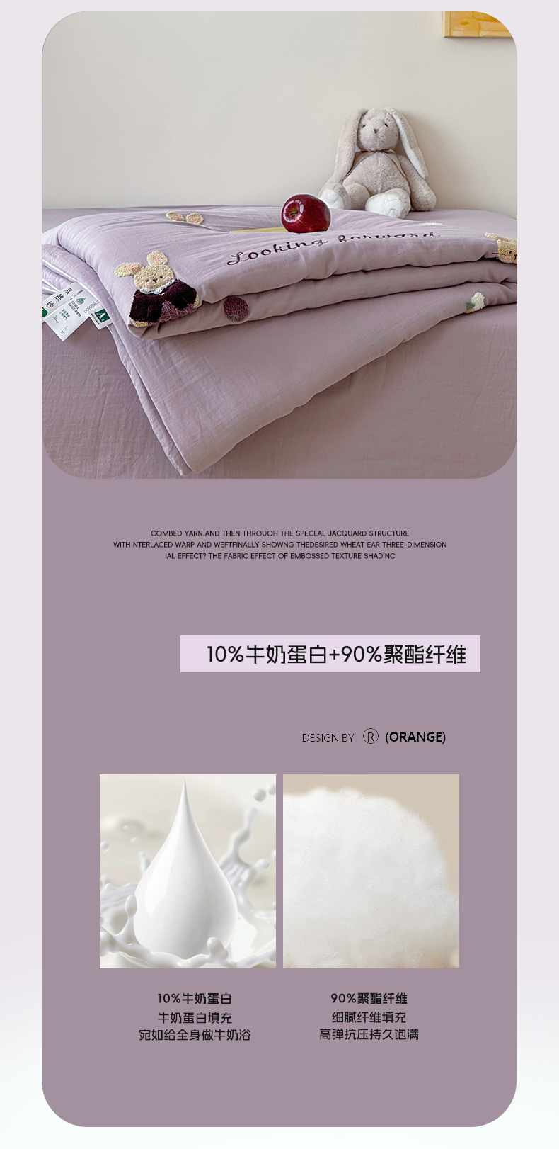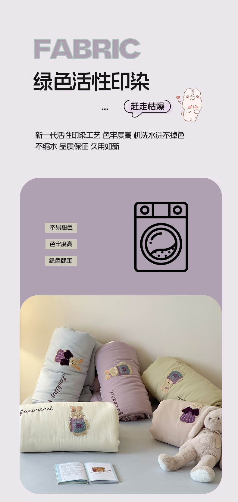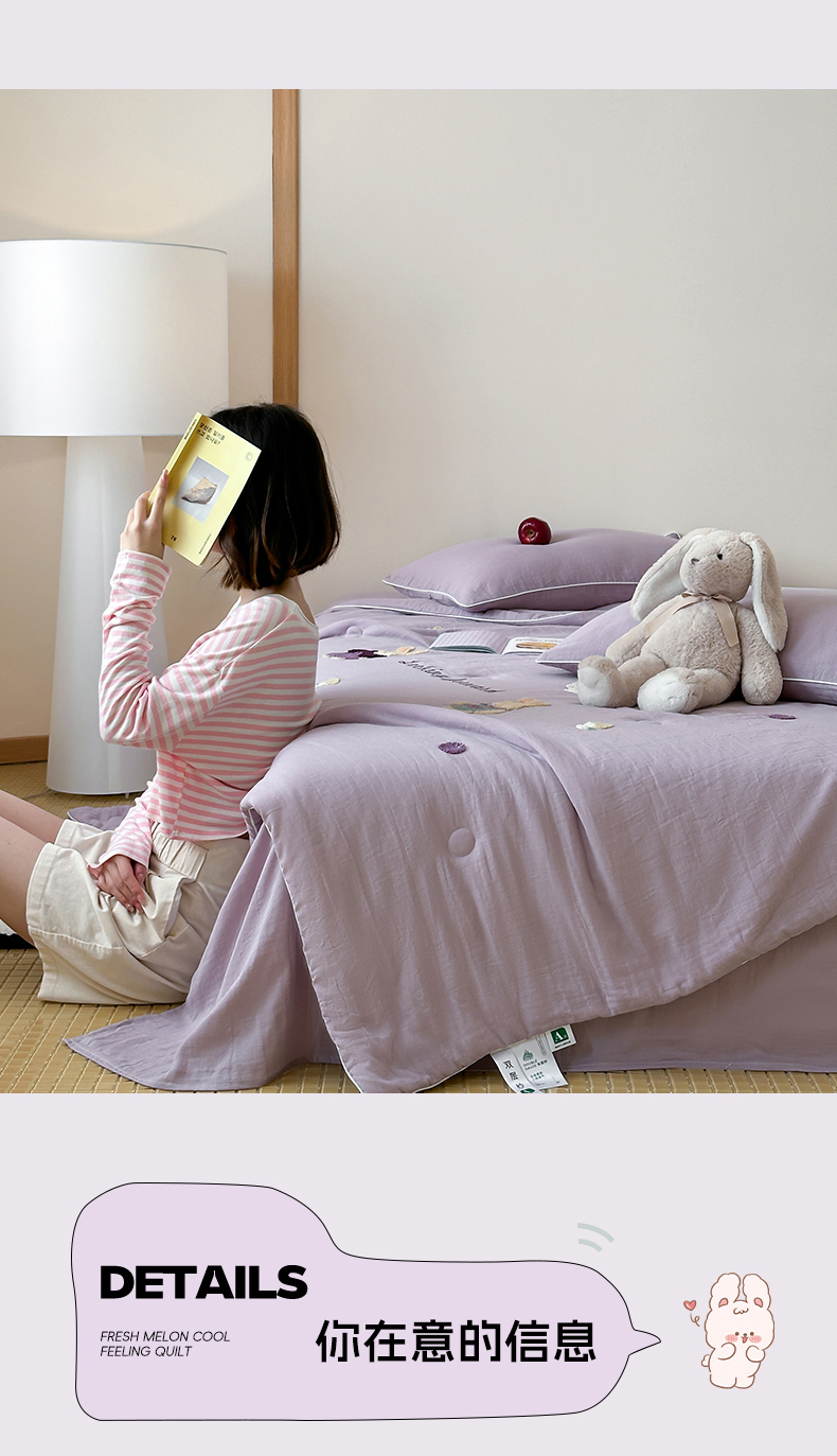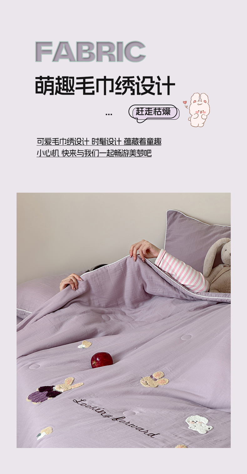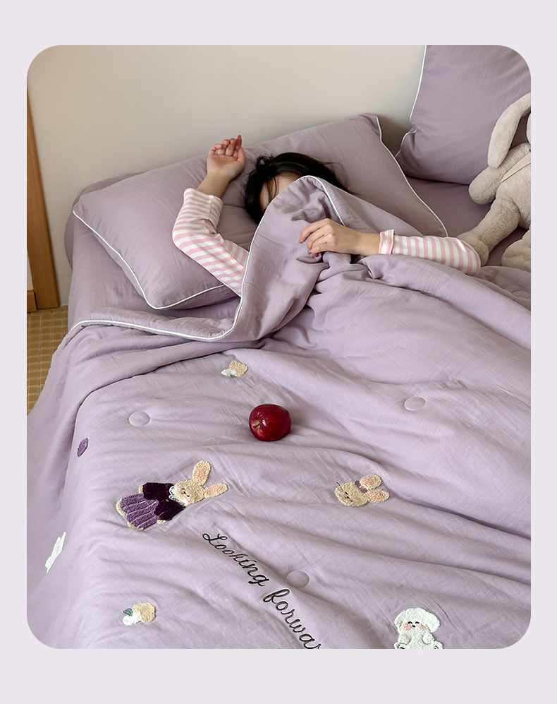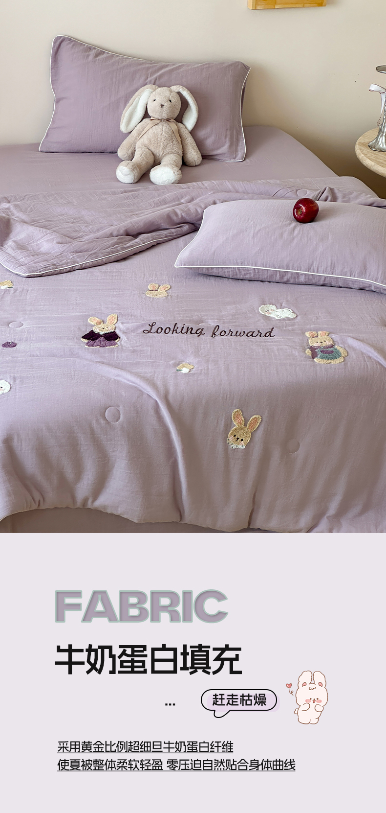 当前位置: 91家纺网 > 商品网购 > 床品套件 > 四件套 > 夏被四件套 > 一加一 2025新款A类全棉双层纱皱皱纱毛巾绣夏被四件套(可妮兔系列) 可妮兔-紫