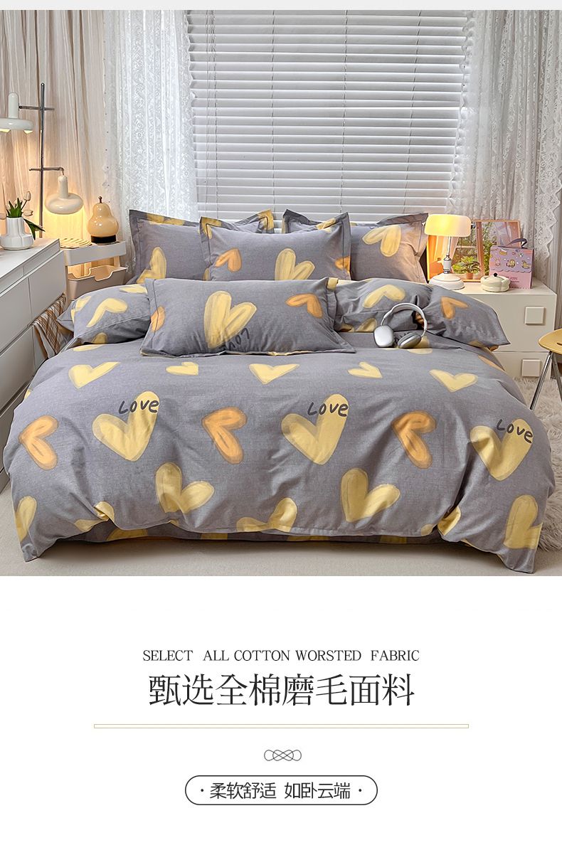 (总) 简约 2025新款全棉四件套活性生态磨毛四件套,灵感-黄,盛夏-粉,小皇冠-米灰,轩尼诗-粉,叶影,灵感-蓝,暮色-咖,暮色-蓝,巴比伦-灰,沁语繁花-咖,沁语繁花-绿,浅浅花香-灰,铂尔曼-粉,山茶诗篇-咖,暮色-紫,山茶诗篇-绿,维克多-咖,致青春蓝,芦花-灰,乐天派灰,致青春灰,艾尔伦-蓝,春雅格-咖,莫卡迪-桔,克洛尼-粉,童画小兔,轩尼诗-咖,蜜恋-黄,白月光-紫,都市印象-灰,简约优品-咖,清颜-桔,爱巢-灰,都市节奏-粉,风铃花香-绿,皓月星空-粉,海派绅士-灰,杏花雨-粉,月影灰,禾悦-粉,相思叶-咖,相思叶-绿,叶初开-粉,叶初开-桔