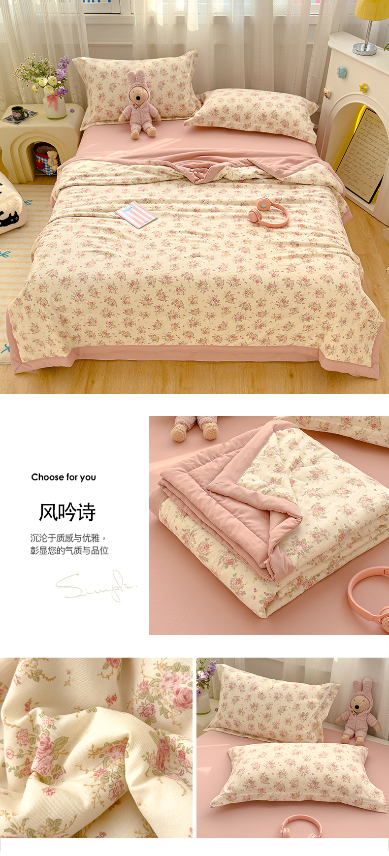 芯恋家居 2025新款针织棉双层纱夏被夏被四件套 秋月诗