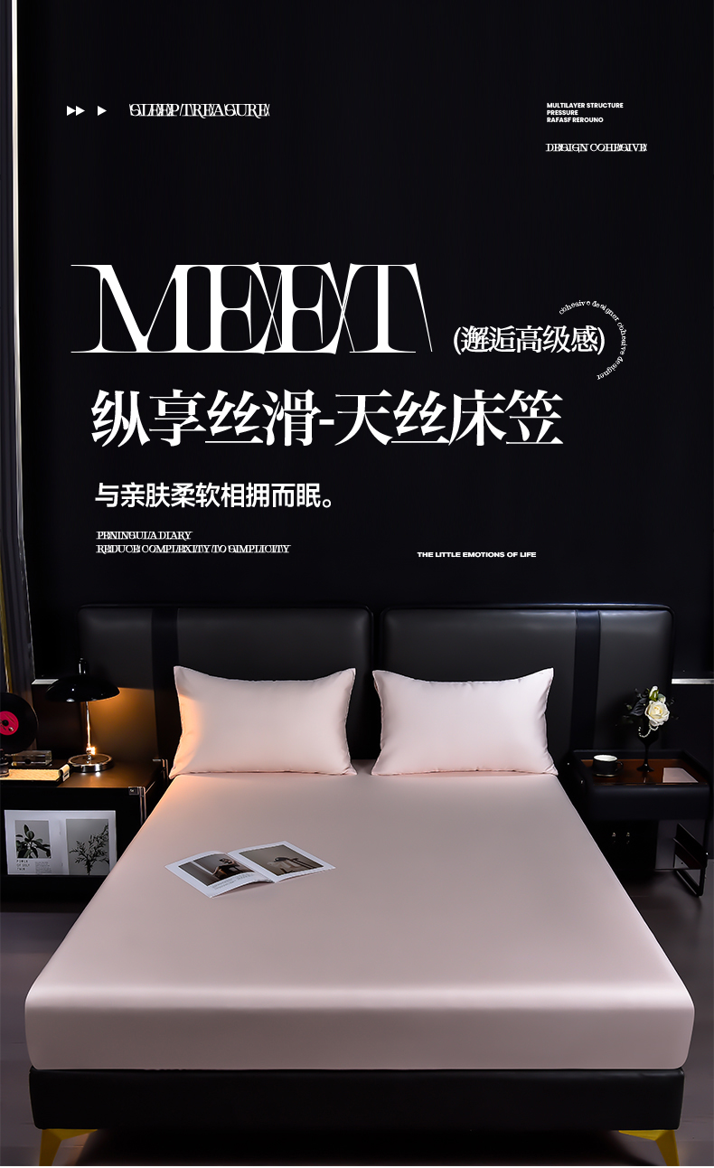 • 91家纺网 家纺一手货源 找家纺 摩妮卡 2025新款60s莱赛尔天丝单床笠 星屑粉