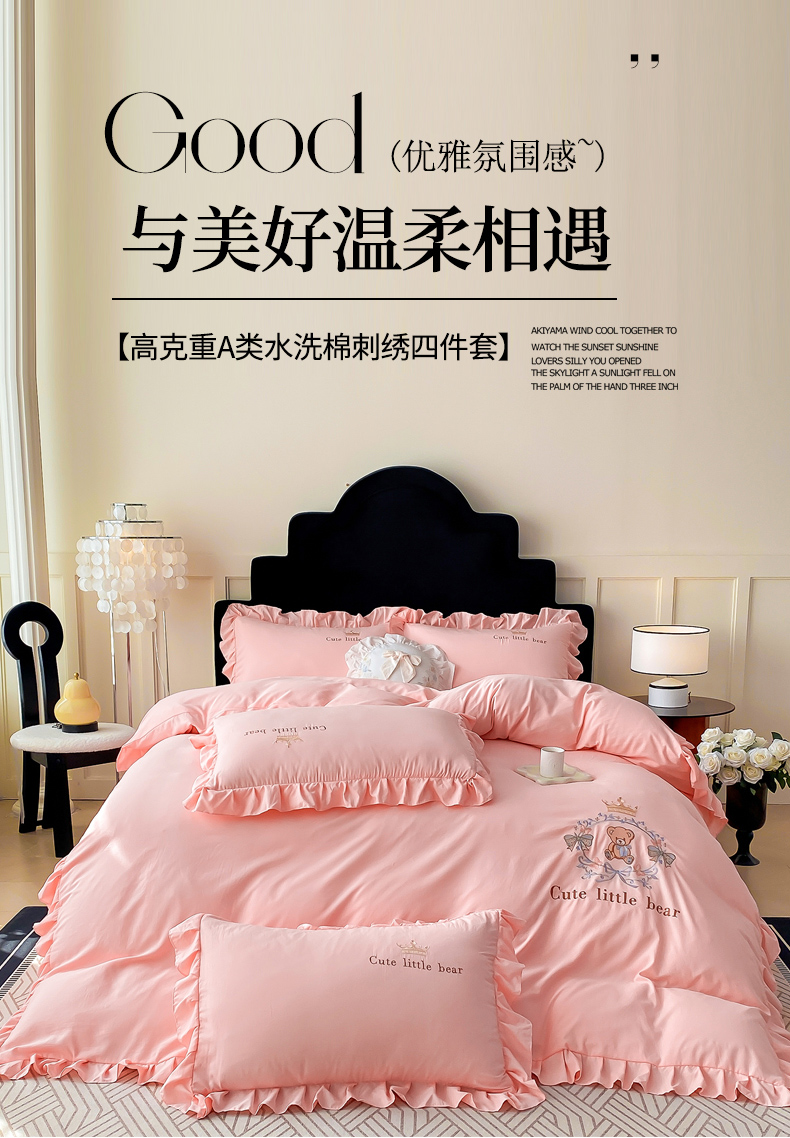 (总)帝菲妮 2025新款法式韩版高克重超柔水洗棉针织棉糯小棉刺绣四件套,熊宝-宾利兰,熊宝-奶白灰,熊宝-奶白卡其,熊宝-浅紫,熊宝-水绿,熊宝-珍珠粉