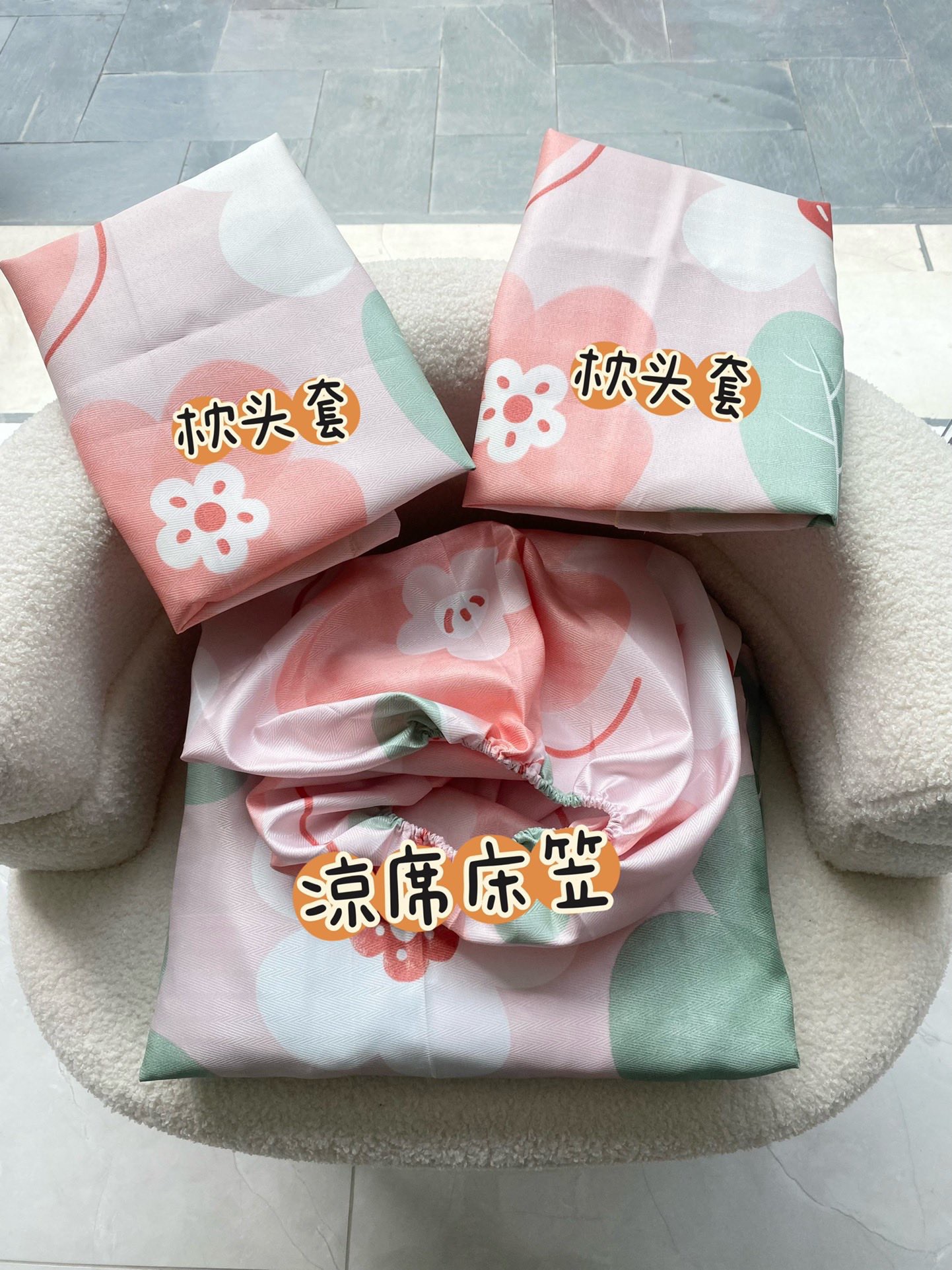 商品名称:豪美鑫 2025新款提花冰丝席床笠款 粉色花海