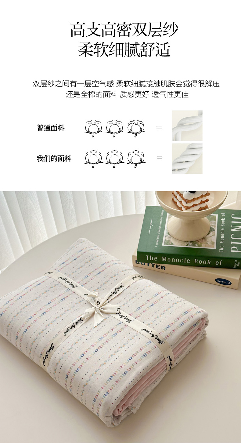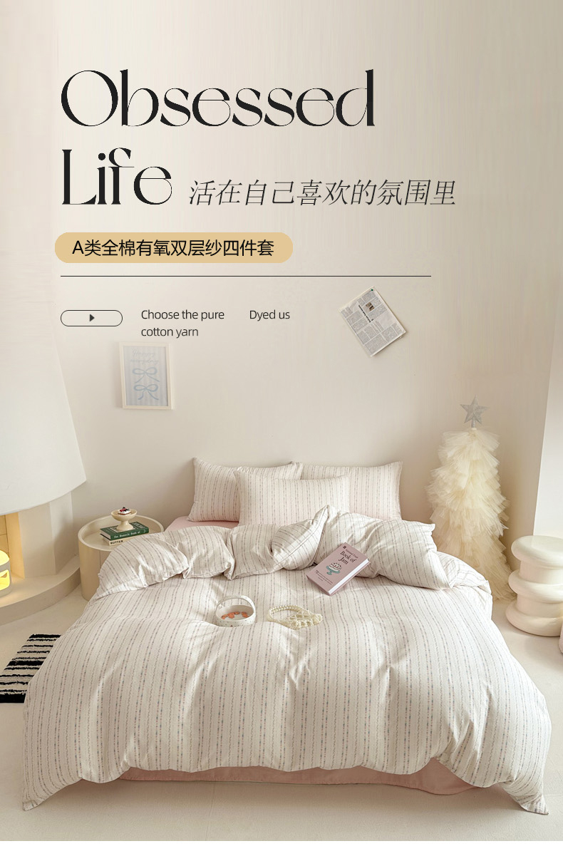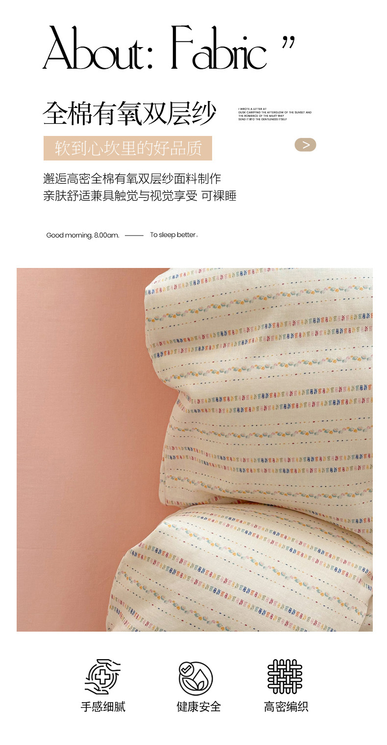 商品名称:2025新款全棉有氧A类母婴级双层纱印花四件套 绛妍-米