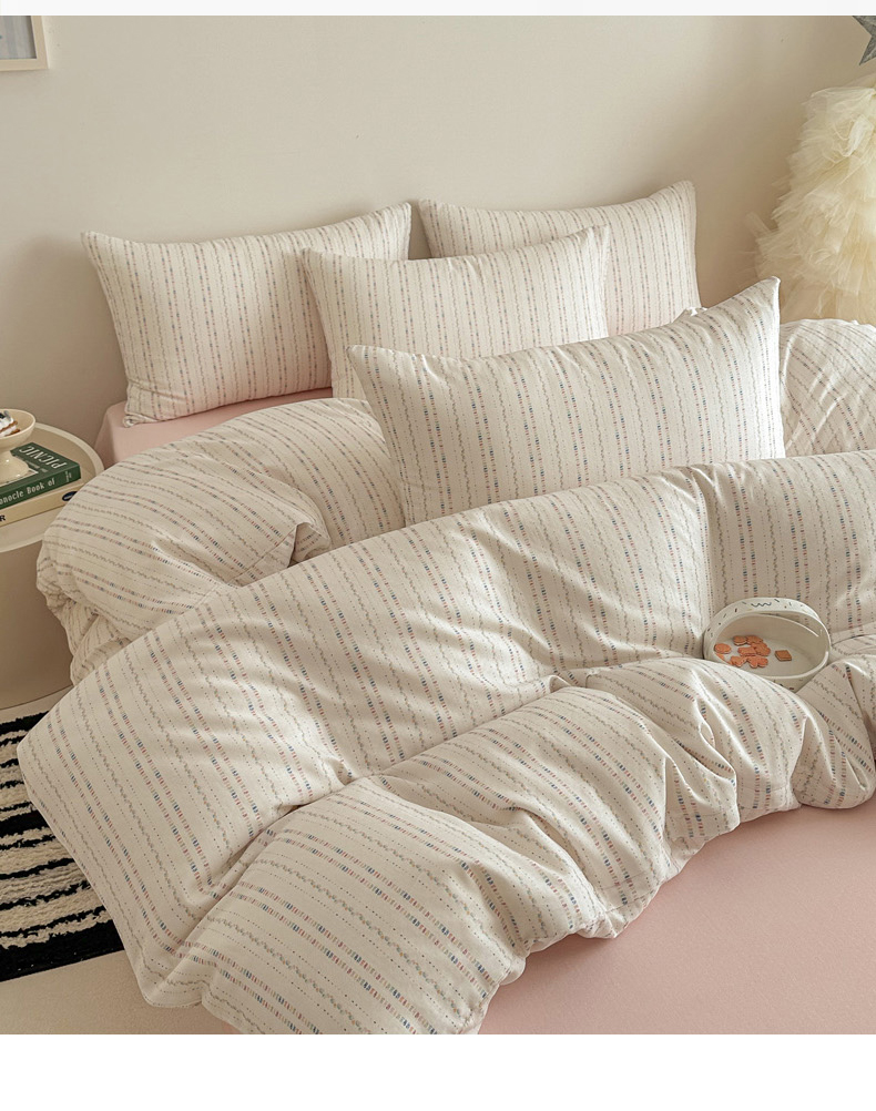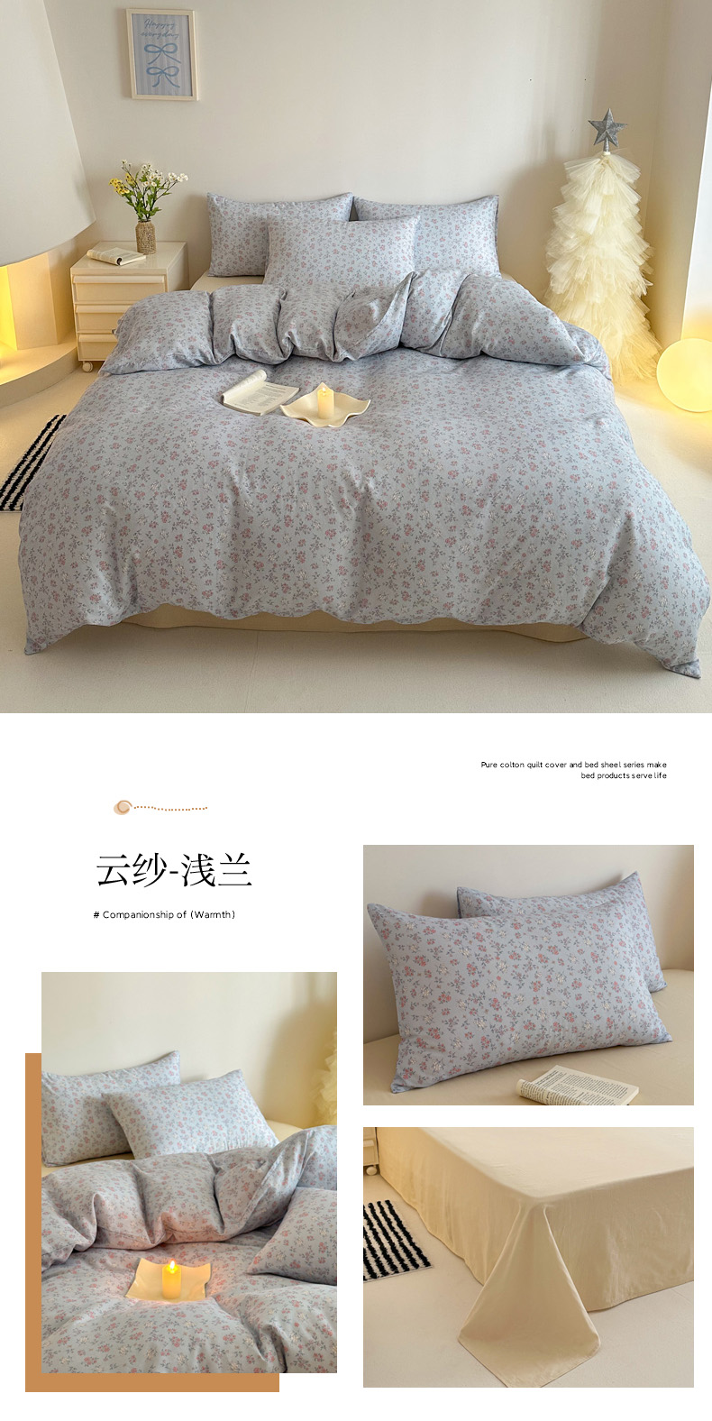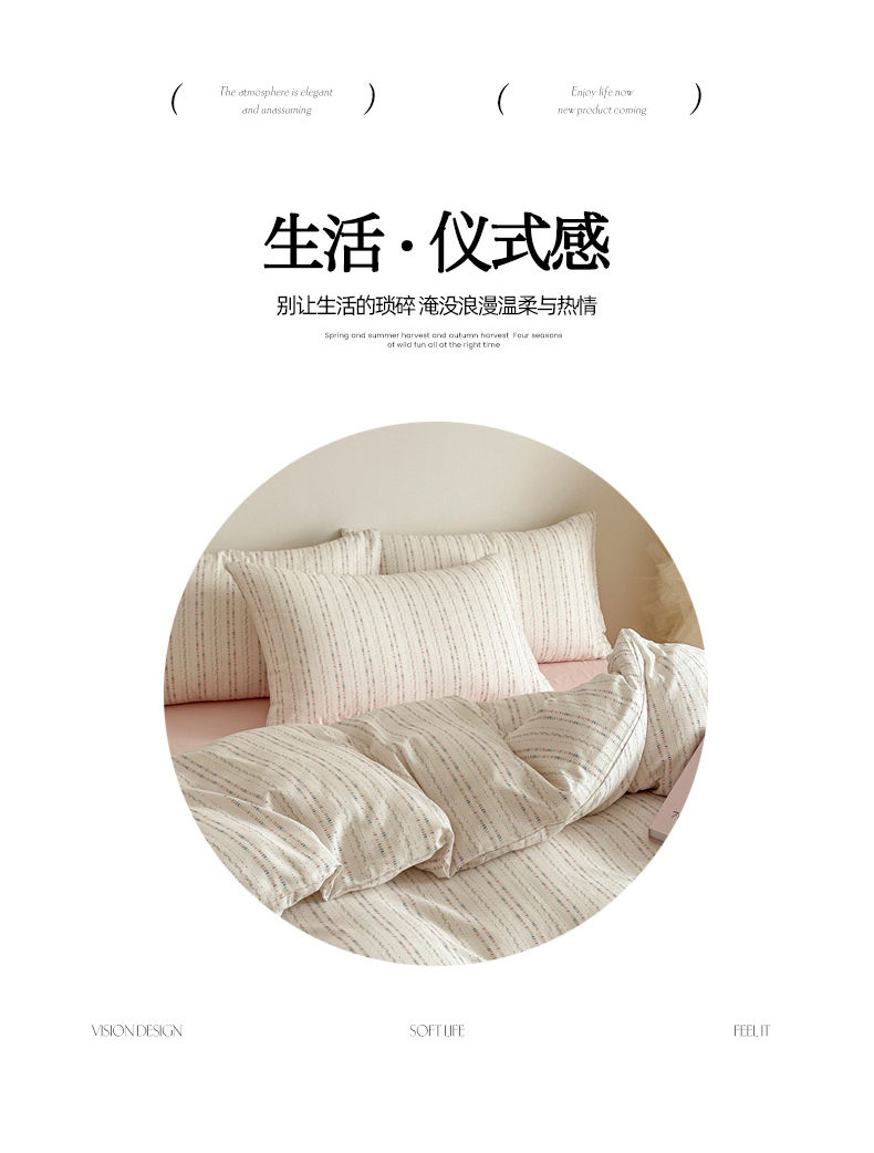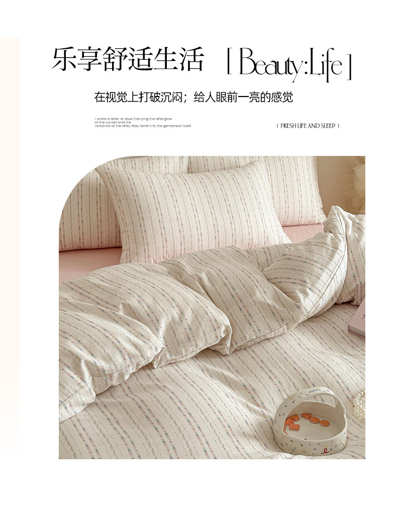 商品名称:2025新款全棉有氧A类母婴级双层纱印花四件套 绛妍-米