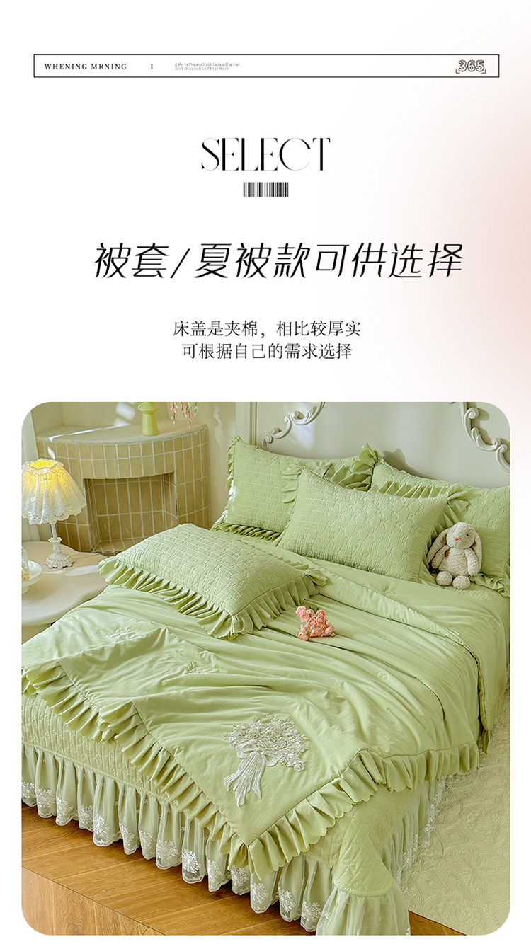 漫布云2025秋冬新款11斤230g全消光牛奶绒夹棉床盖款四件套纯色蕾丝花边刺绣床裙款床盖,蝶恋花-梦幻紫, 蝶恋花-嫩黄 ,蝶恋花-新芽绿, 蝶恋花-婴儿蓝, 蝶恋花-樱花粉