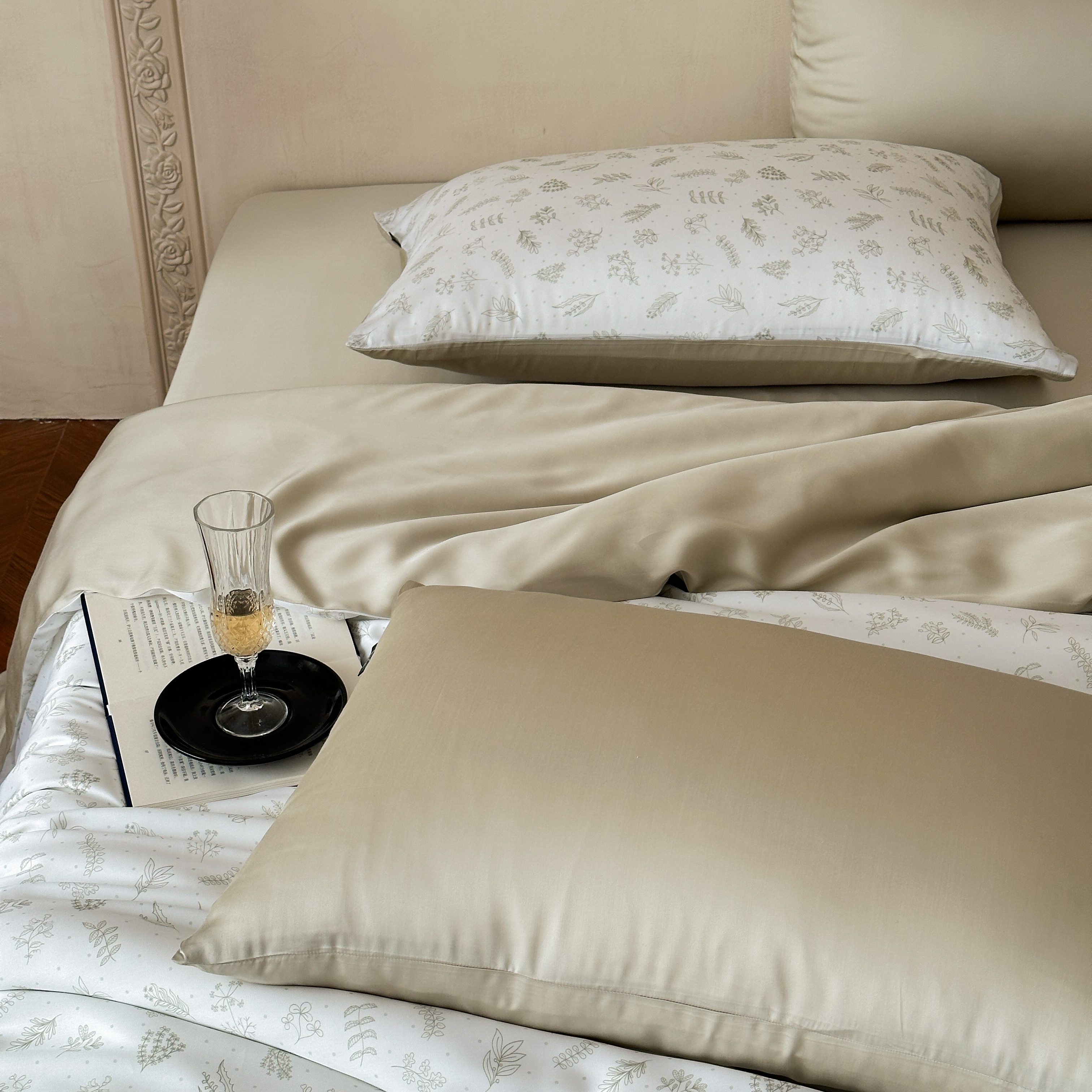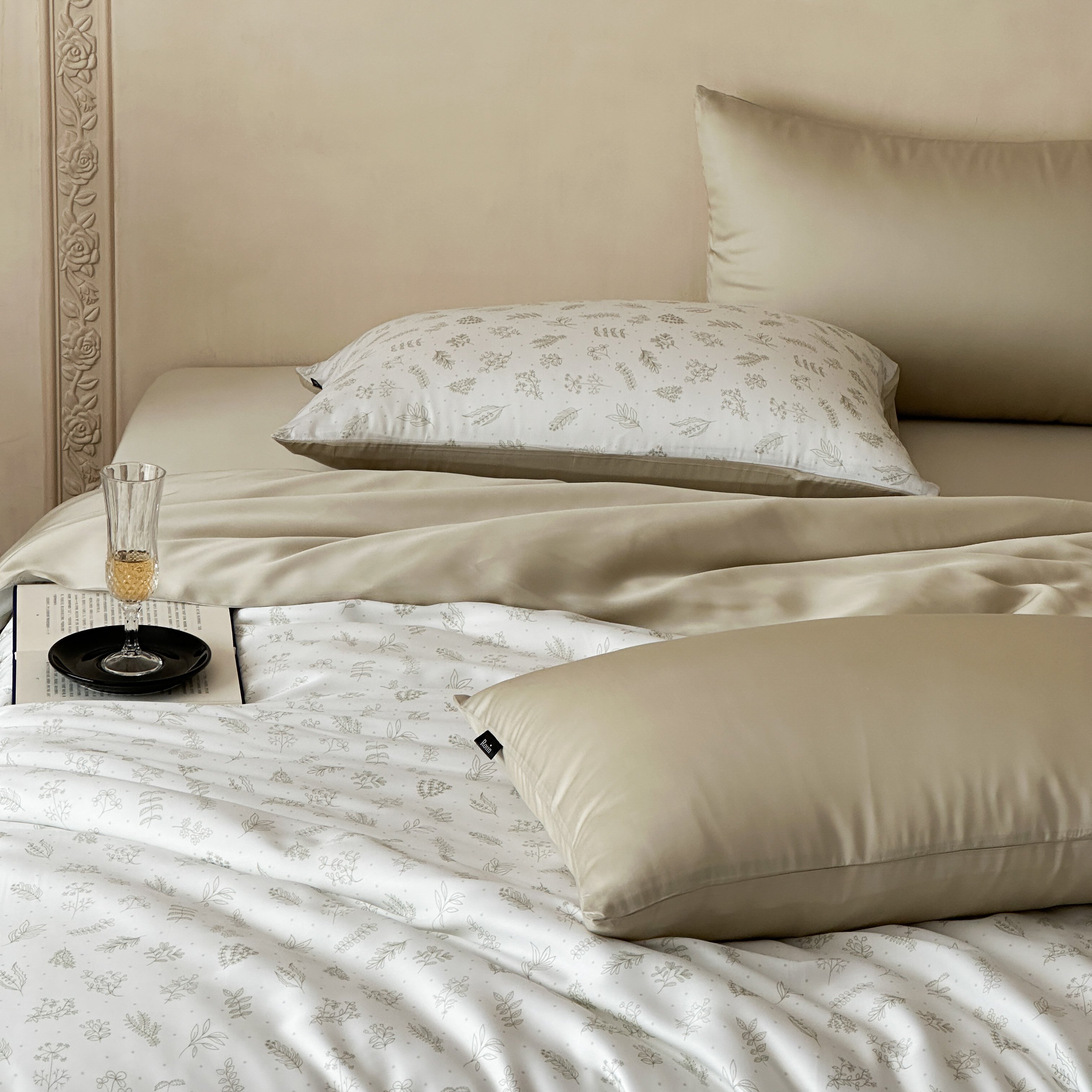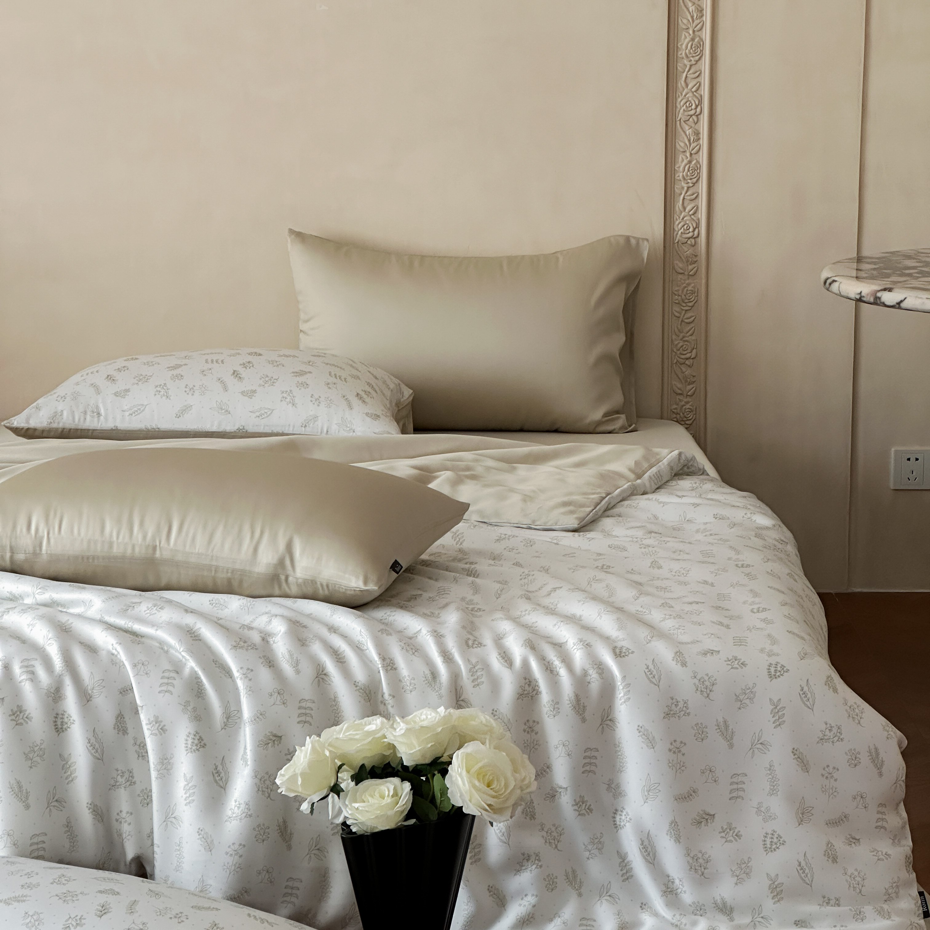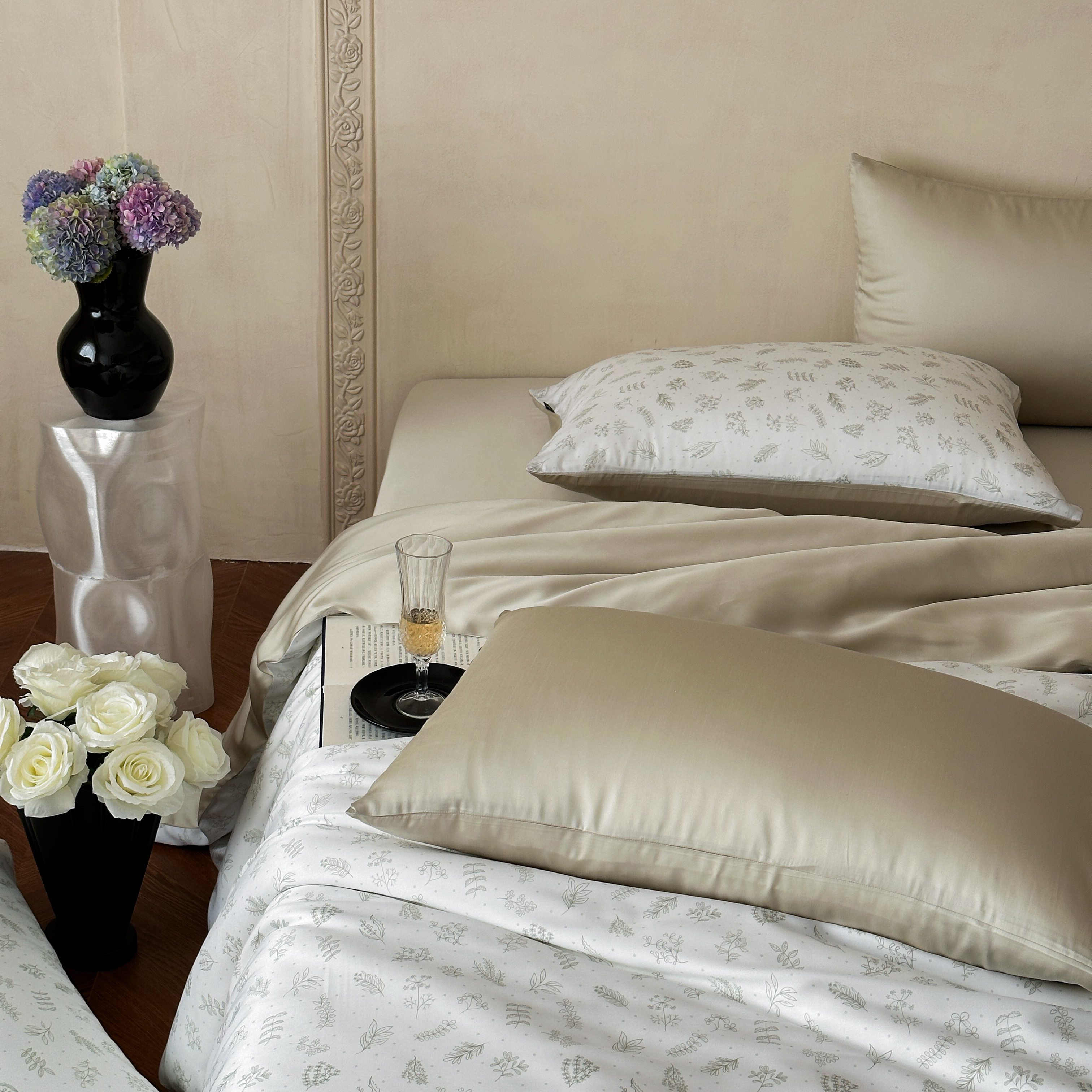 (总)玉宇阁家居 2023新款春夏60支兰精天丝拼色四件套,都市灰香槟,海盐松露,芥末黄香槟,裸粉香槟,茉莉奶绿,浅灰鹅黄,若草乳白