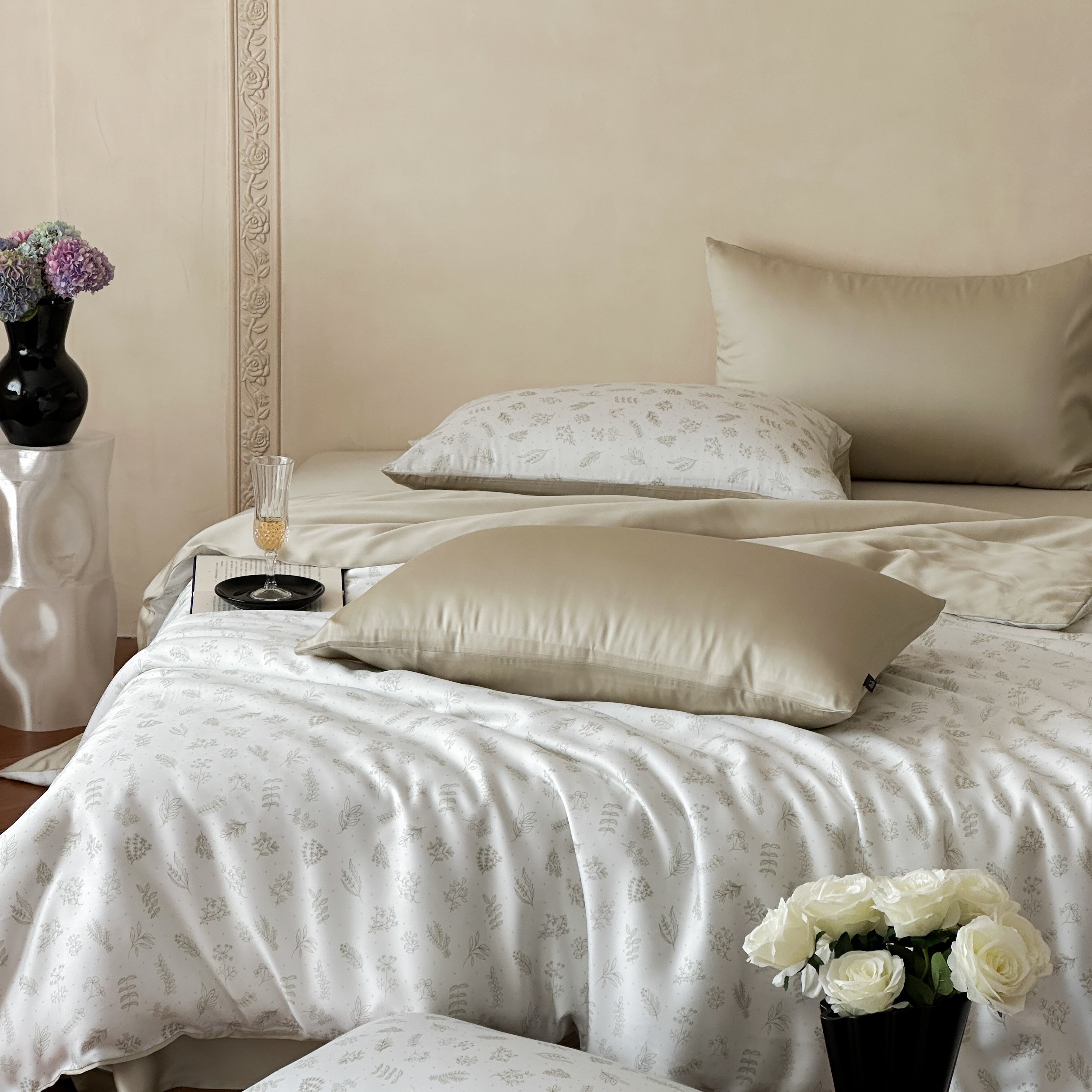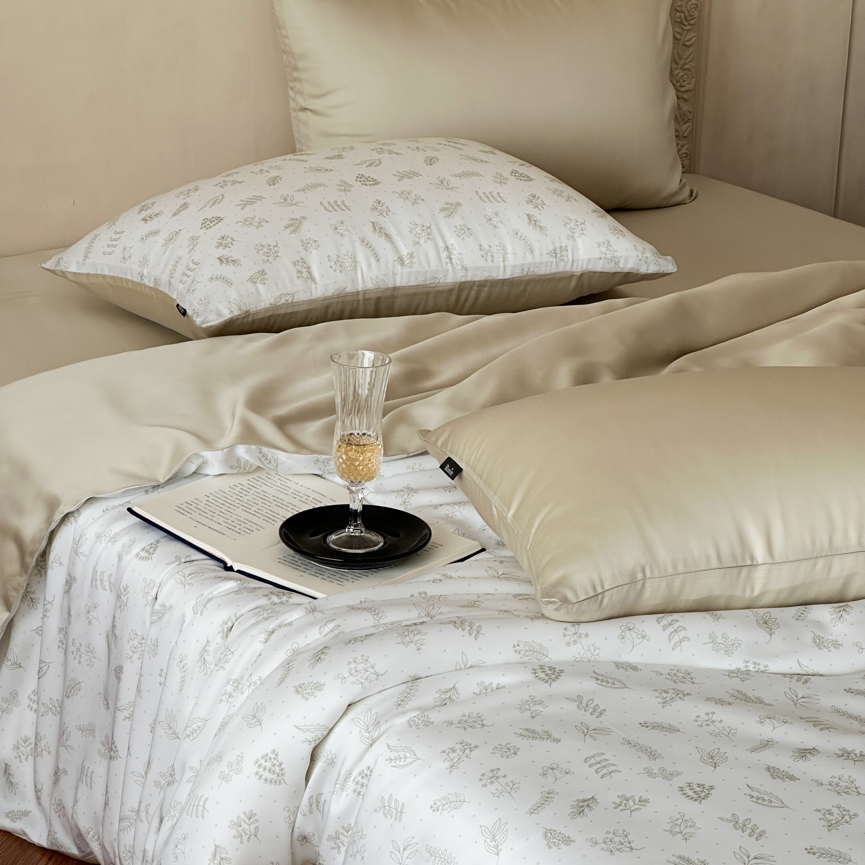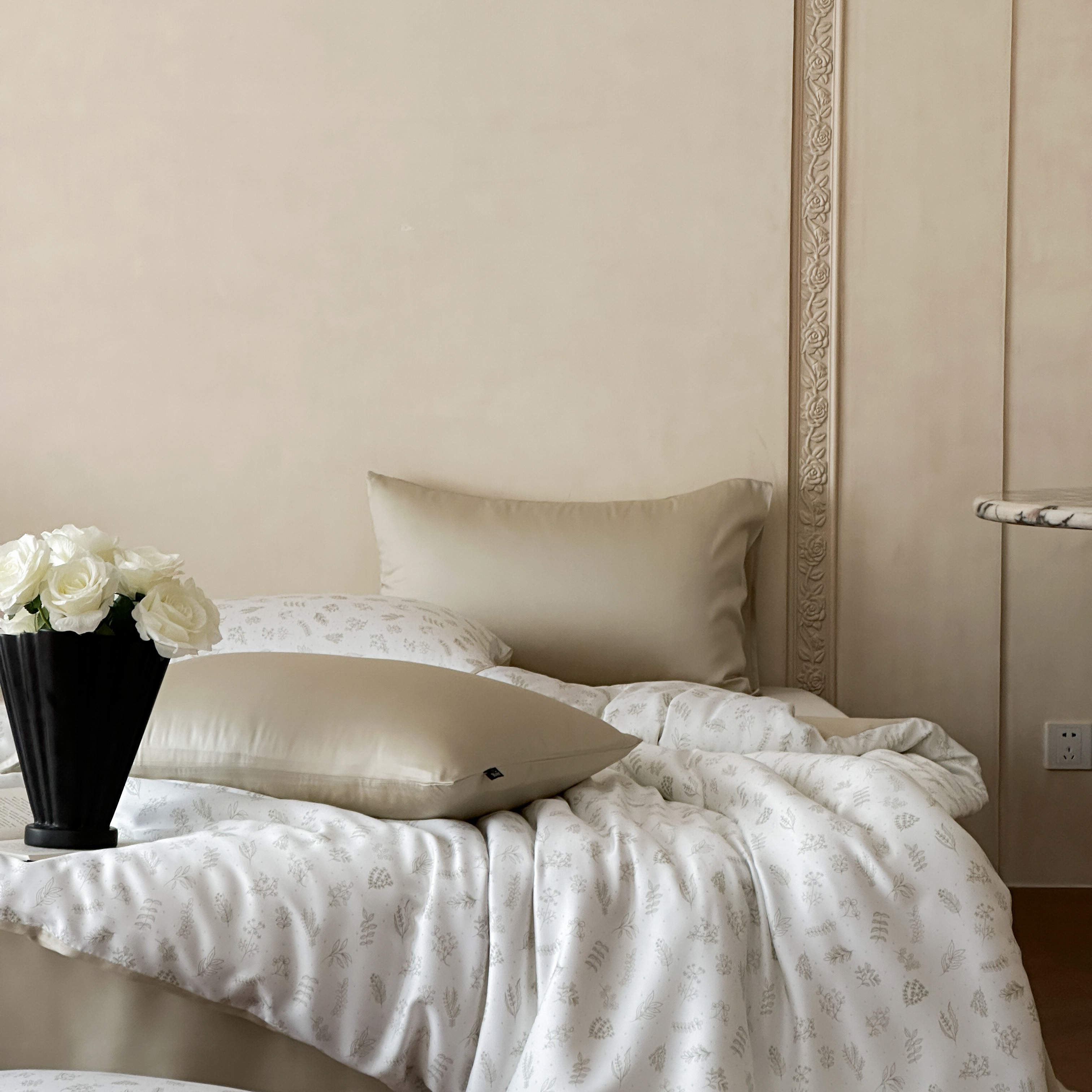 (总)玉宇阁家居 2023新款春夏60支兰精天丝拼色四件套,都市灰香槟,海盐松露,芥末黄香槟,裸粉香槟,茉莉奶绿,浅灰鹅黄,若草乳白