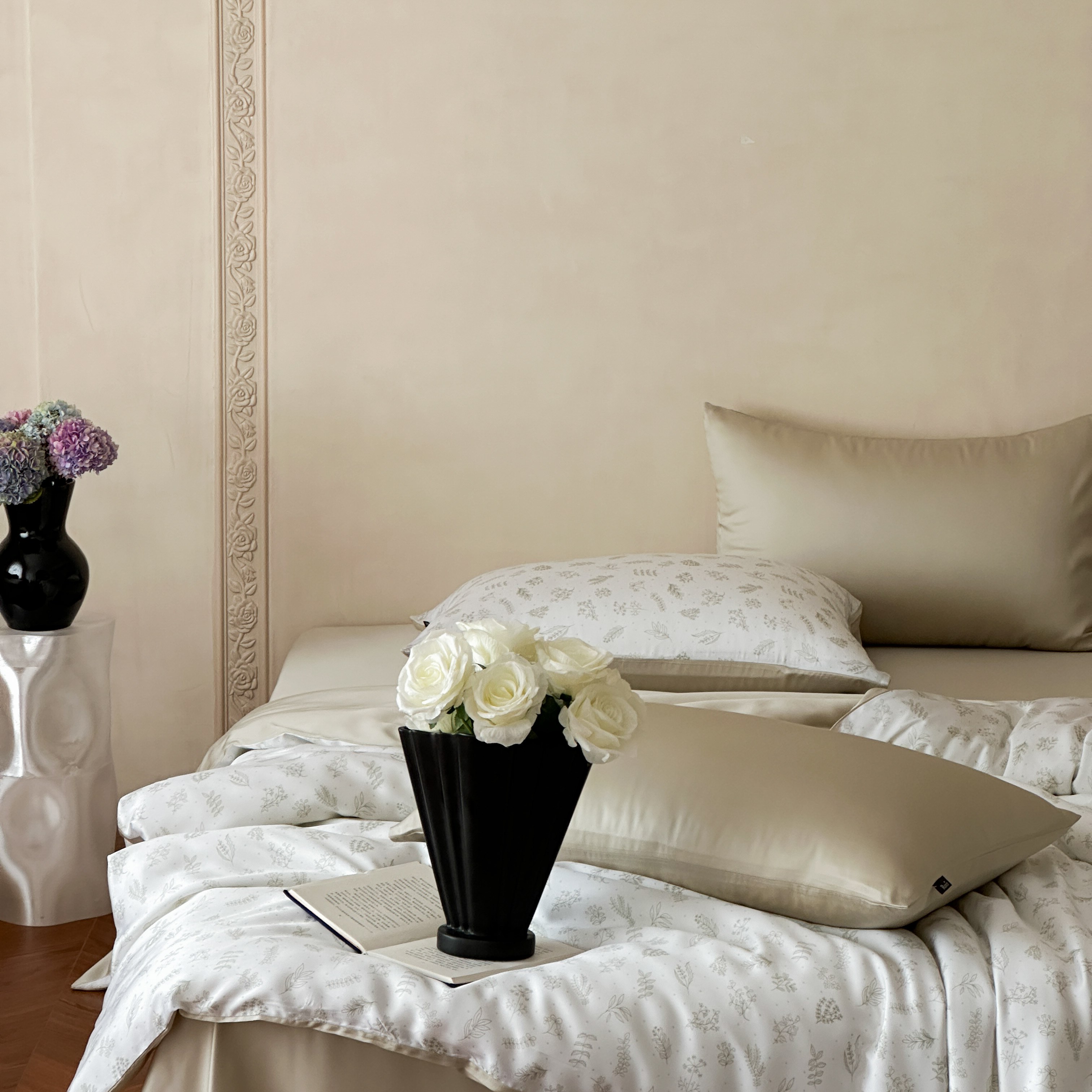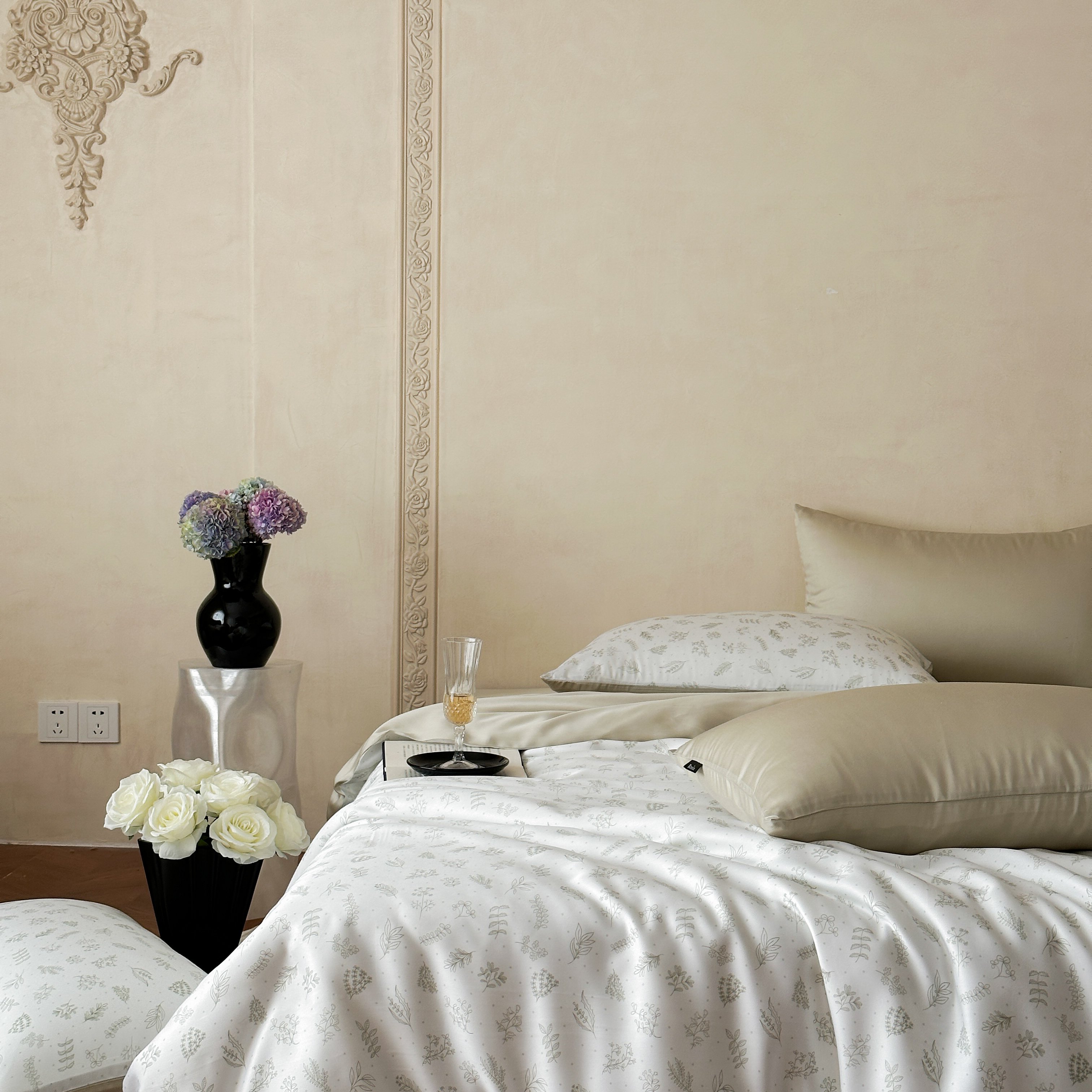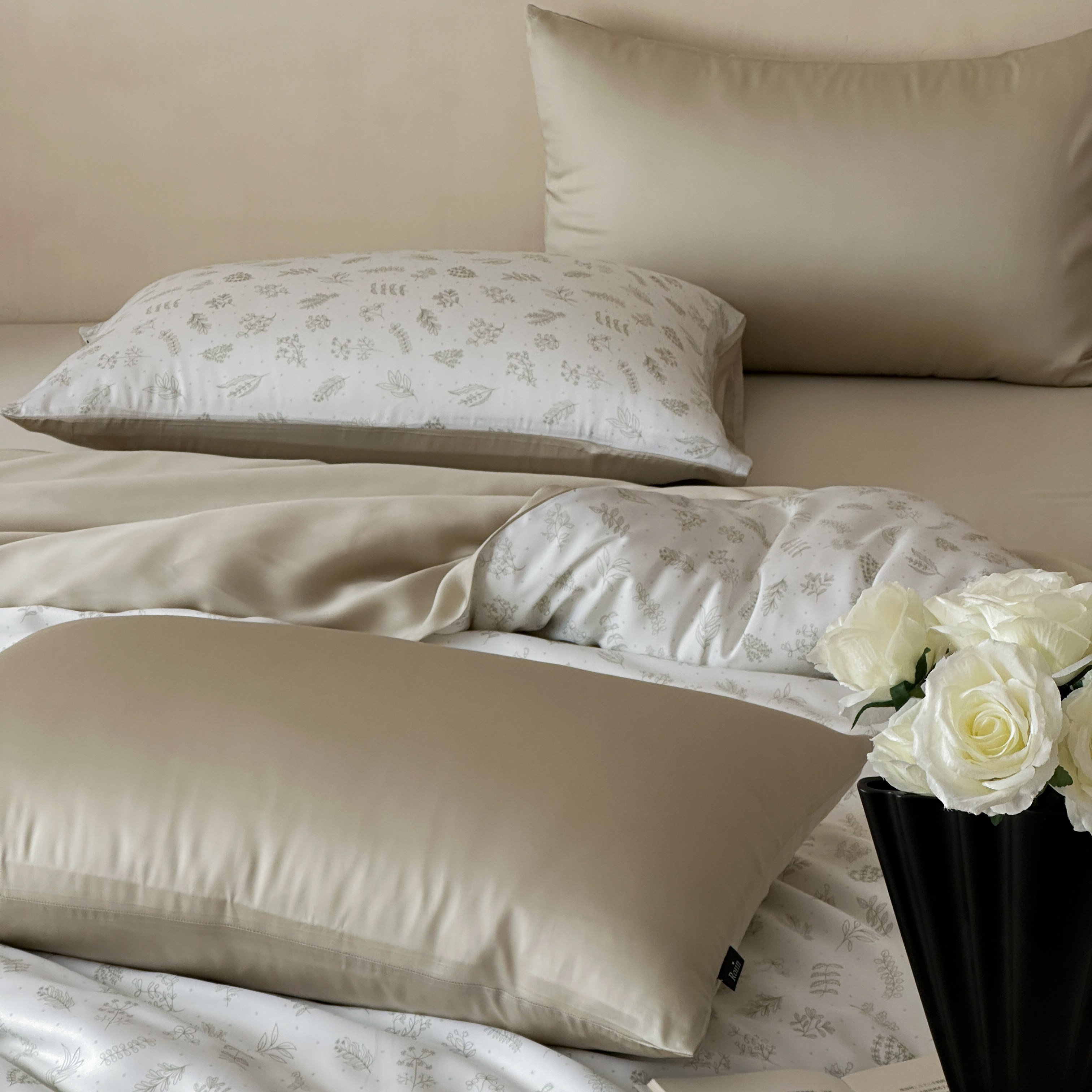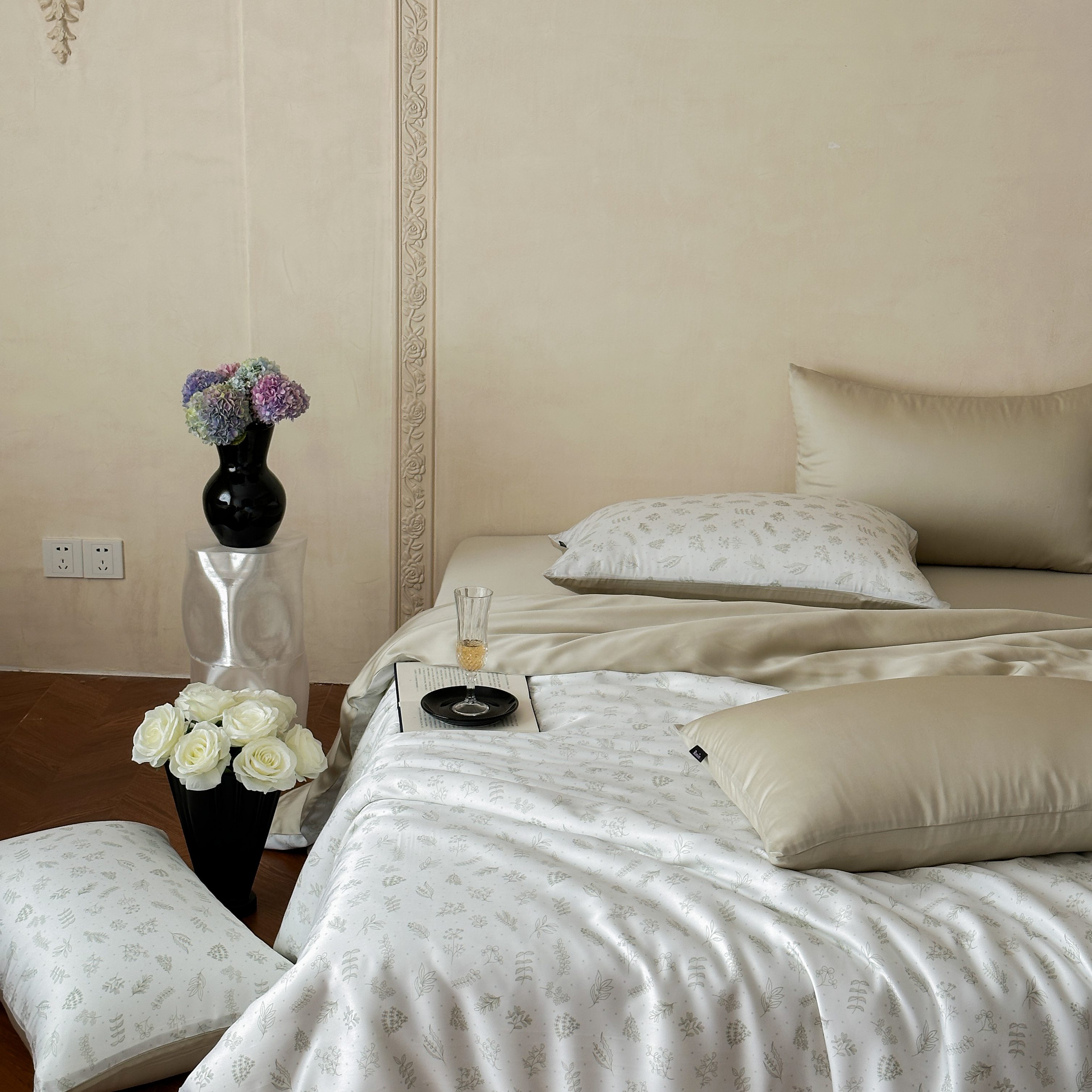 (总)玉宇阁家居 2023新款春夏60支兰精天丝拼色四件套,都市灰香槟,海盐松露,芥末黄香槟,裸粉香槟,茉莉奶绿,浅灰鹅黄,若草乳白