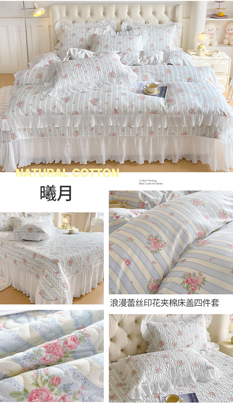 宜凡家纺2025新款雪纺花边印花夹棉床盖三件套四件套 曦月