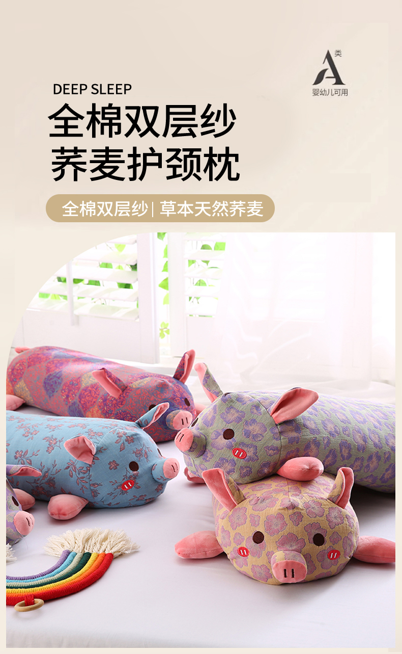 当前位置: 91家纺网 > 商品网购 > 枕头/枕芯/保健枕/颈椎枕 > 普通枕芯 > 2025开心猪全棉双层纱卡通儿童枕芯成人荞麦枕头 主图
