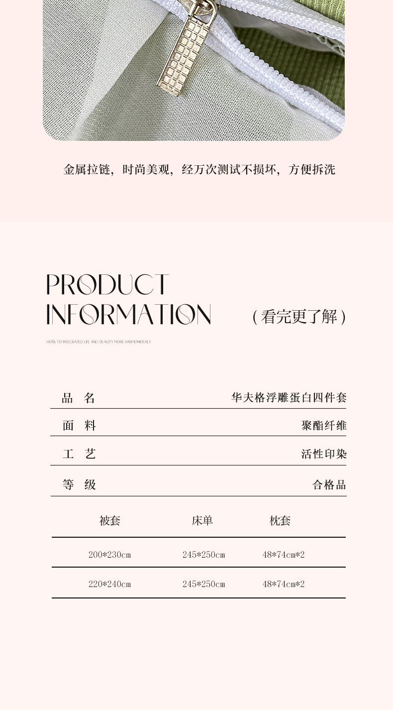 商品名称:红日子纺织品 2025新款韩版华夫格水洗棉四件套 果绿