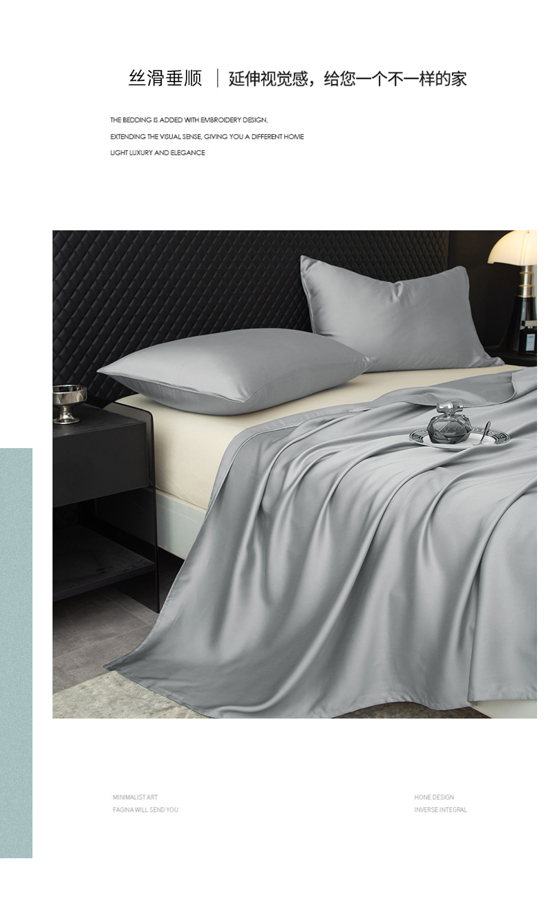 • 91家纺网 家纺一手货源 找家纺 简宜家居(朝初家纺) 2025新款A棉兰精天丝单床单 柔肌-高级灰