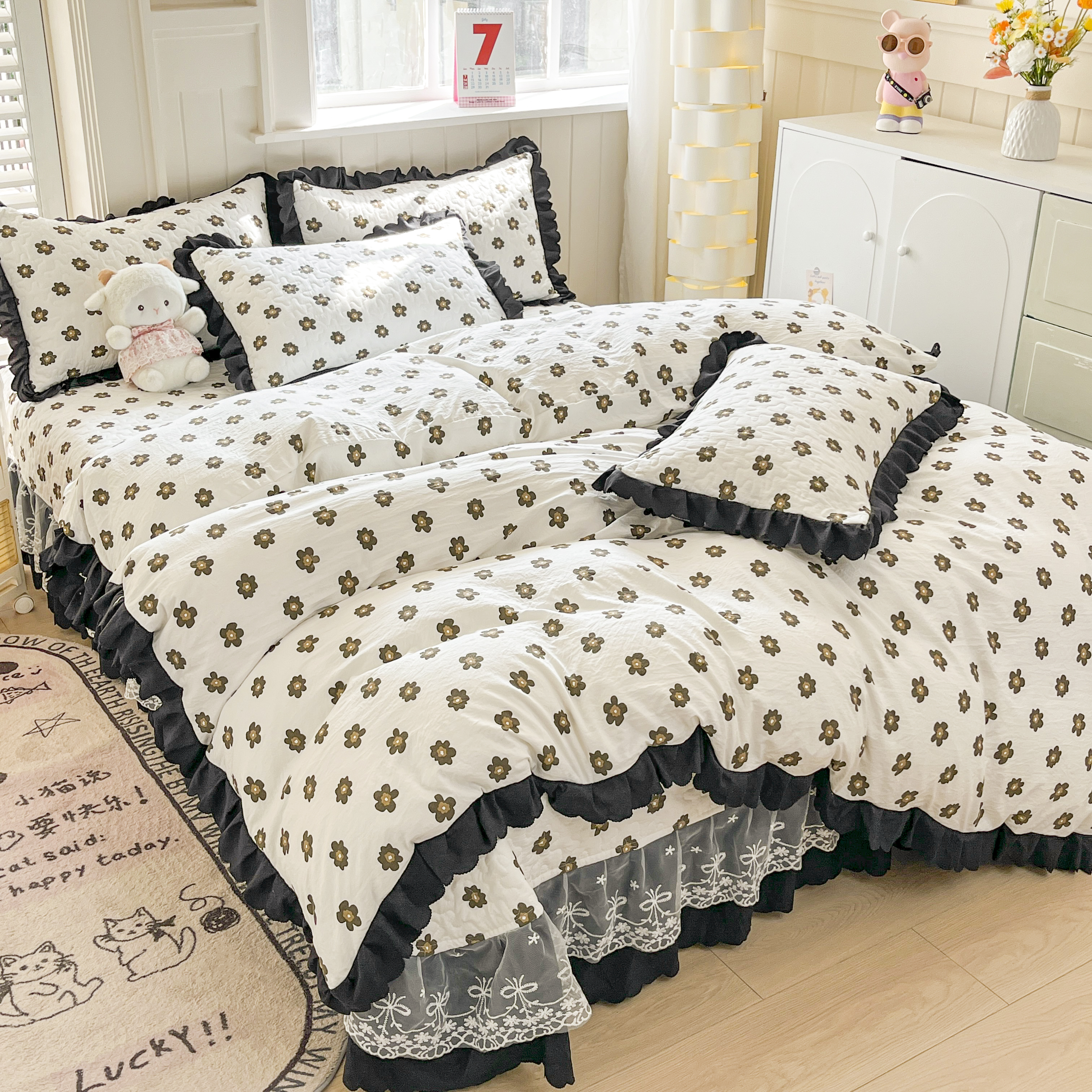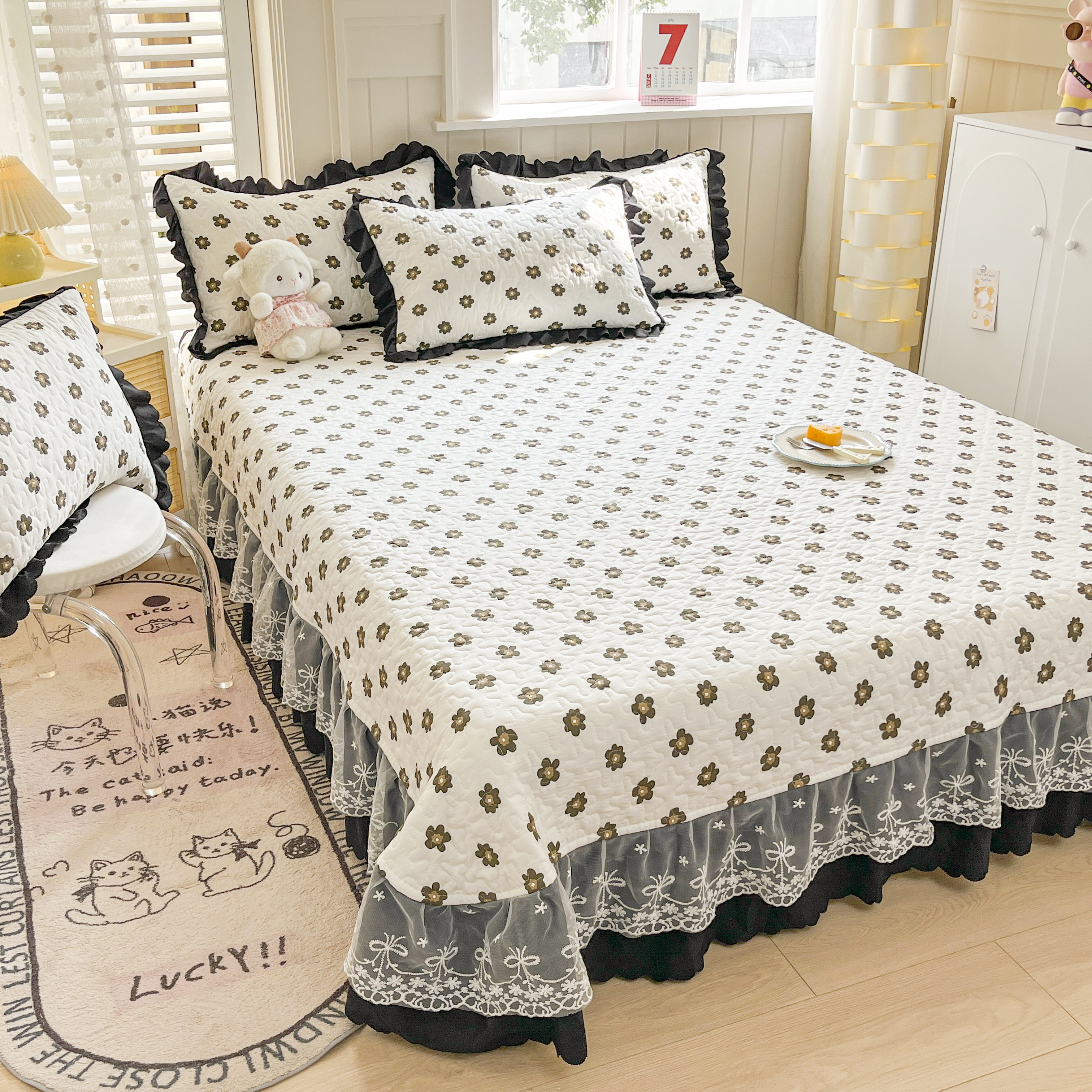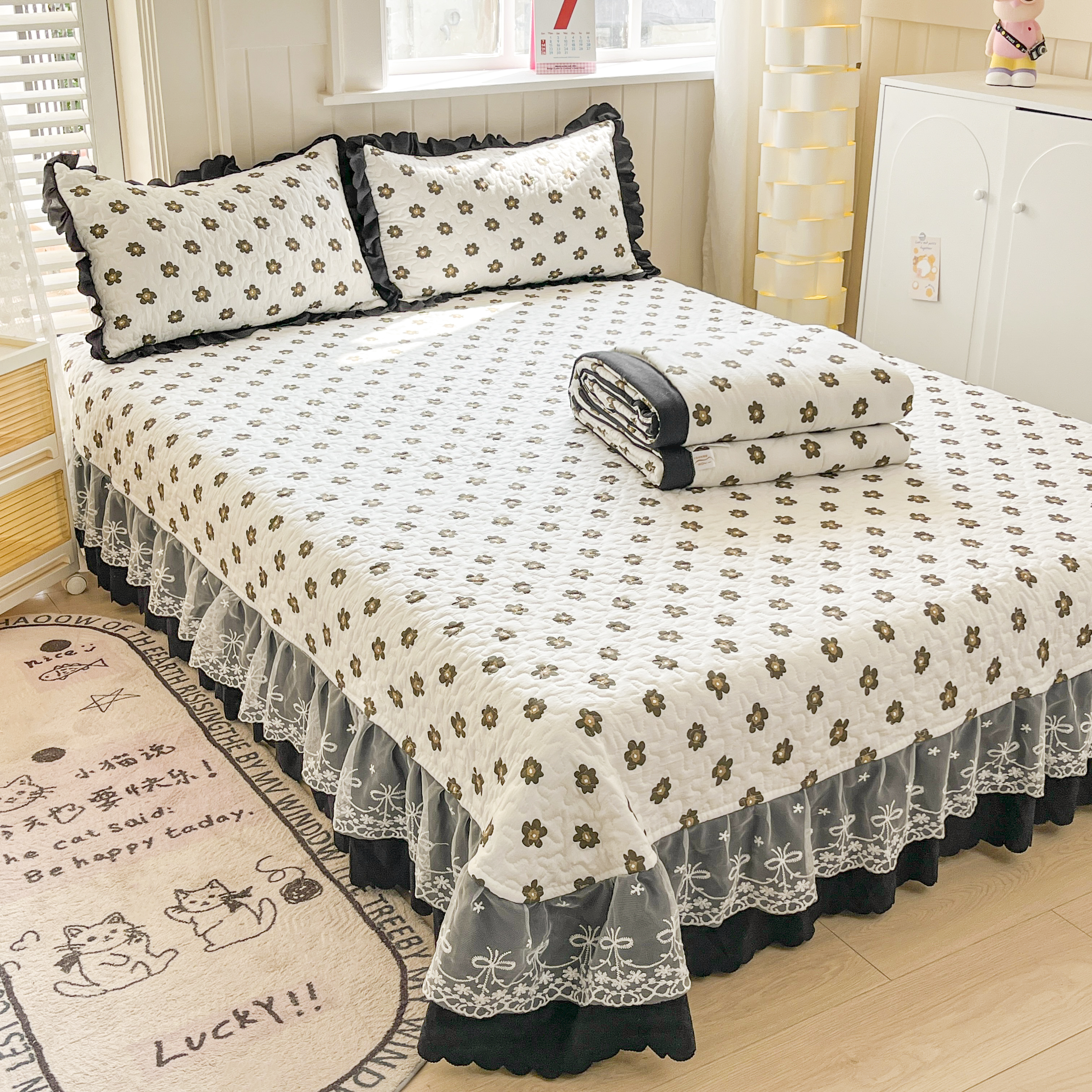 当前位置: 91家纺网 > 商品网购 > 床品套件 > 四件套 > 其它四件套 > 雅眠居 2025爆款针织棉双层纱印花床盖四件套 五叶花