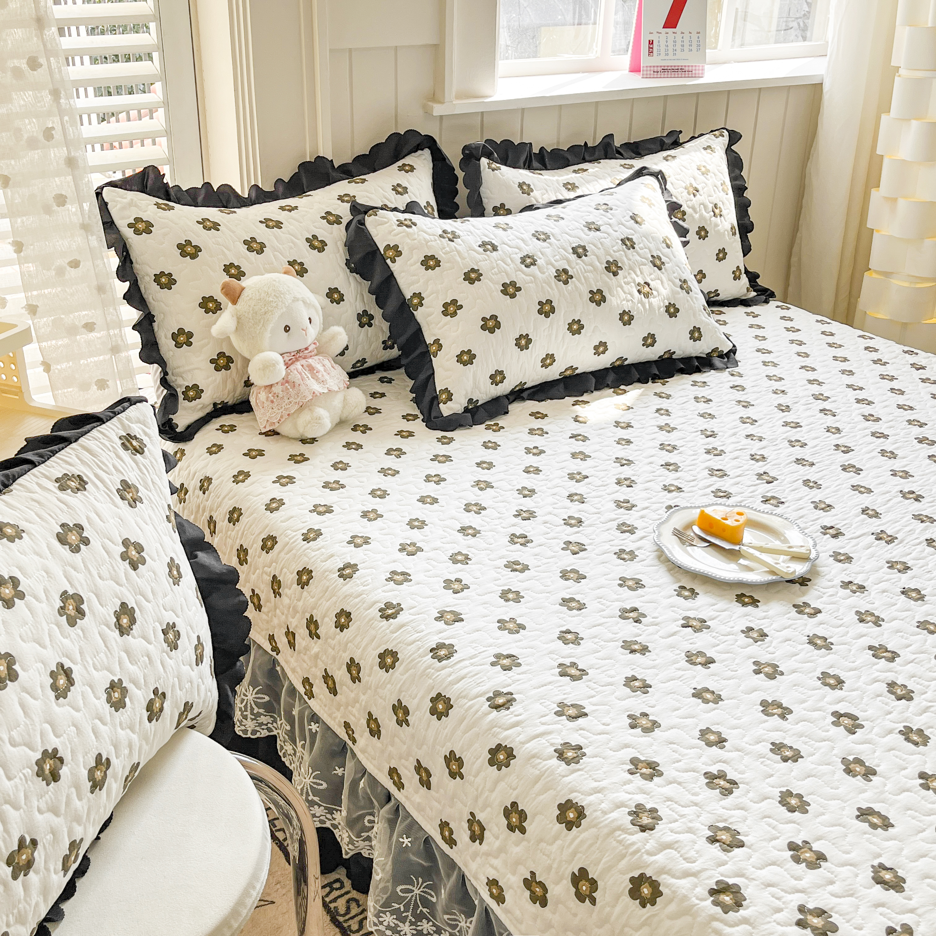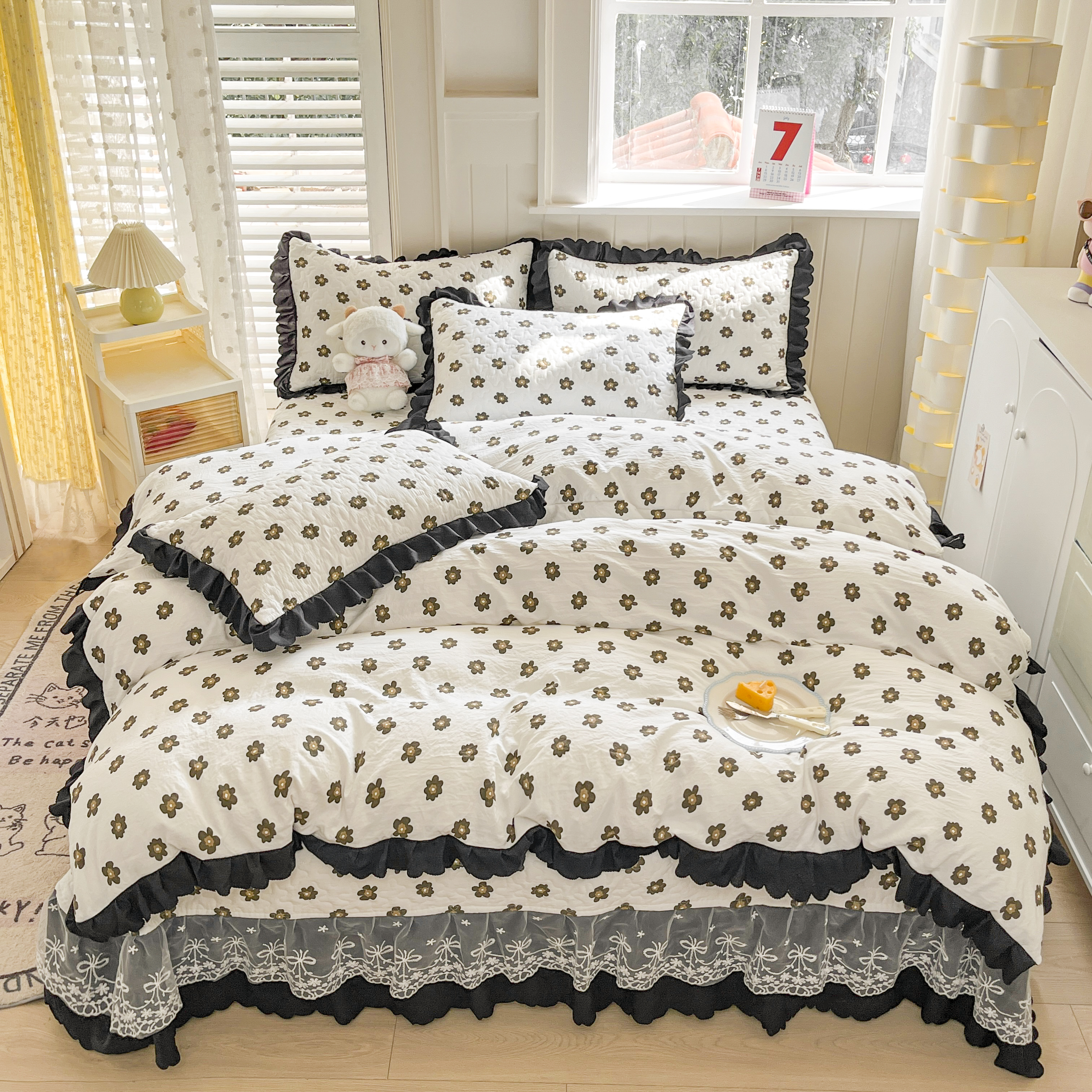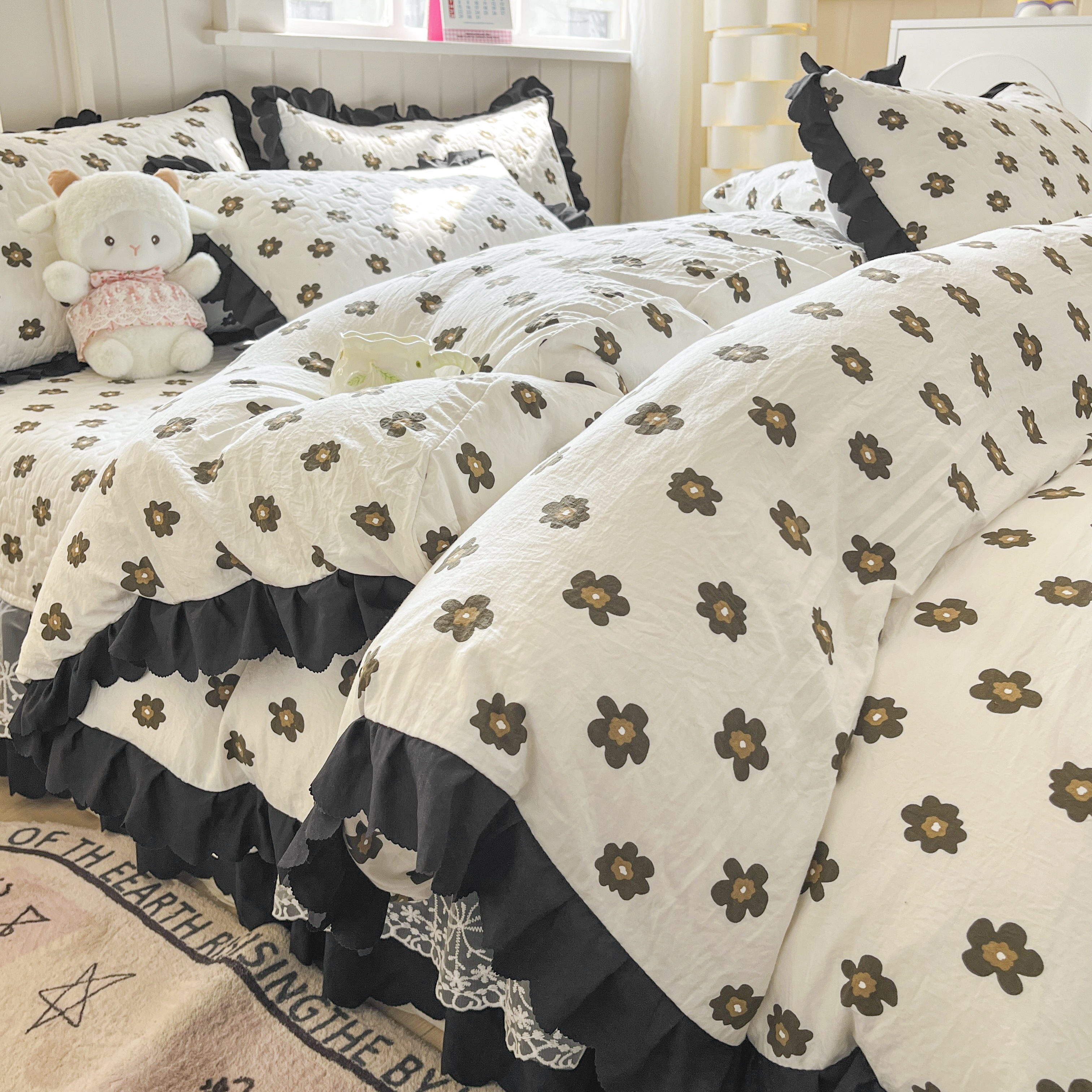 当前位置: 91家纺网 > 商品网购 > 床品套件 > 四件套 > 其它四件套 > 雅眠居 2025爆款针织棉双层纱印花床盖四件套 五叶花