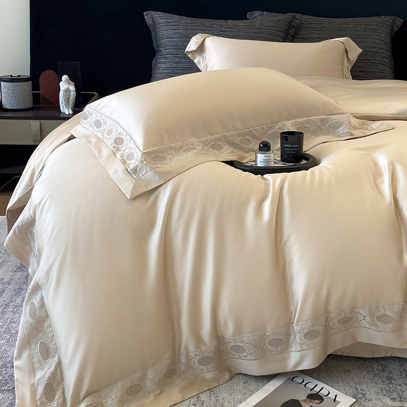 若未家居 LOVEWE HOUSE 2025新款天丝棉法式镂空赫本风精致女性款四件套--斯嘉丽 斯嘉丽-米驼