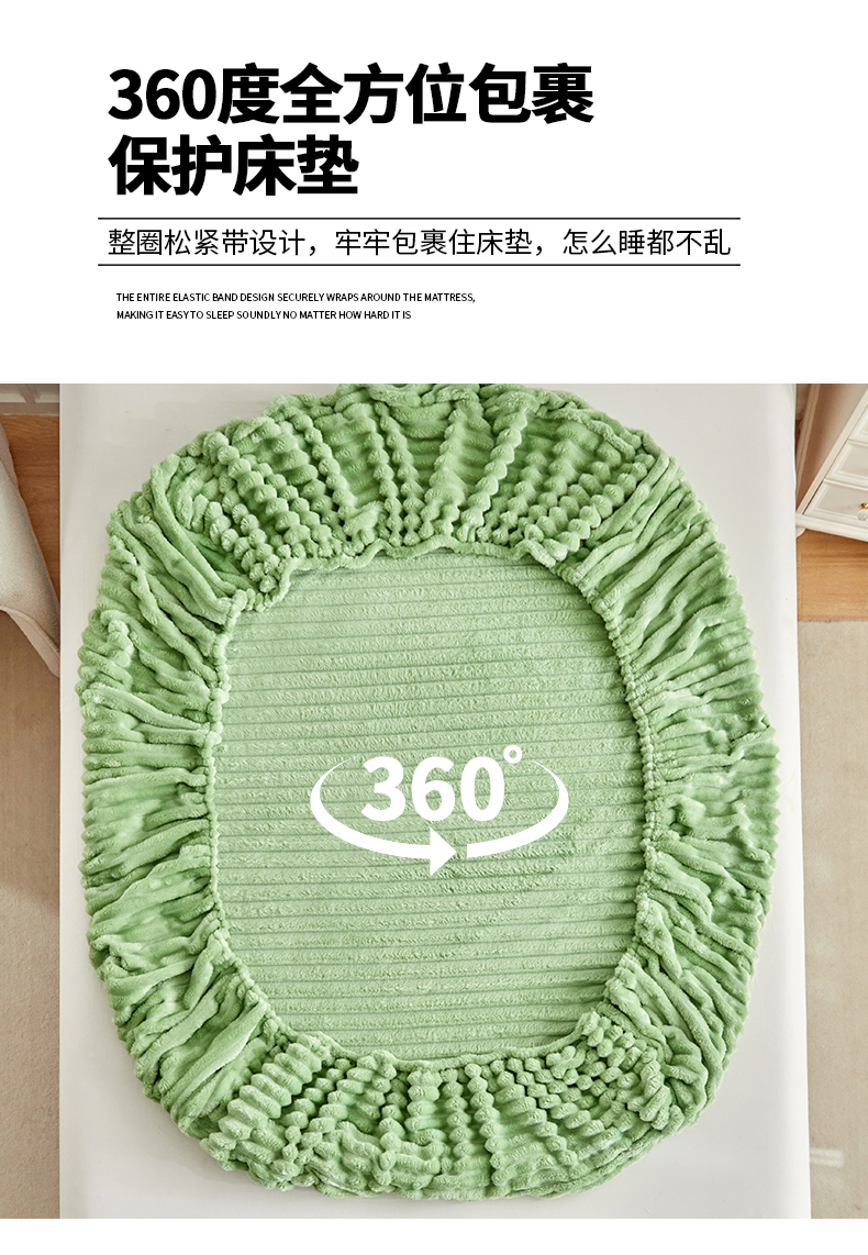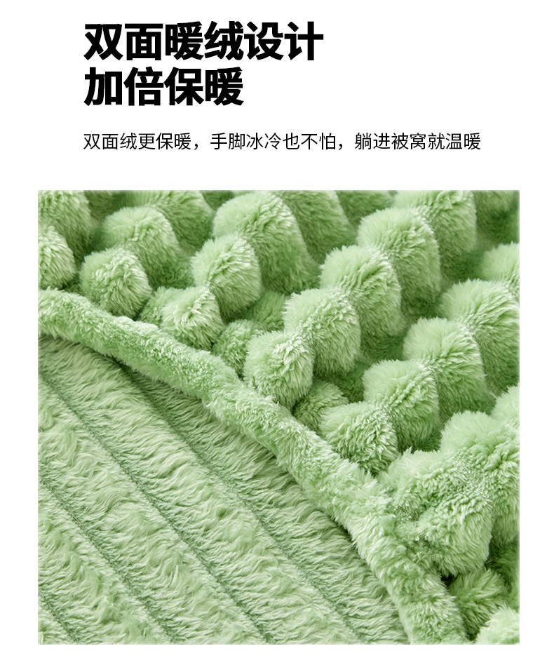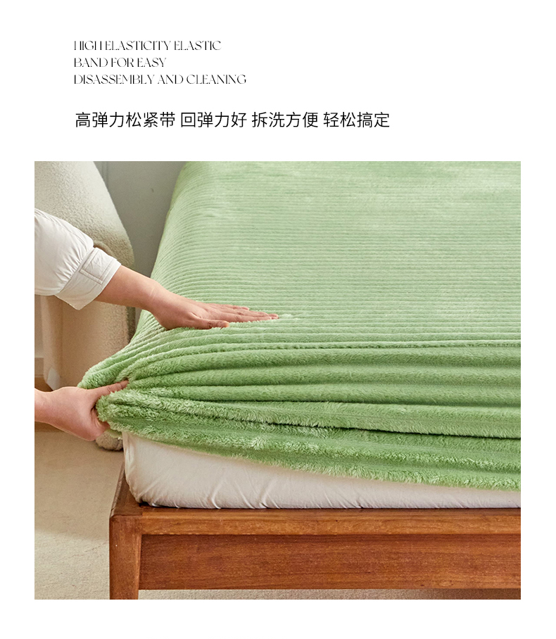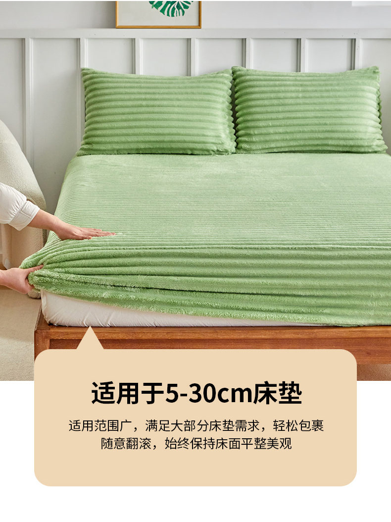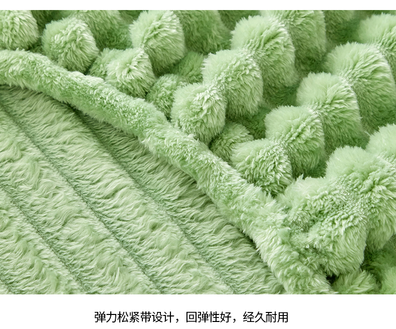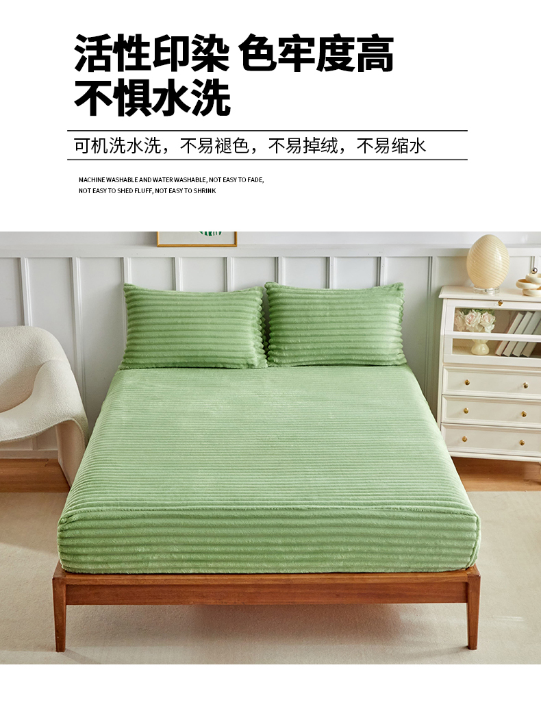 商品名称:枋梢家纺 2025新款爆款仿兔毛抽条床笠三件套跨境电商外贸欧美尺寸双面绒兔兔绒三件套 绿色