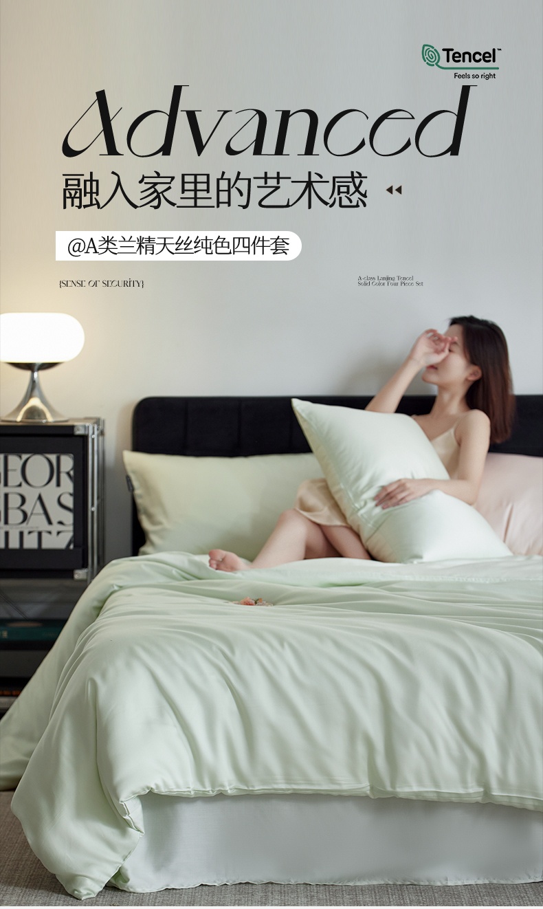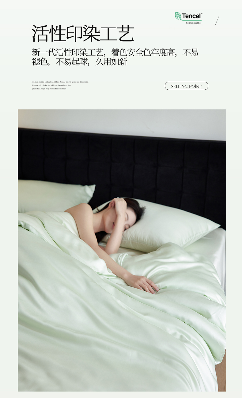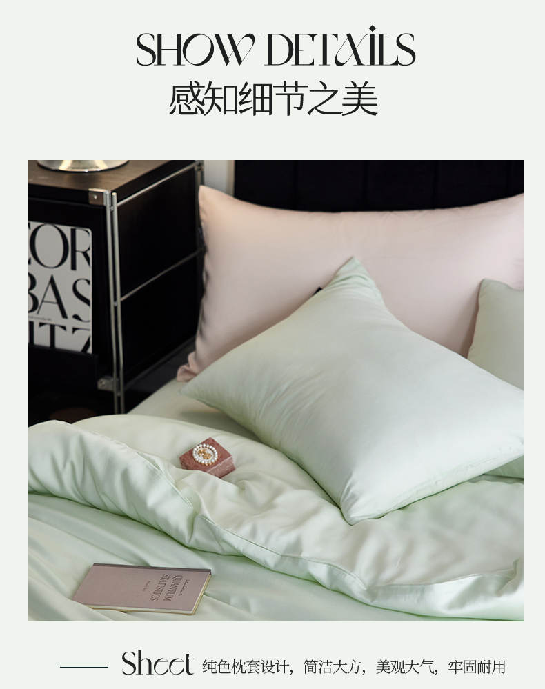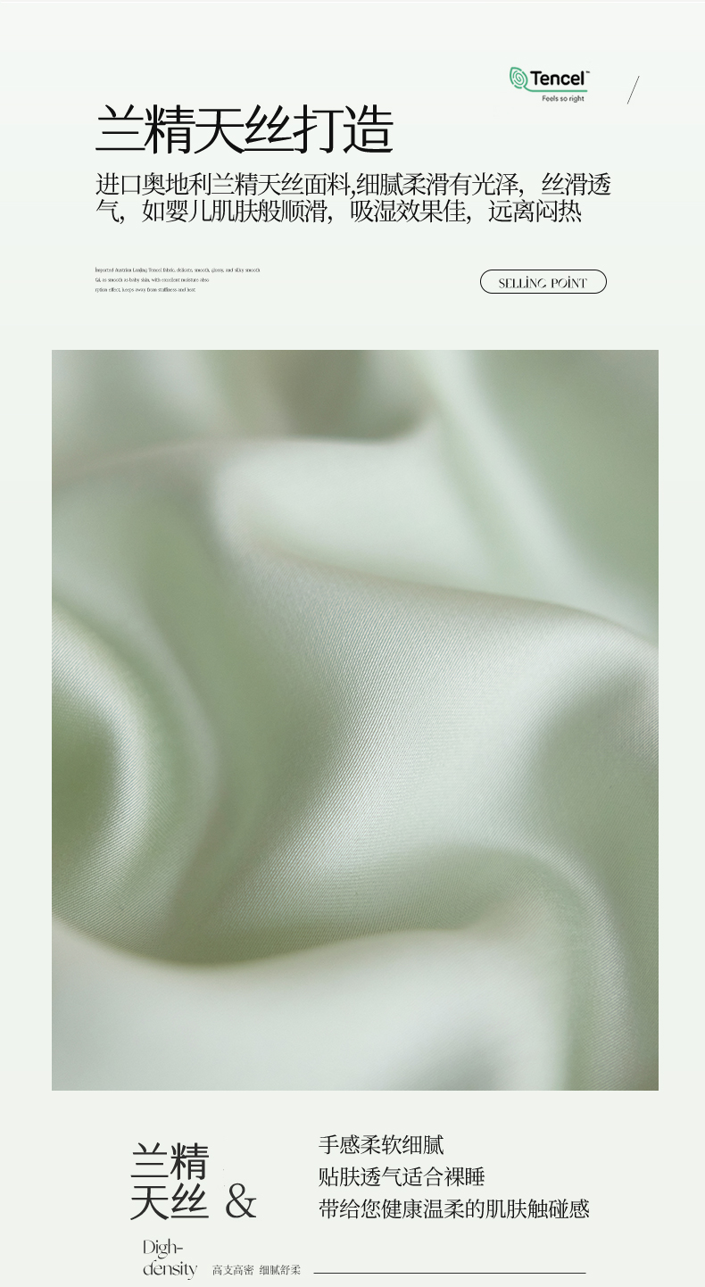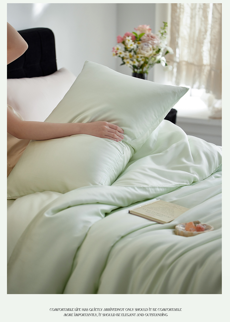 商品名称:凯磊家纺 2025新款.兰精天丝纯色四件套 浅绿梦乡