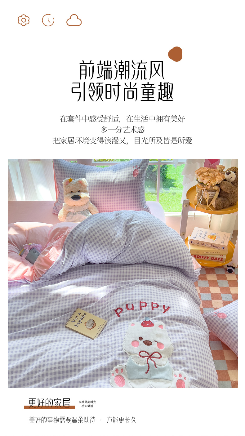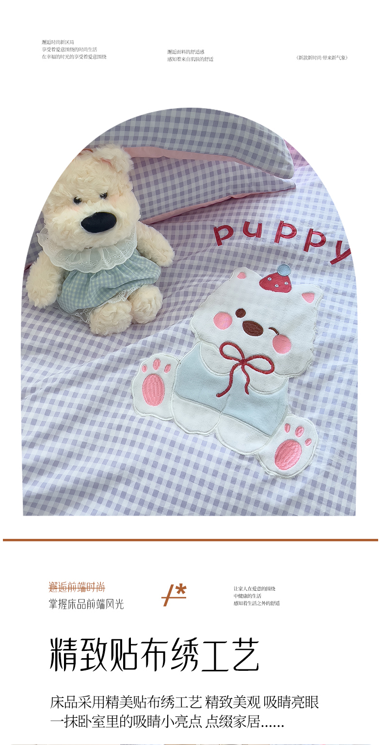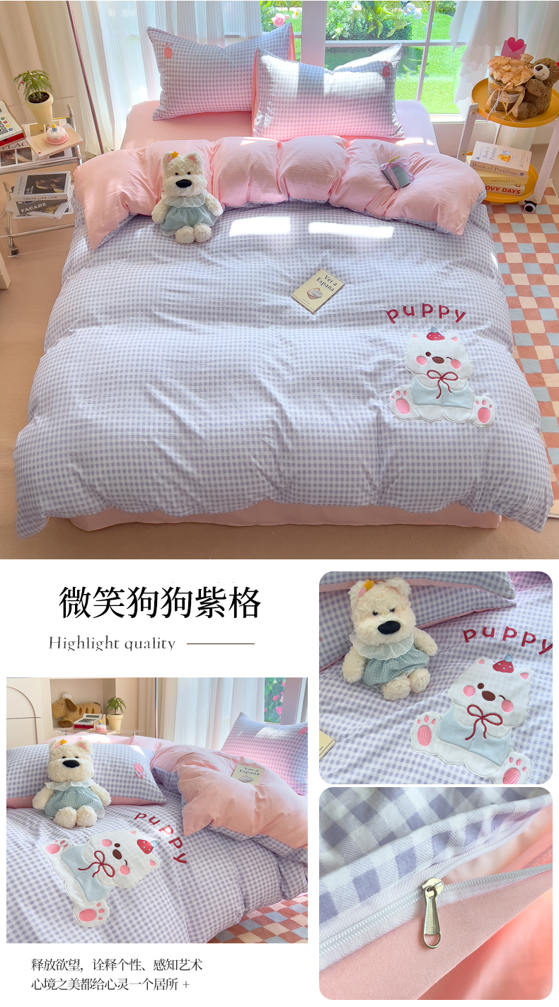 当前位置: 91家纺网 > 商品网购 > 床品套件 > 四件套 > 水洗棉四件套 > N先生+V 13814689556 发大图/买家秀 2025新款超柔水洗棉贴布绣四件套-微笑狗狗系列 微笑狗狗-紫格