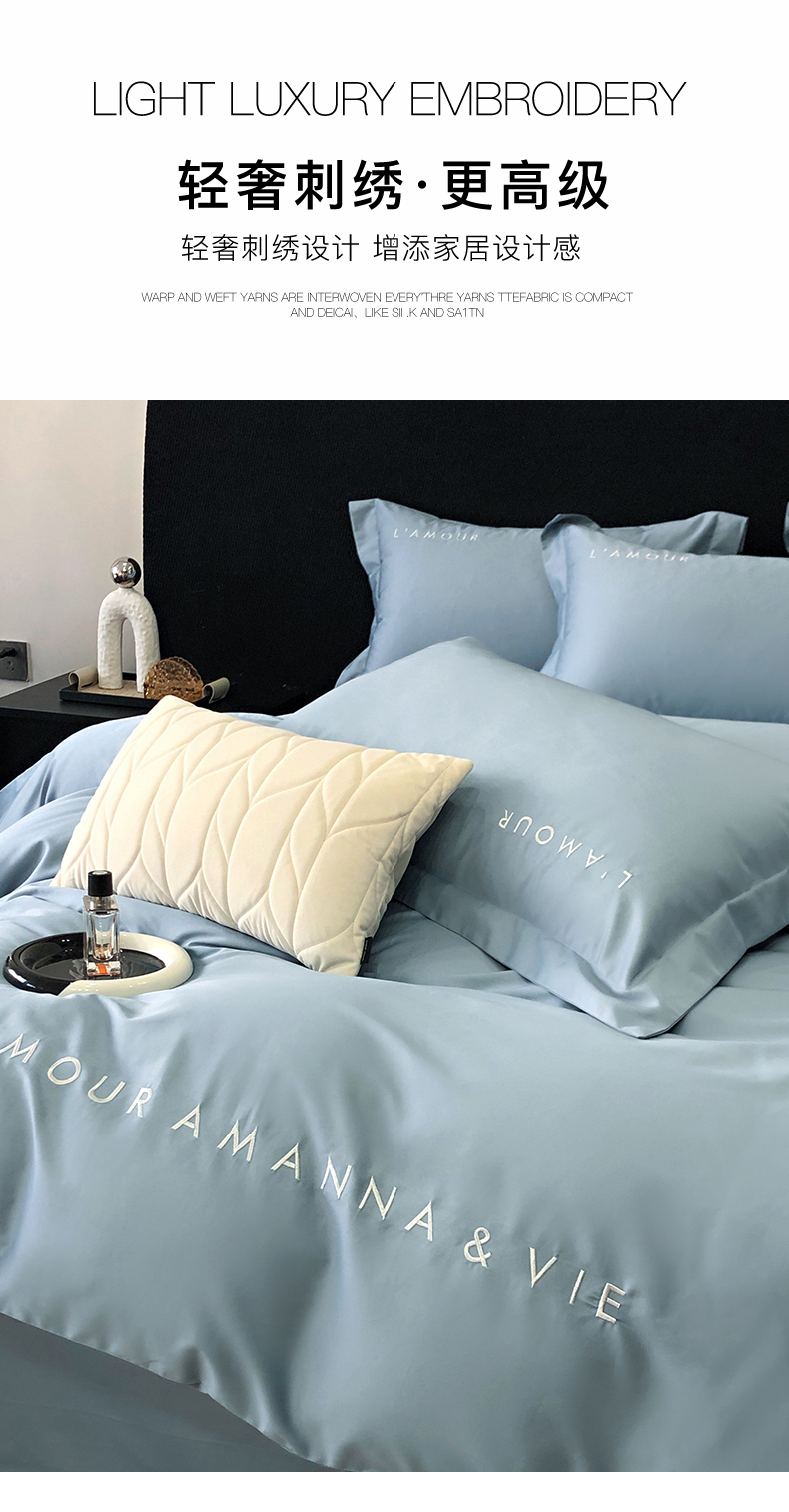 (总)禧澜庭 2024新款高支纯棉全棉斜纹四件套刺绣绣花款轻奢三件套,布鲁灰,戴妃粉,戴妃粉+魅紫,皓月白+卡其,皓月白+柔粉,魅力蓝,魅力蓝+浅灰,莺茶绿+卡其,月光灰,珠光紫
