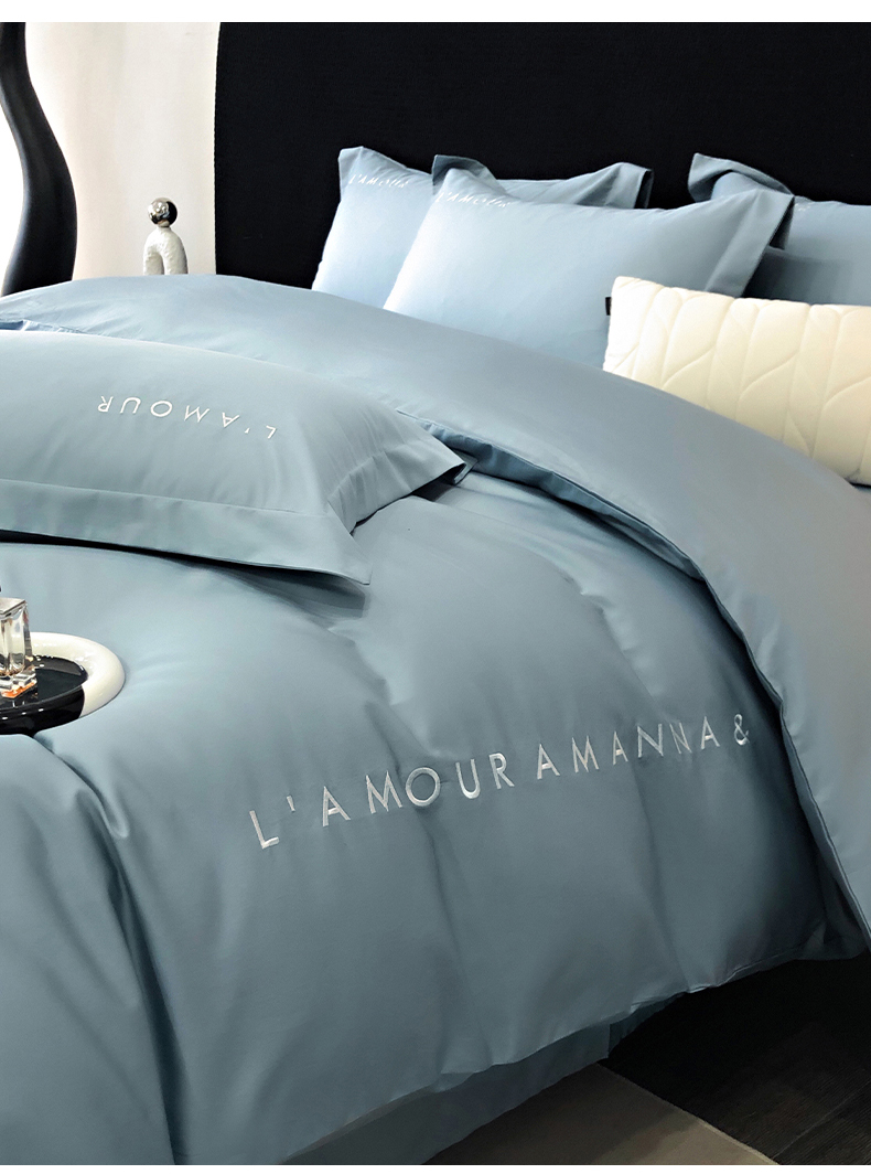 商品名称:禧澜庭 2025新款高支纯棉全棉斜纹四件套刺绣绣花款轻奢三件套--简爱系列 莫奈蓝+浅灰