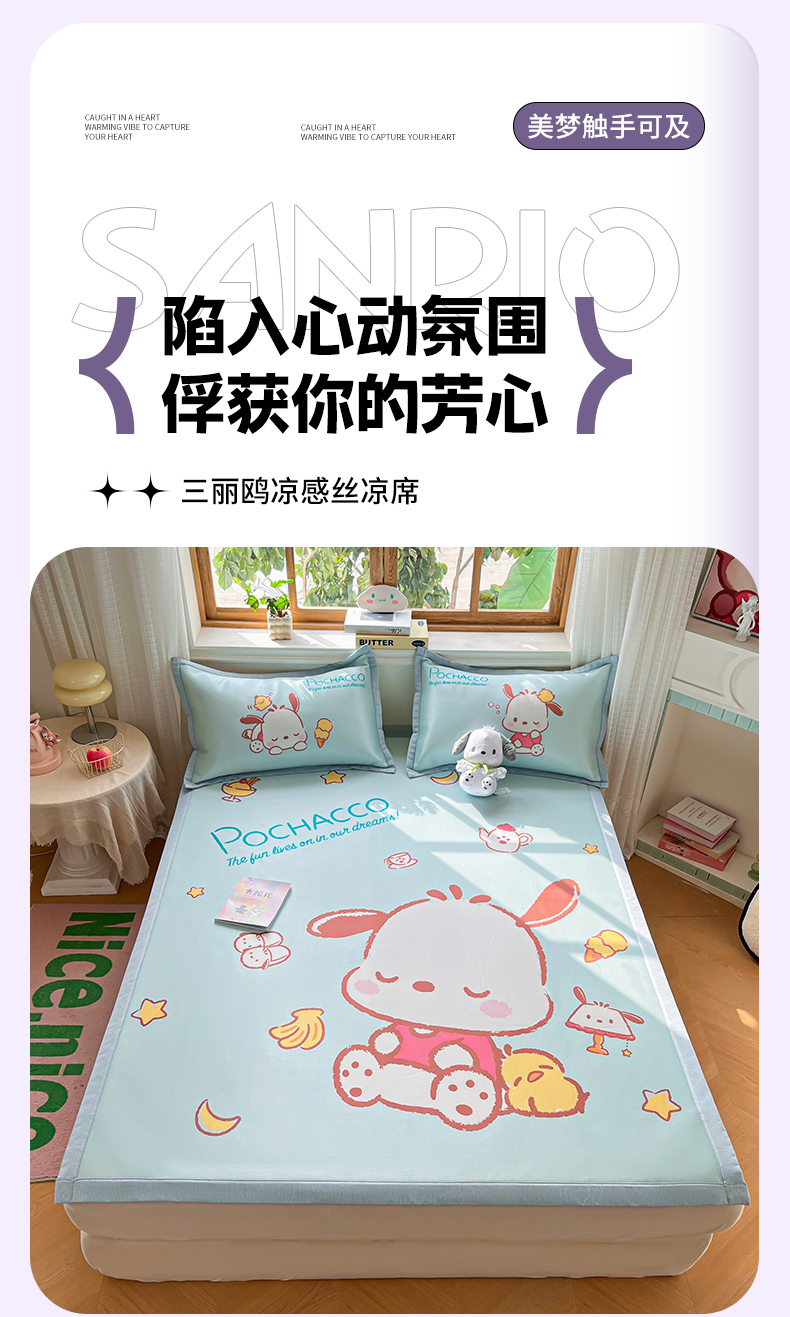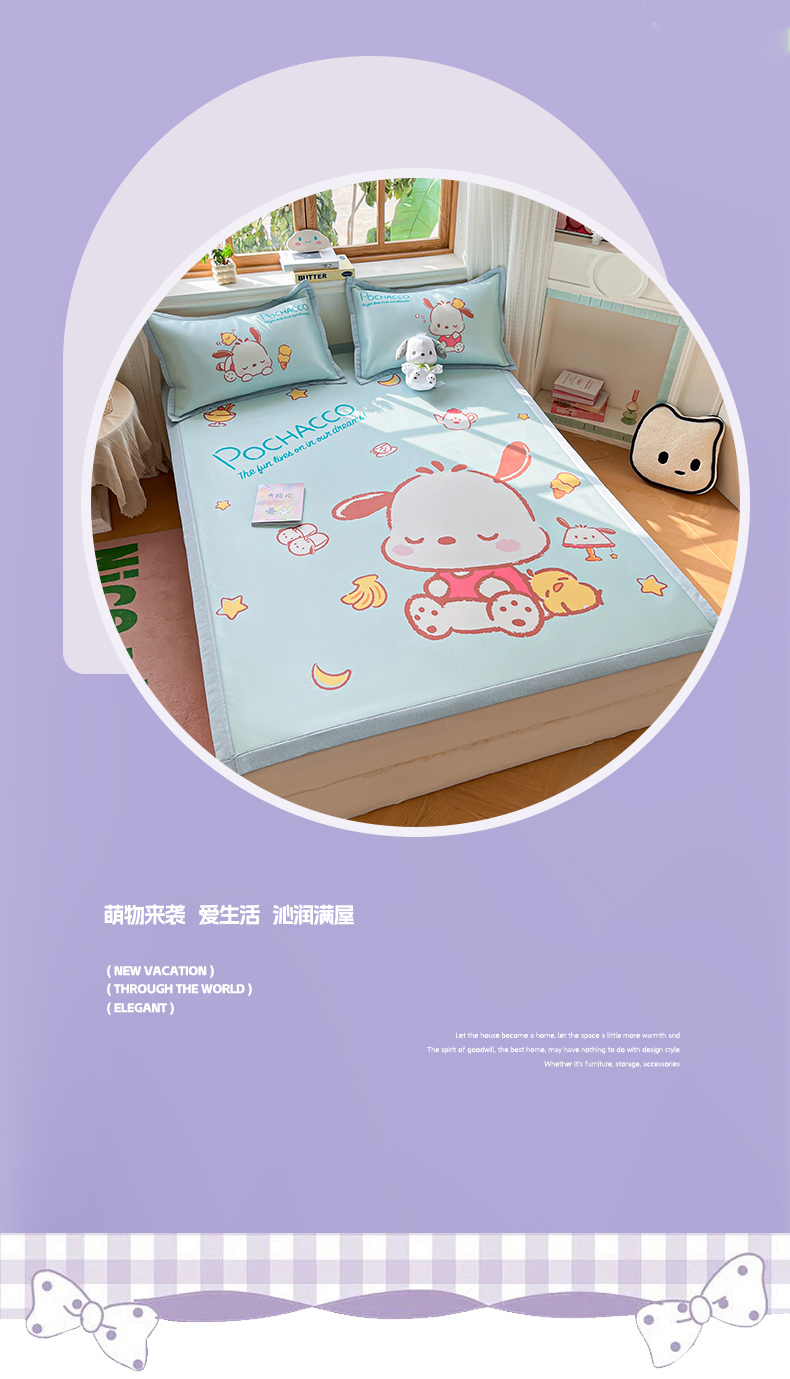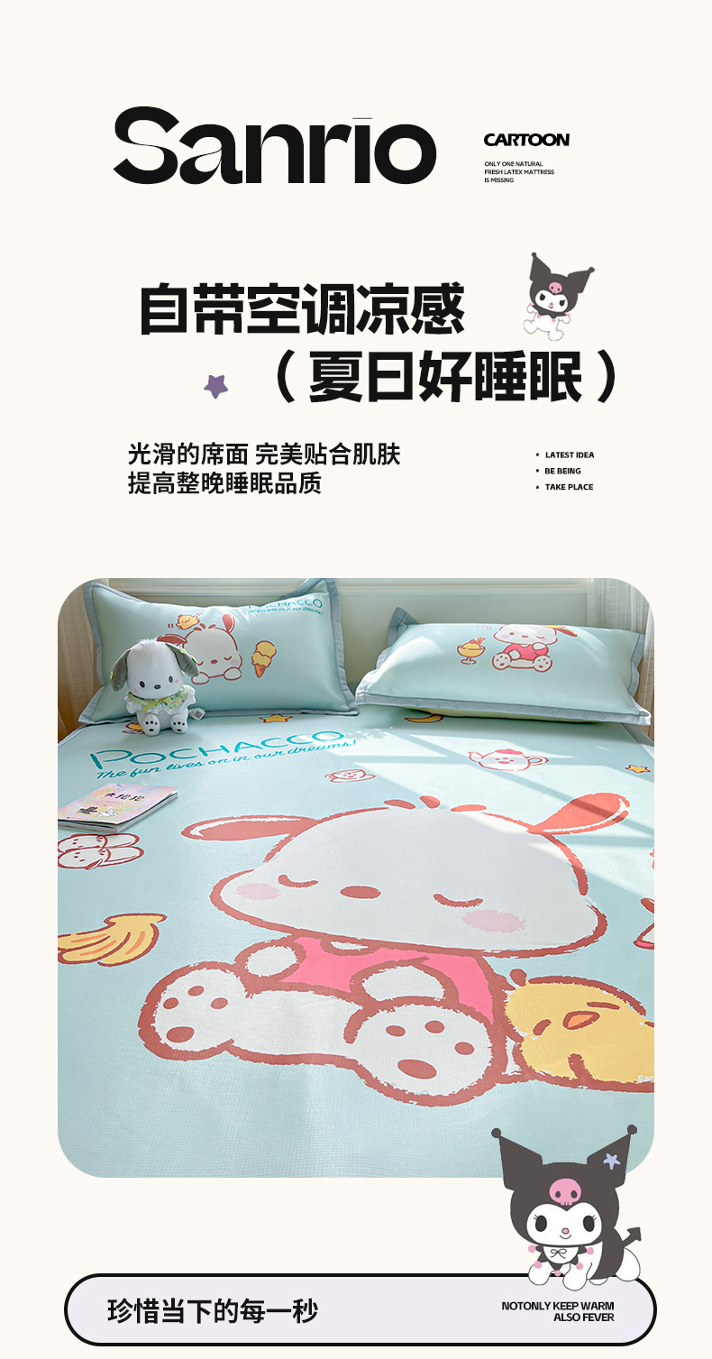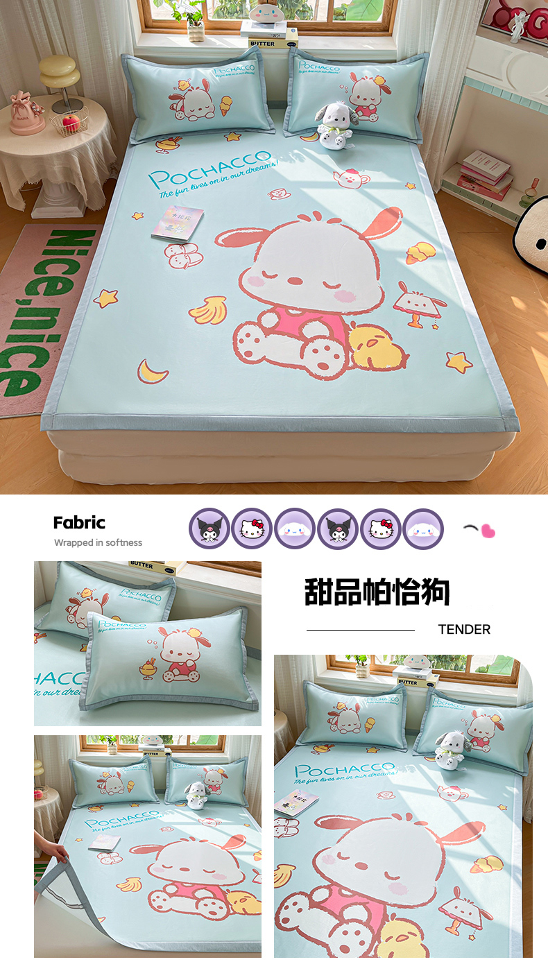 商品名称:博雅 2025新款三丽欧A类大版数码印花1200D冰丝凉席凉席席子 甜品帕恰狗
