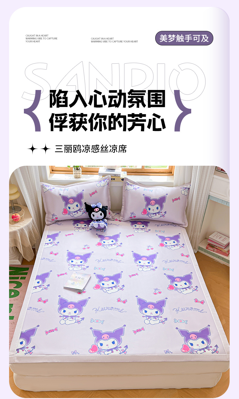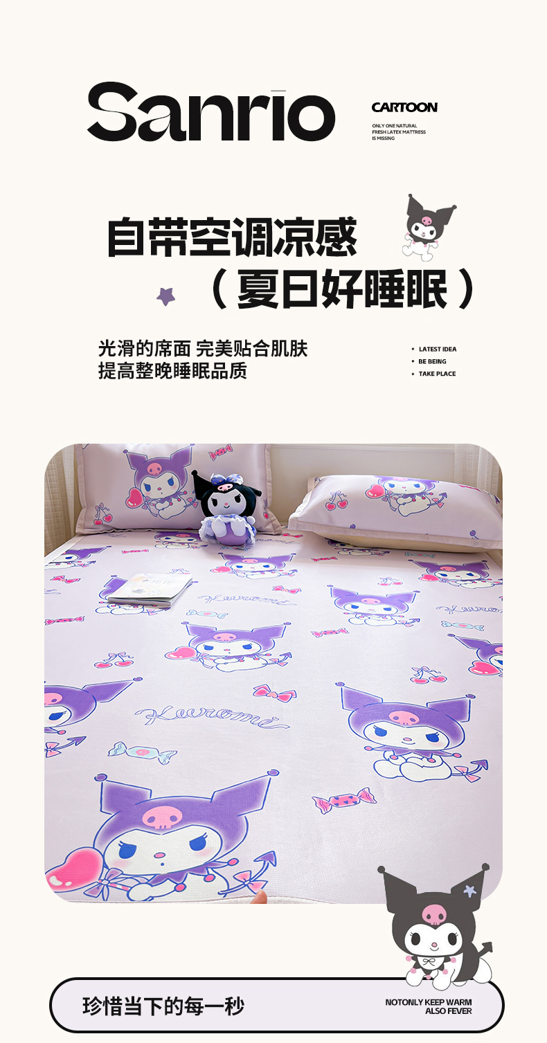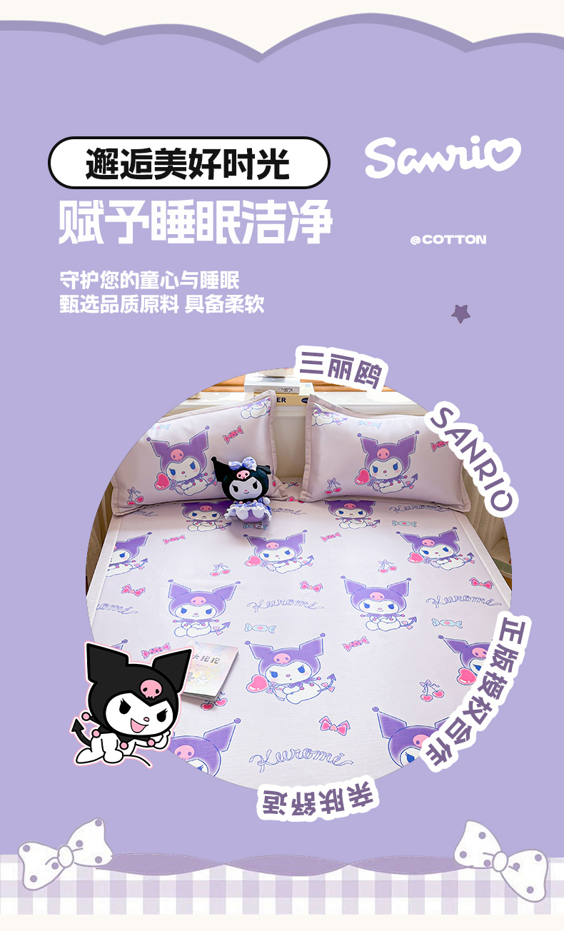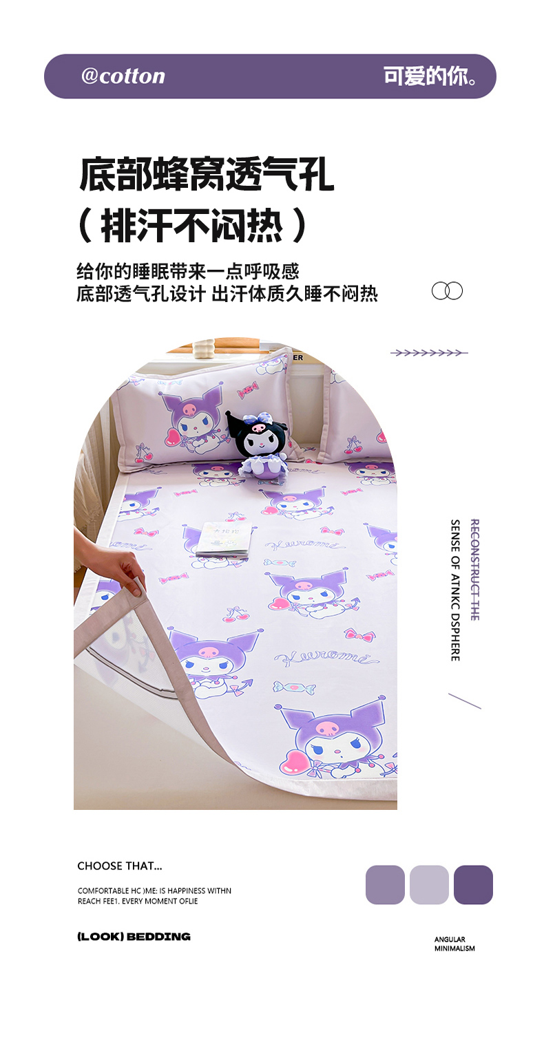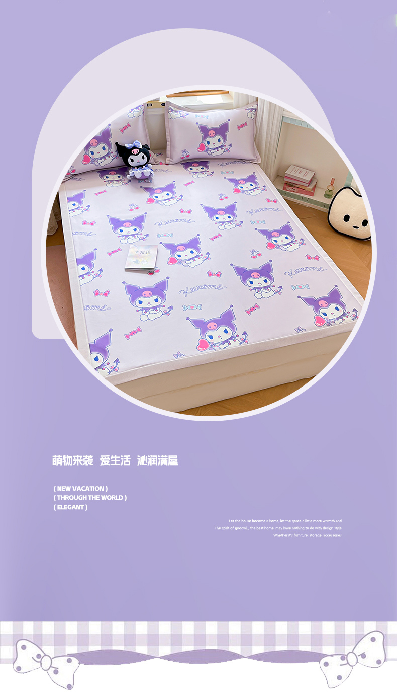 商品名称:博雅 2025新款三丽欧A类小版数码印花1200D冰丝凉席凉席席子 新紫色库洛米