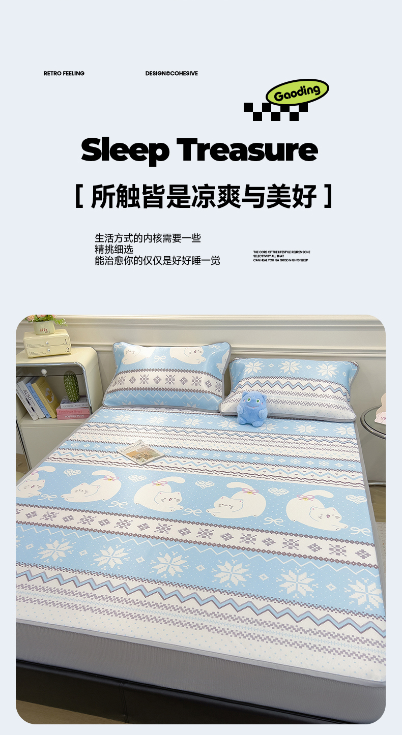当前位置: 91家纺网 > 商品网购 > 床上用品 > 凉席 > 凉席套件 > 摩妮卡 2025新款小清新碳光冰丝软席床笠款单床笠三件套 萌猫幻梦-蓝