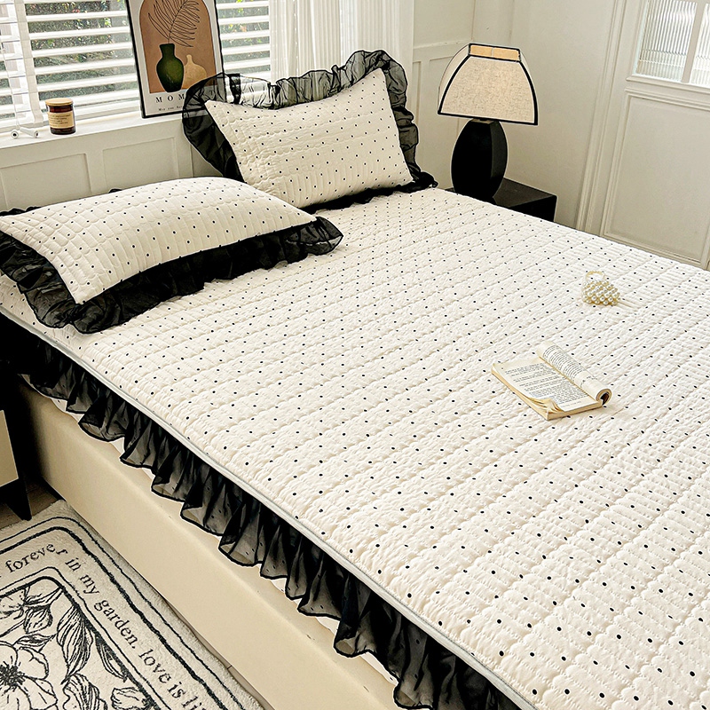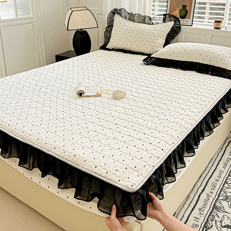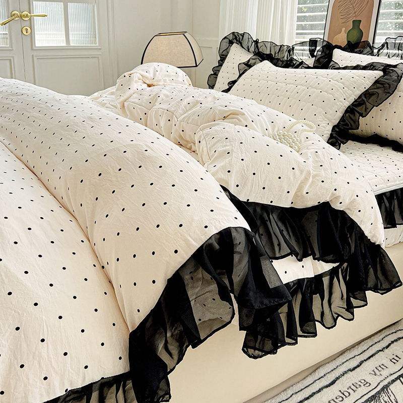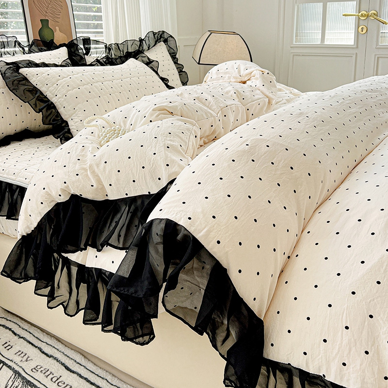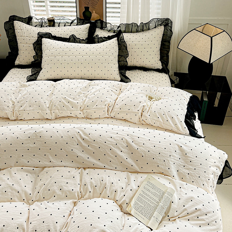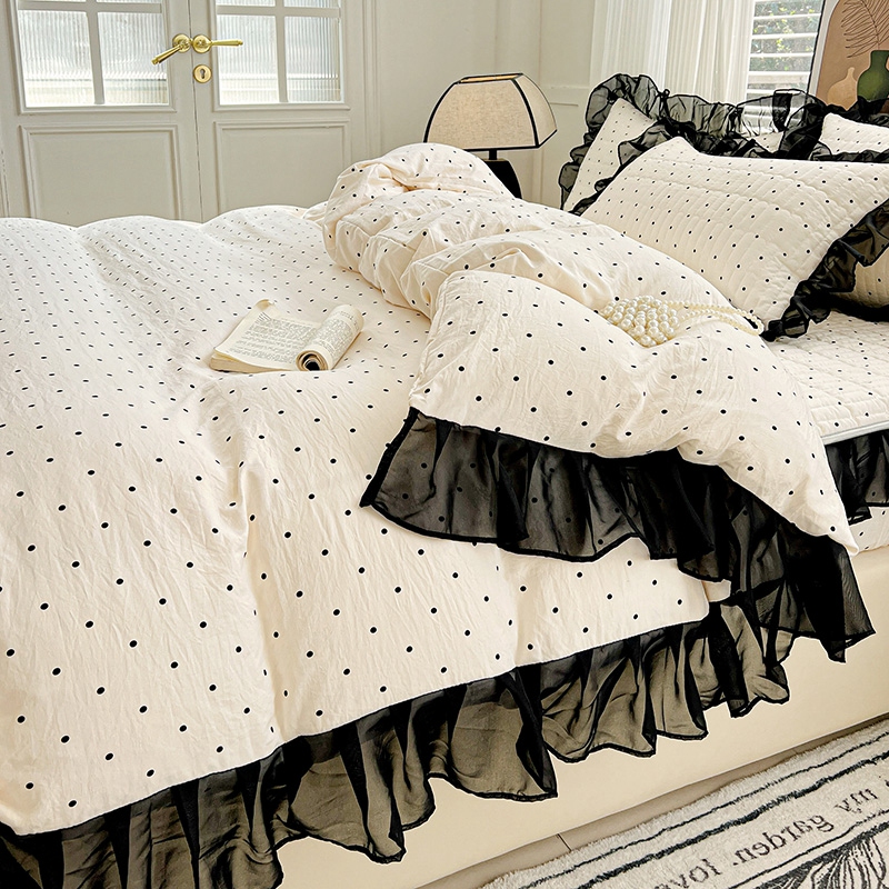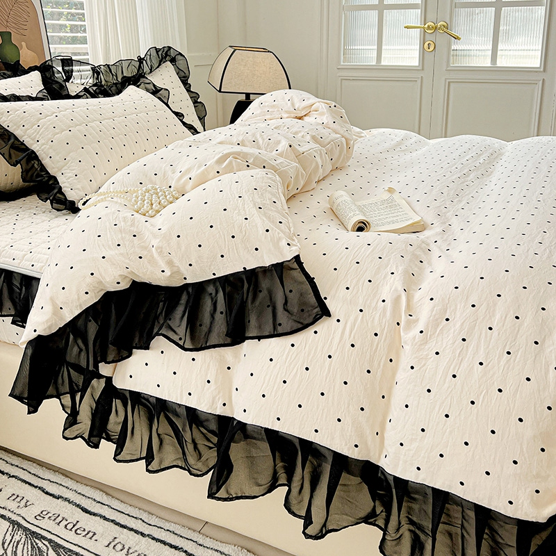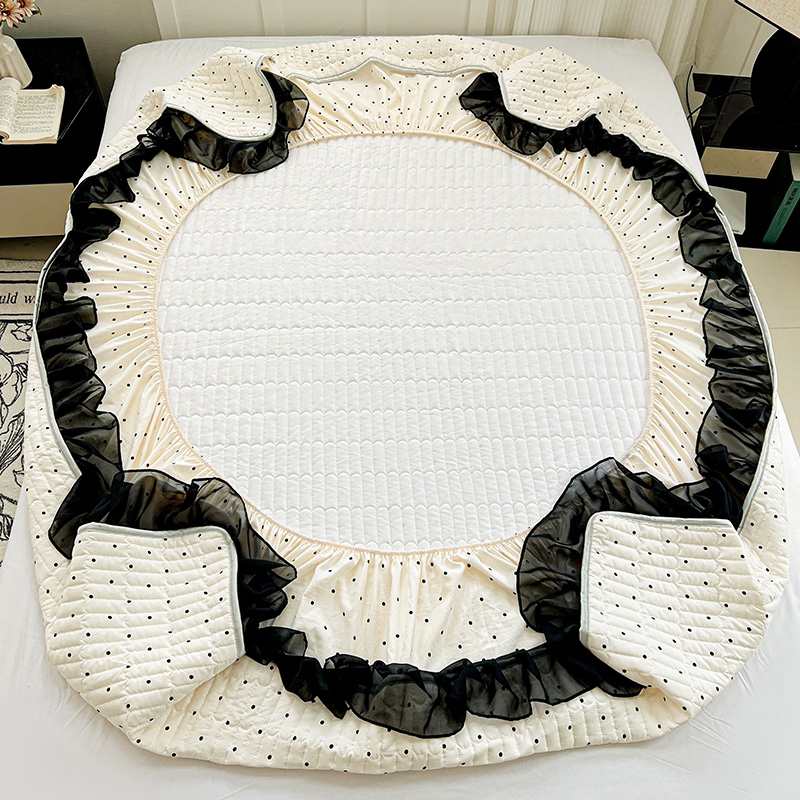 艾橙家纺2025新款法式赫本风水洗棉印花雪纺花边单床笠 点点爱