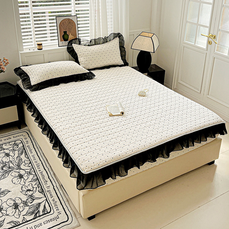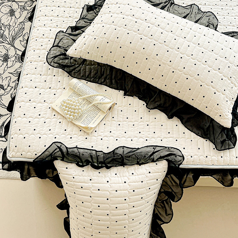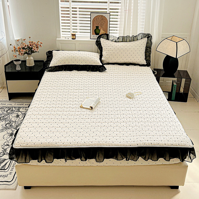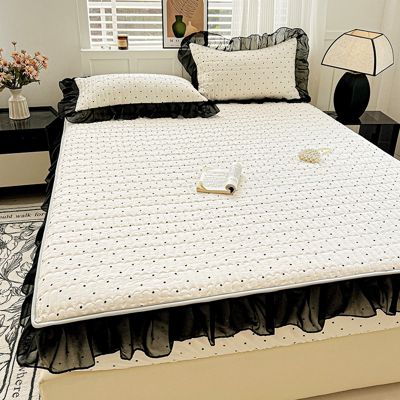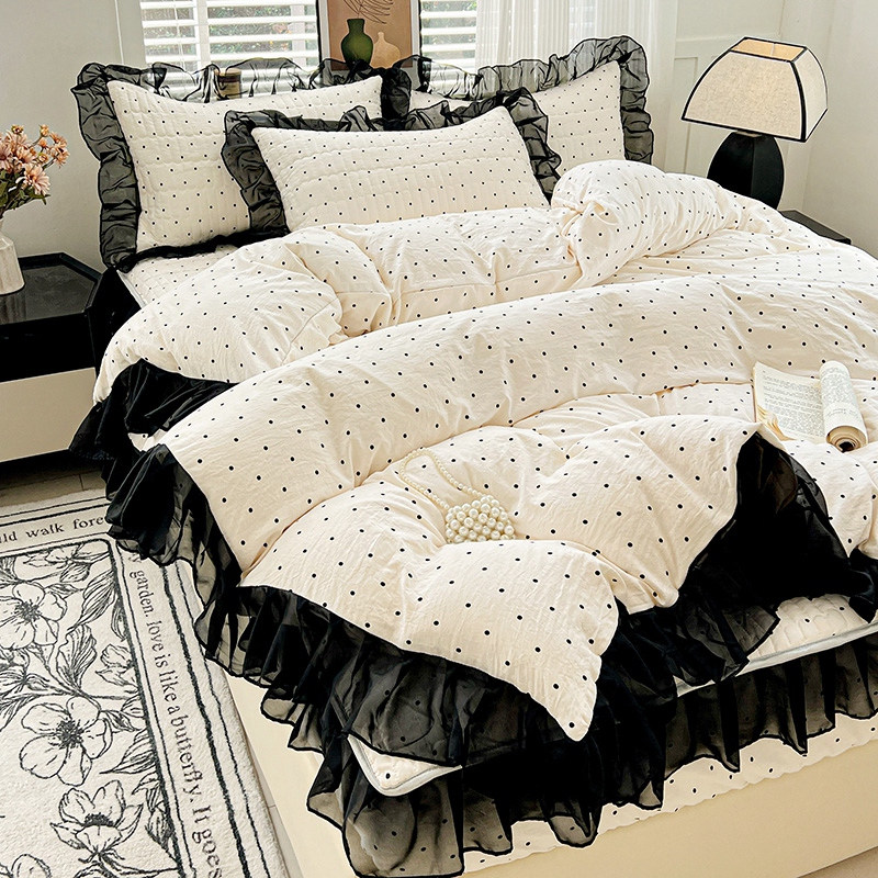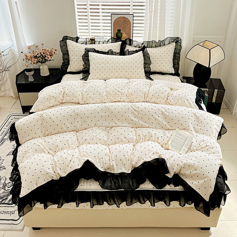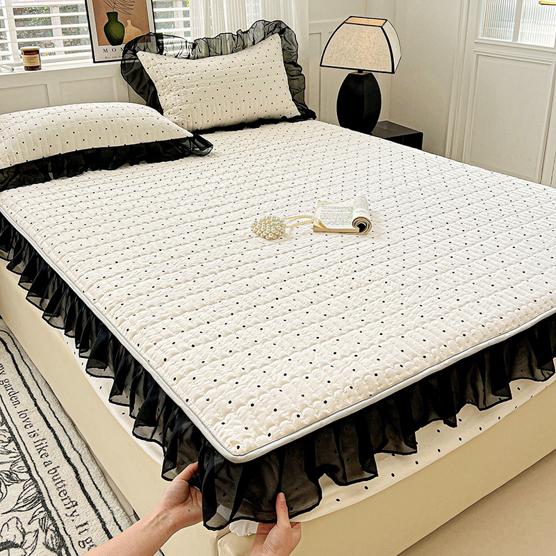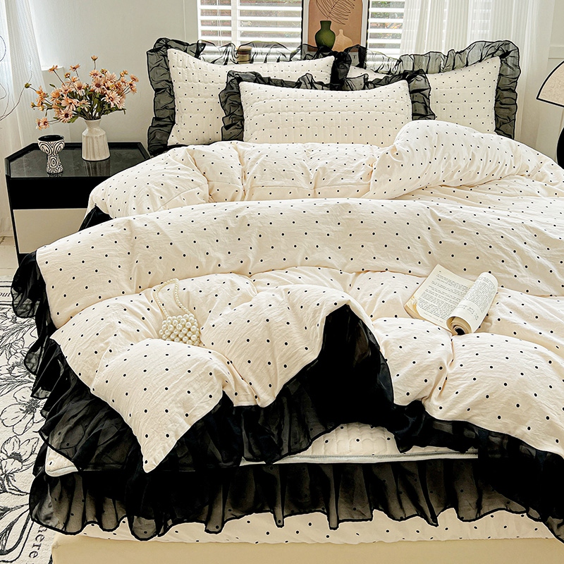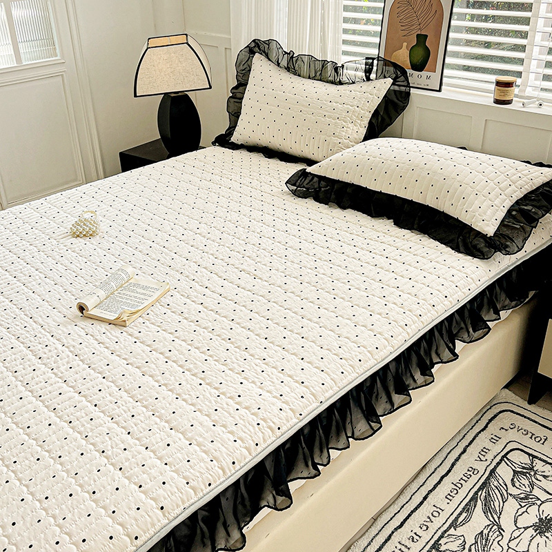 艾橙家纺2025新款法式赫本风水洗棉印花雪纺花边单床笠 点点爱