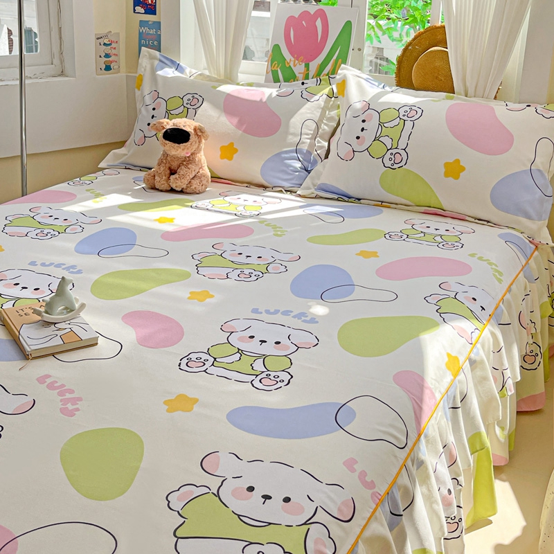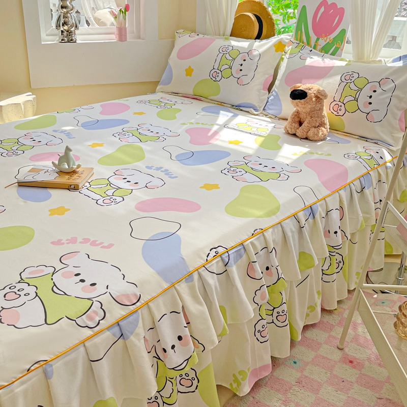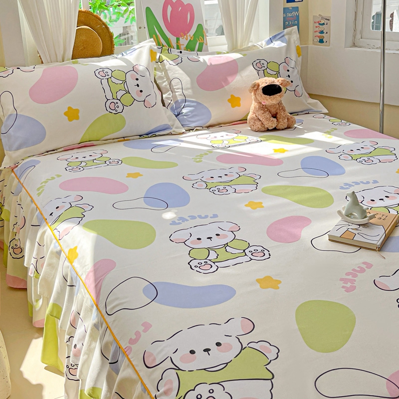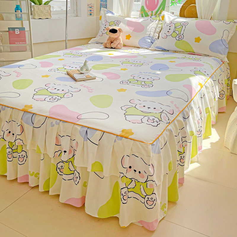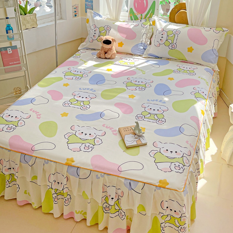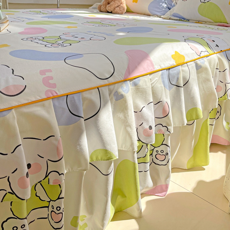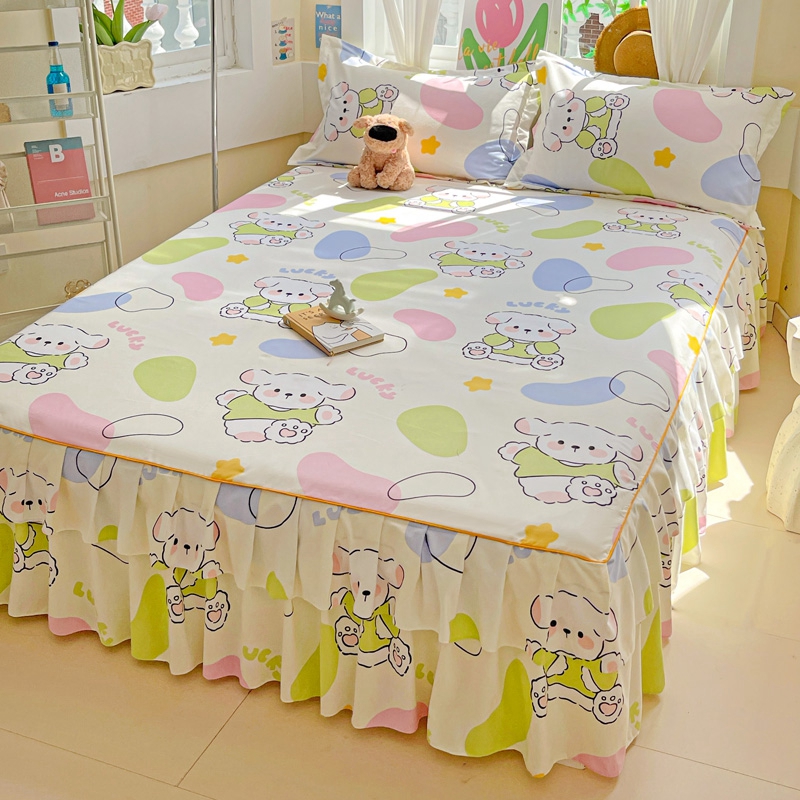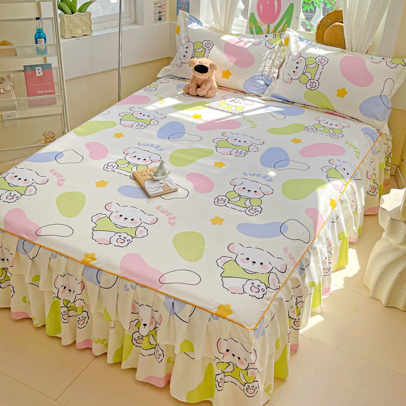 (总)艾橙家纺 2025新款雪纺花边加棉床笠款单品四件套-单床笠,妆立春风,半旧时光,彩色波点,丹妮狗,恐龙日记,茉莉兔,糖果草莓,微风许甜,心彩童话,樱之恋